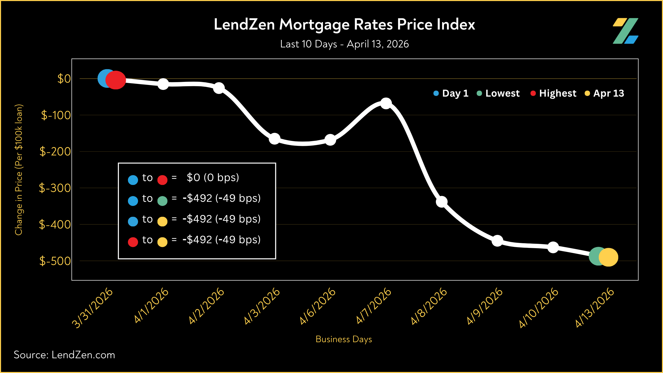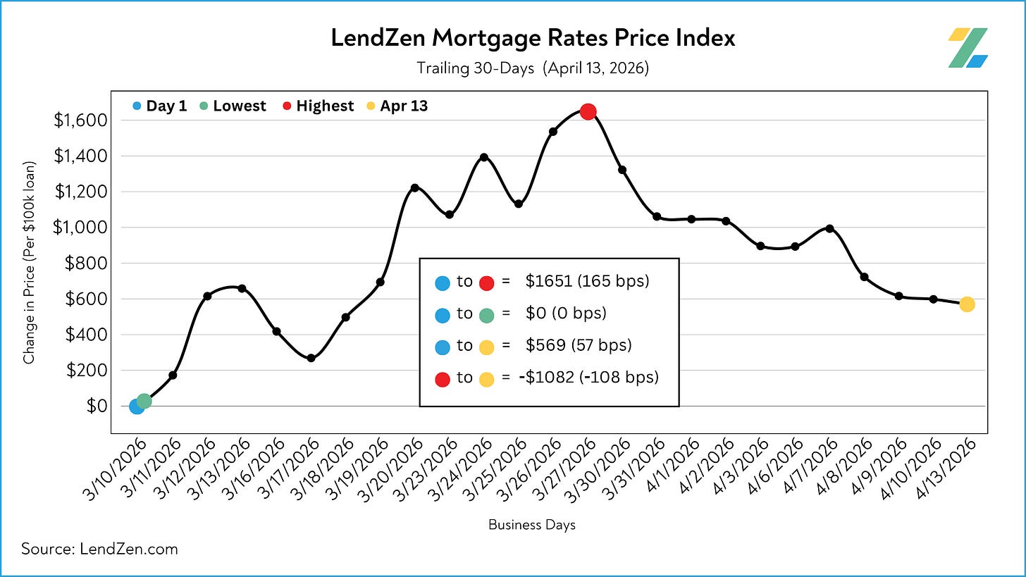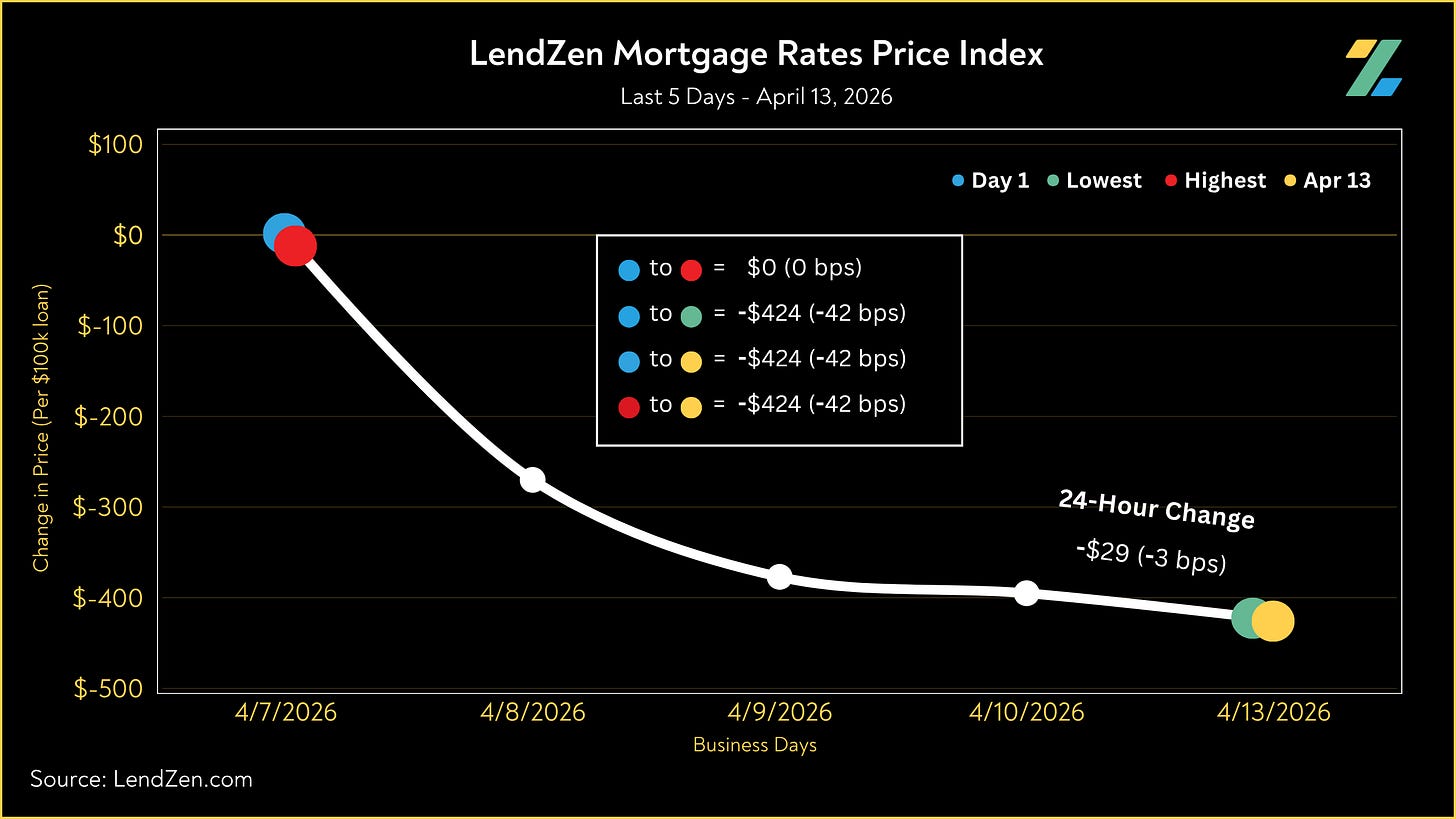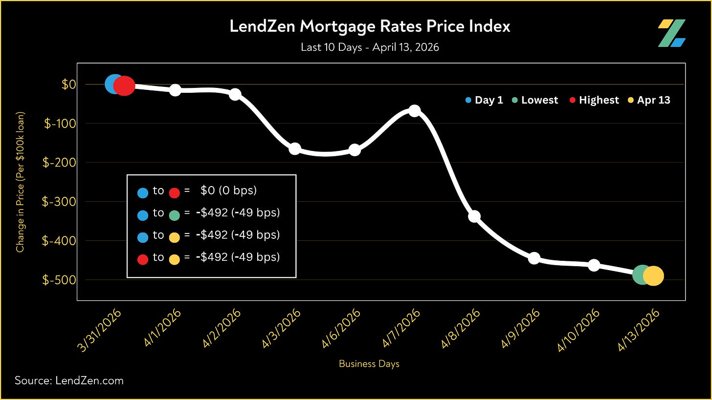 Since March 31, the price of mortgage rates decreased 49 basis points, as seen in the 10-Day chart below.