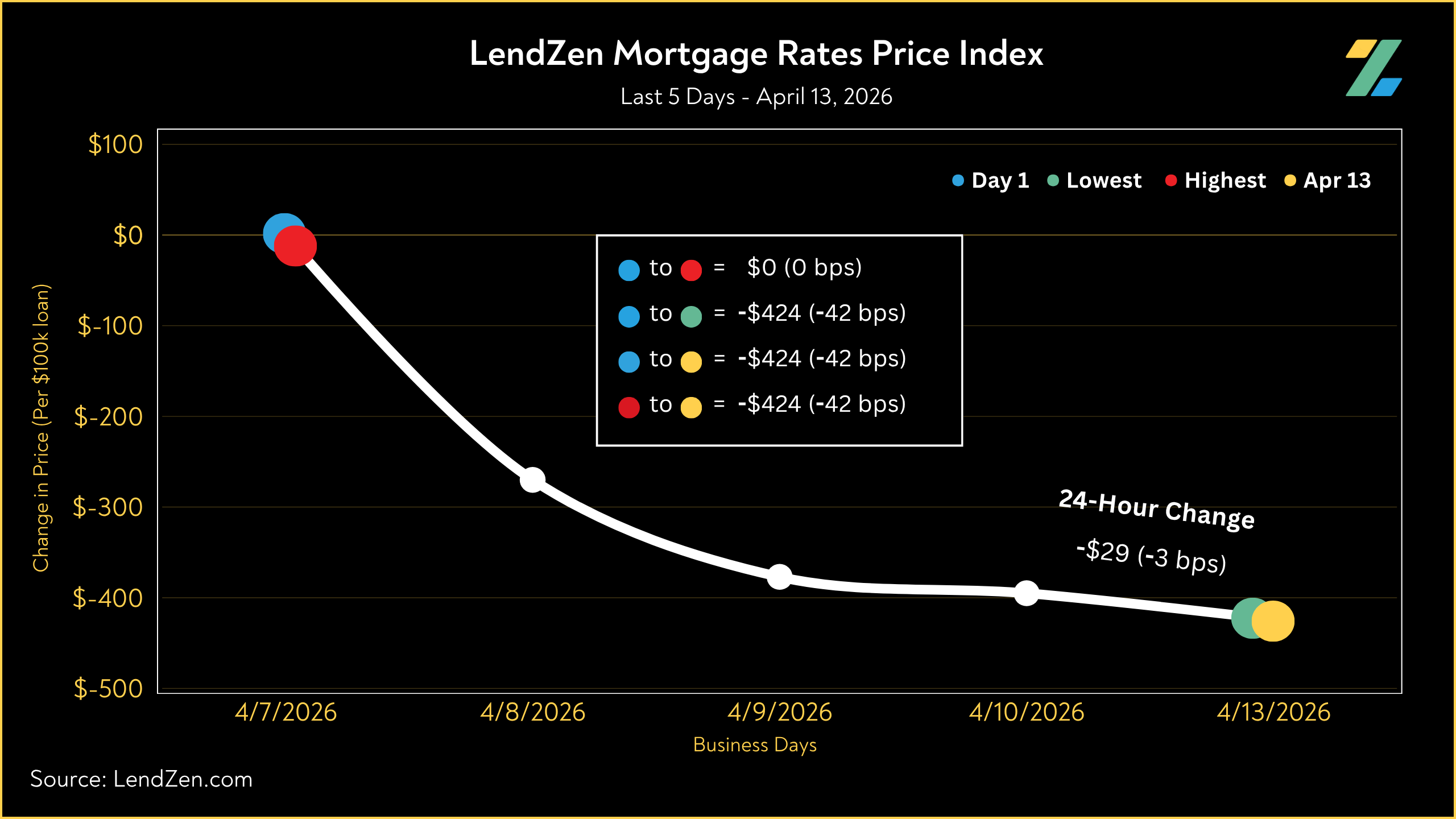 Meanwhile, the LendZen Index tracks the price of each mortgage rate across a spectrum of publicly traded MBS.