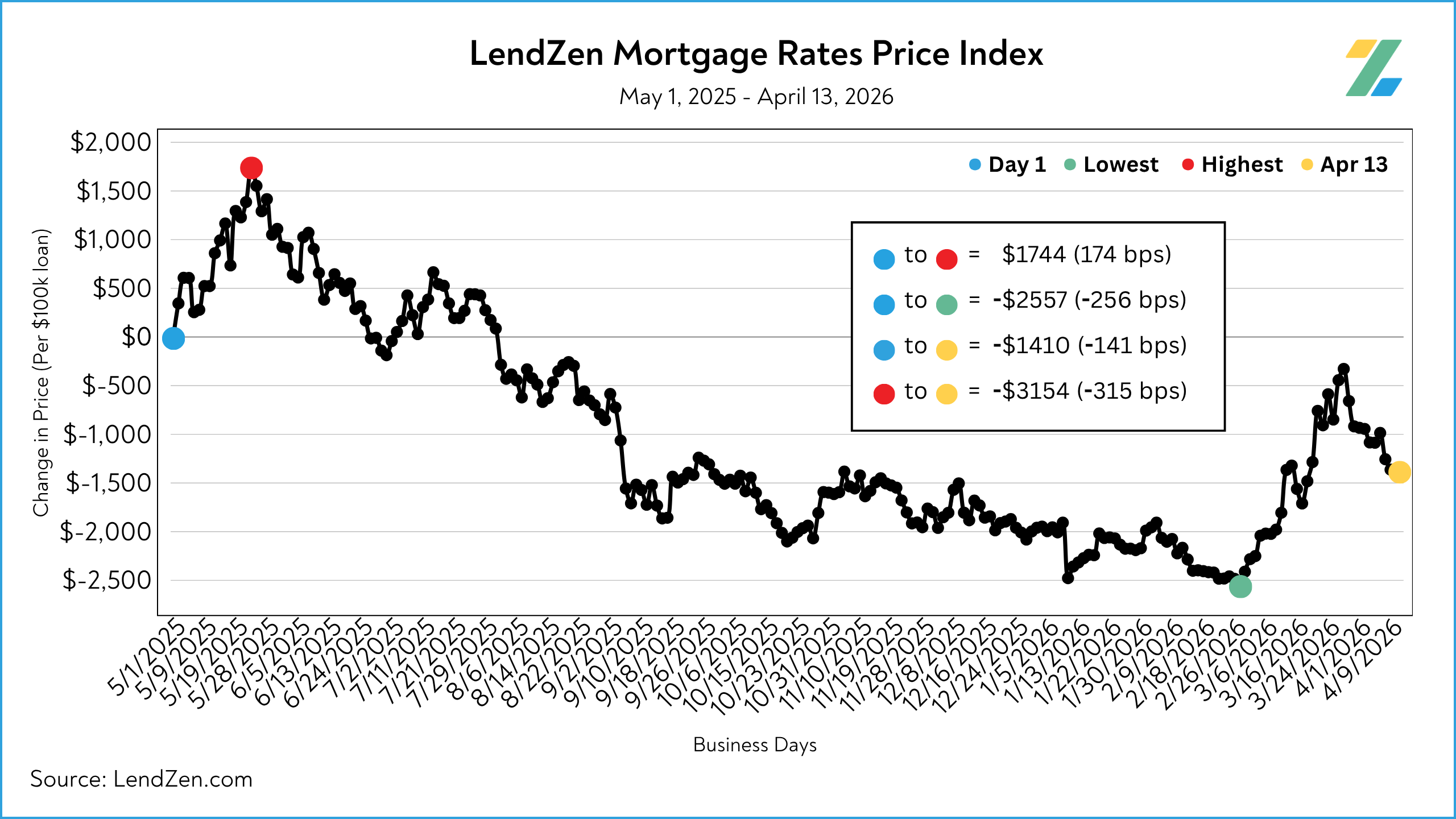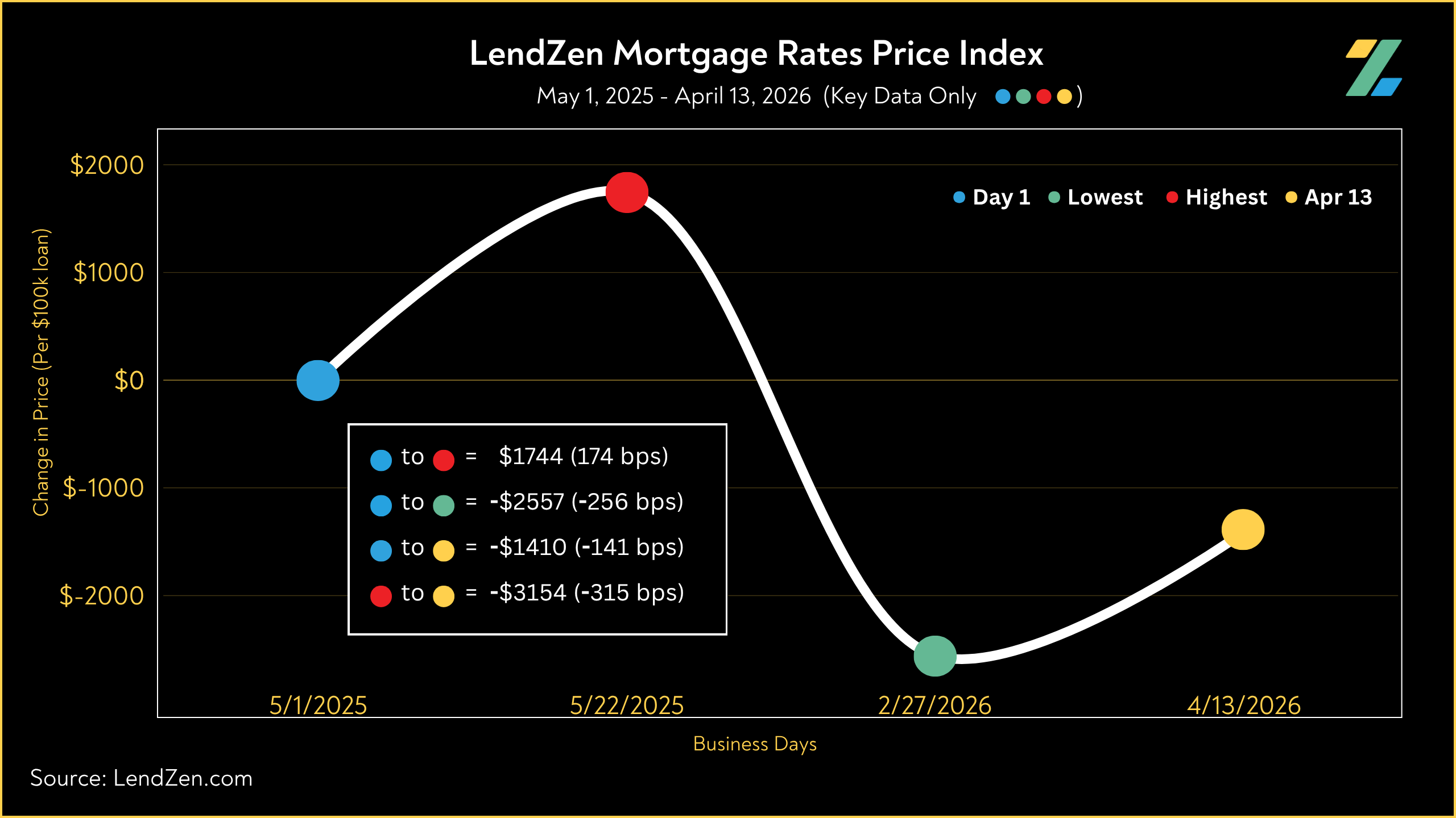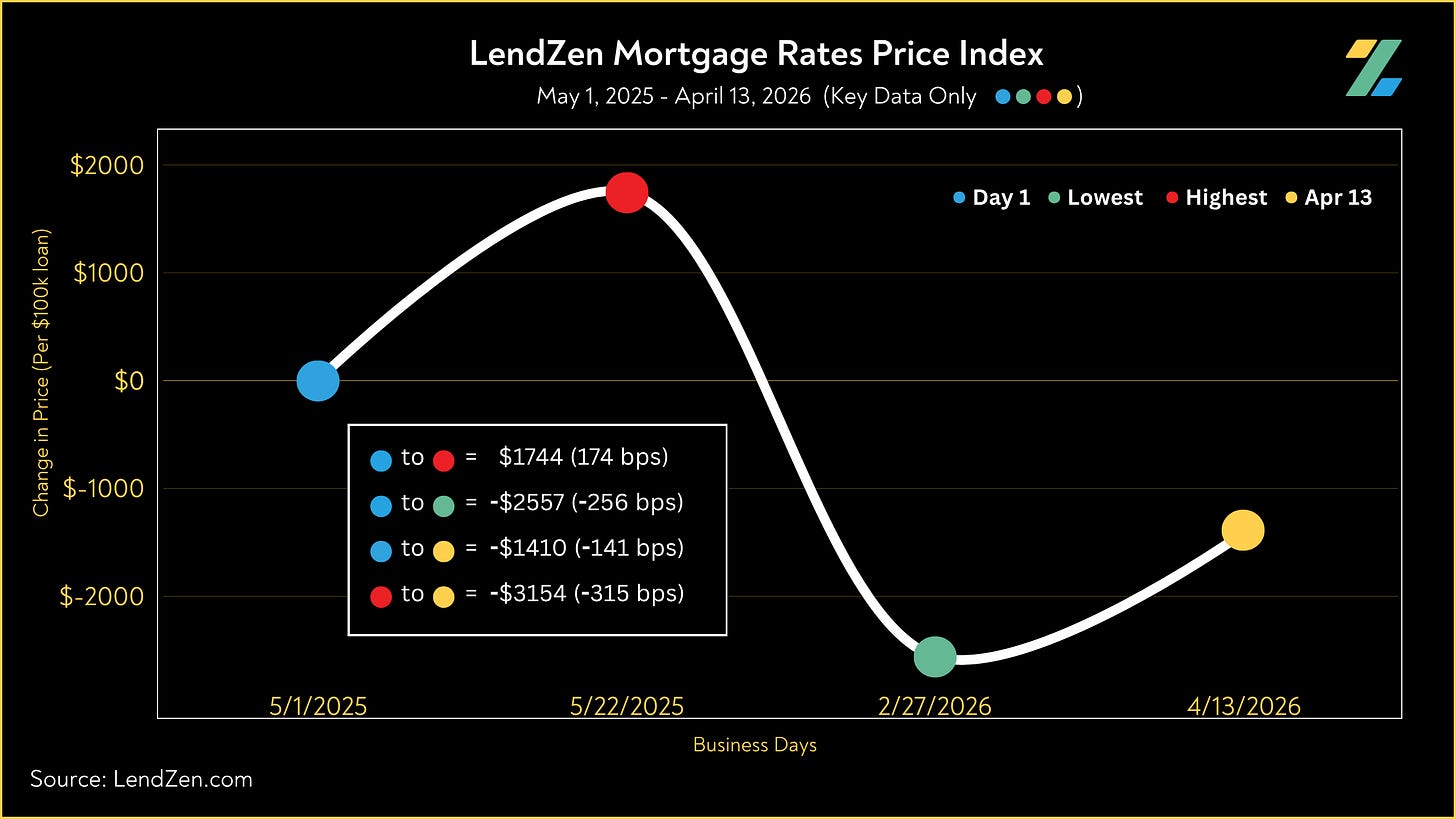 The LendZen Index tracks the price of mortgage rates across a spectrum of mortgage-backed securities.