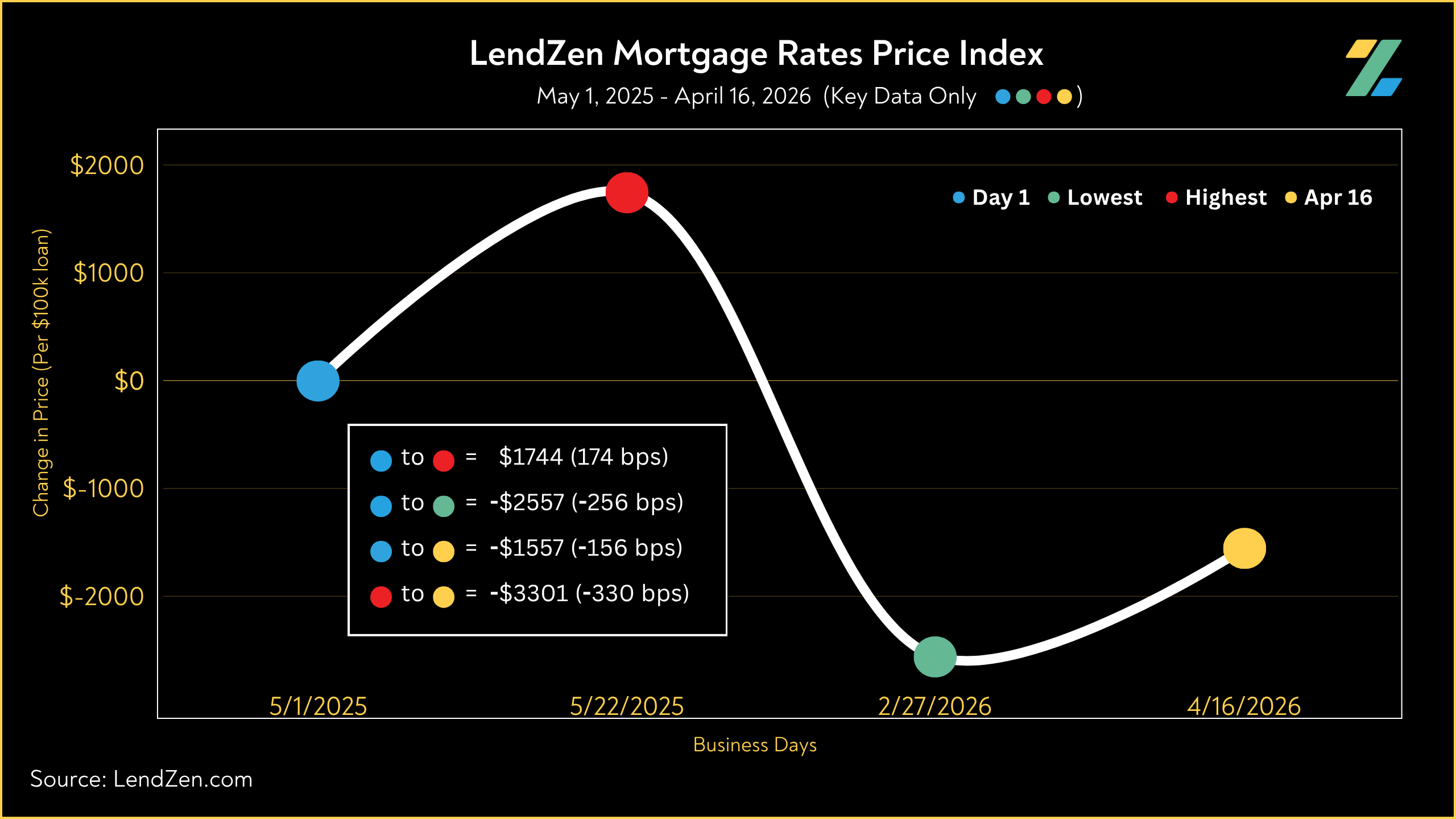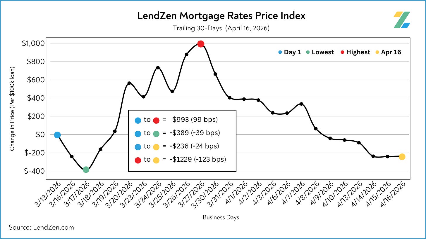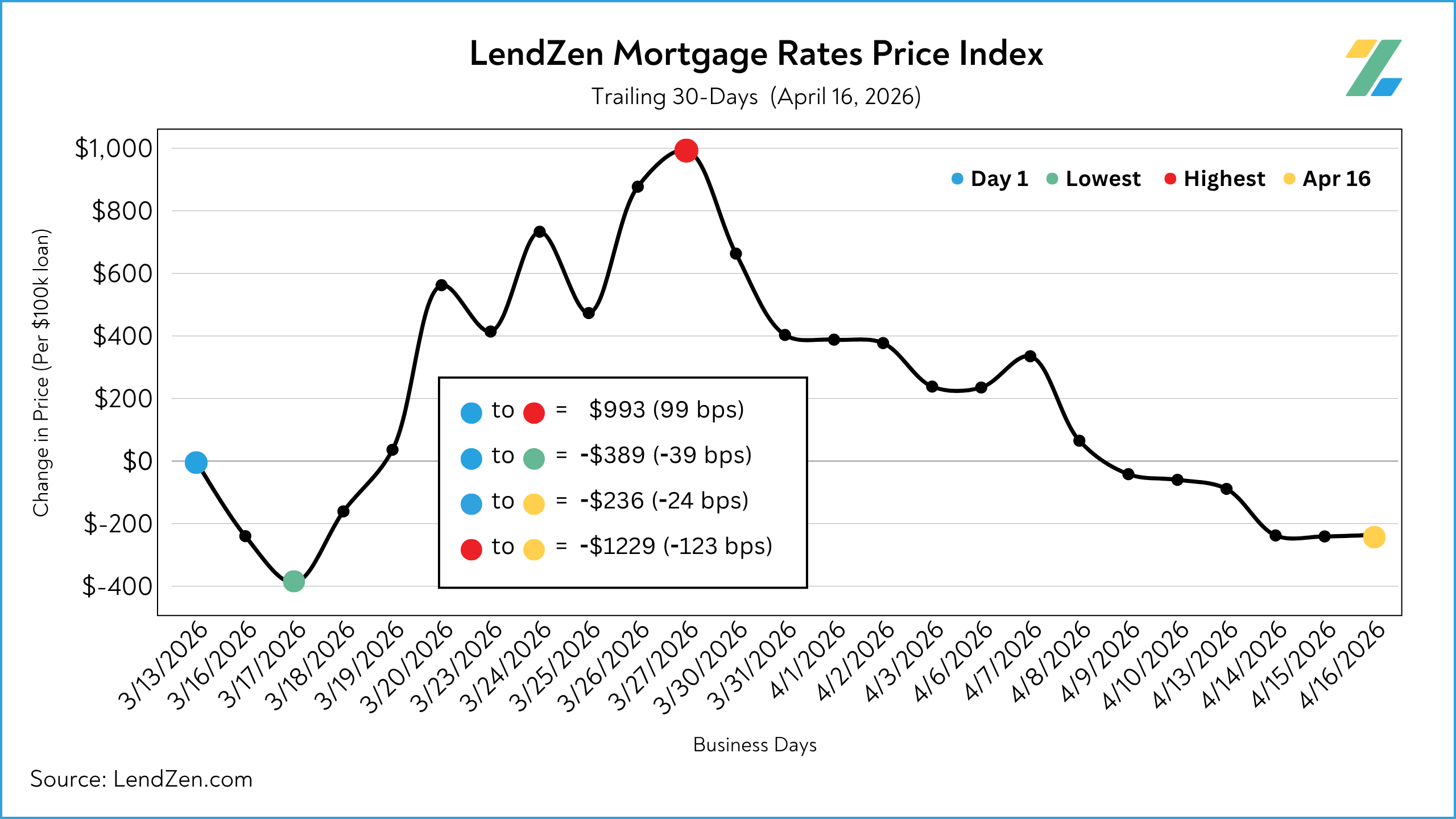 The LendZen Index tracks the price of mortgage rates across a spectrum of mortgage-backed securities.