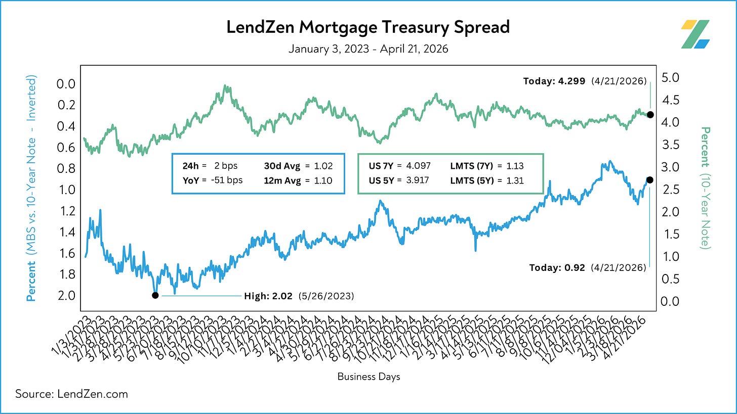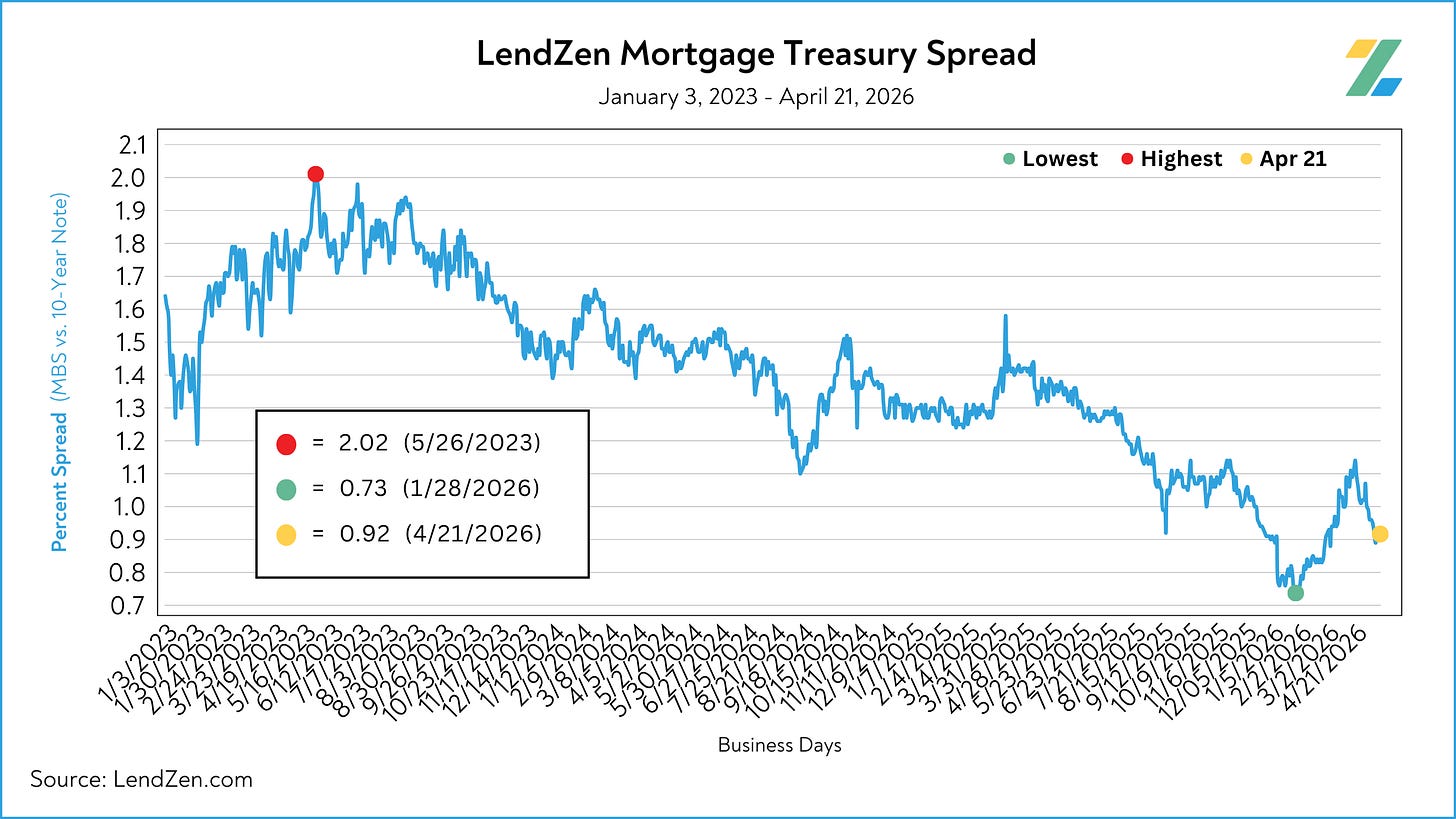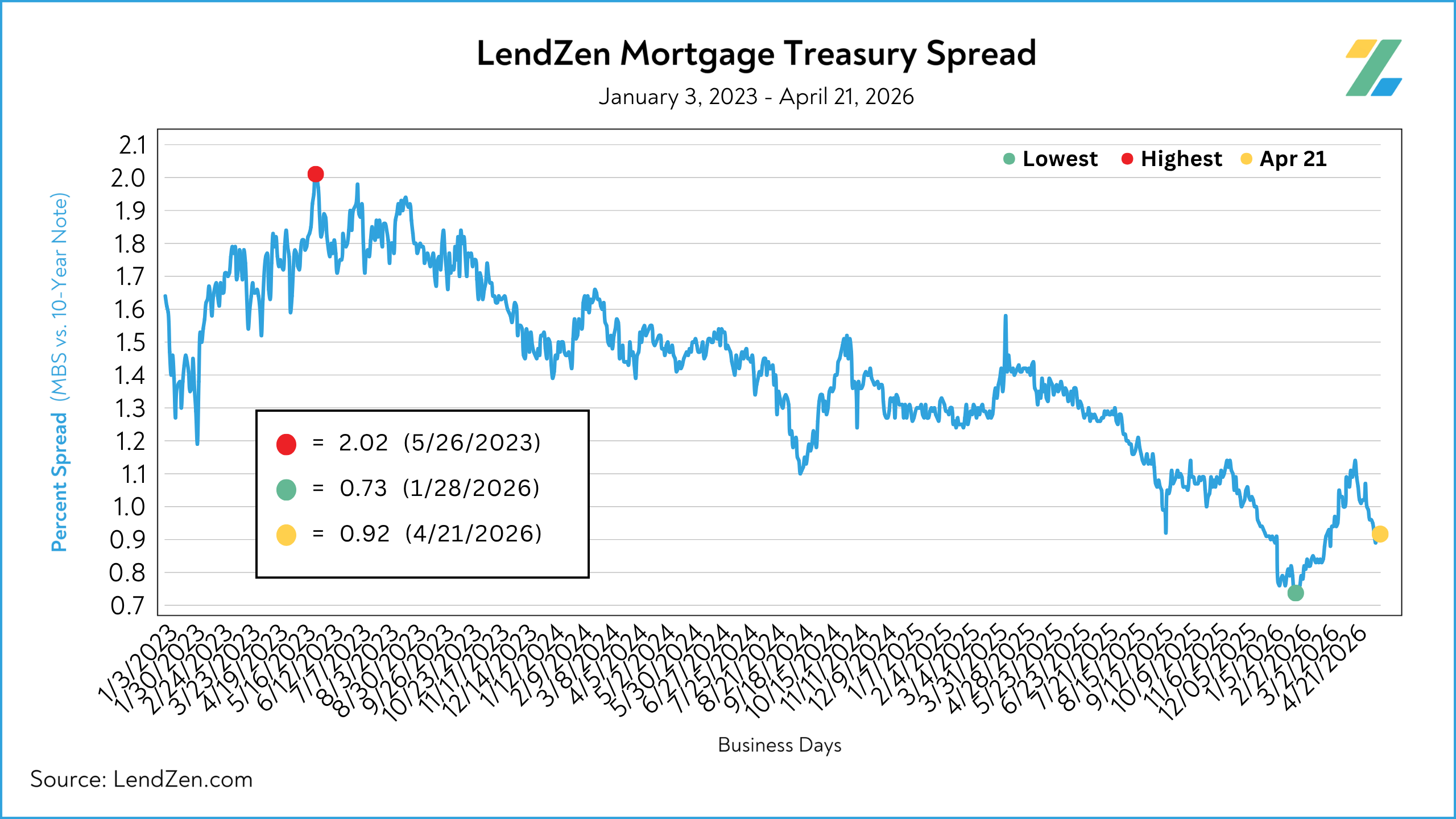 The LendZen Mortgage Treasury Spread (LMTS) uses actual bond yields to create a historically consistent, and reliable, data set.