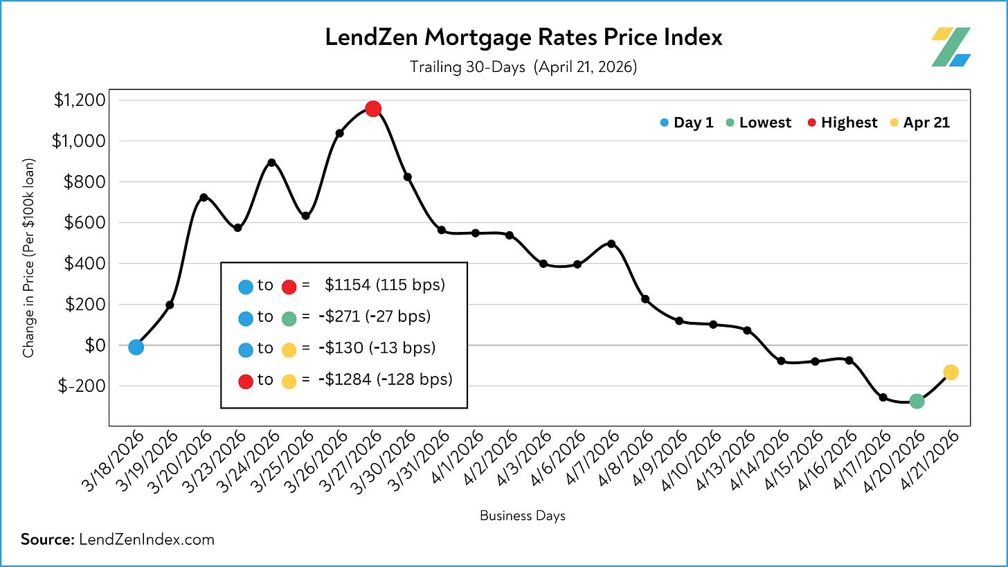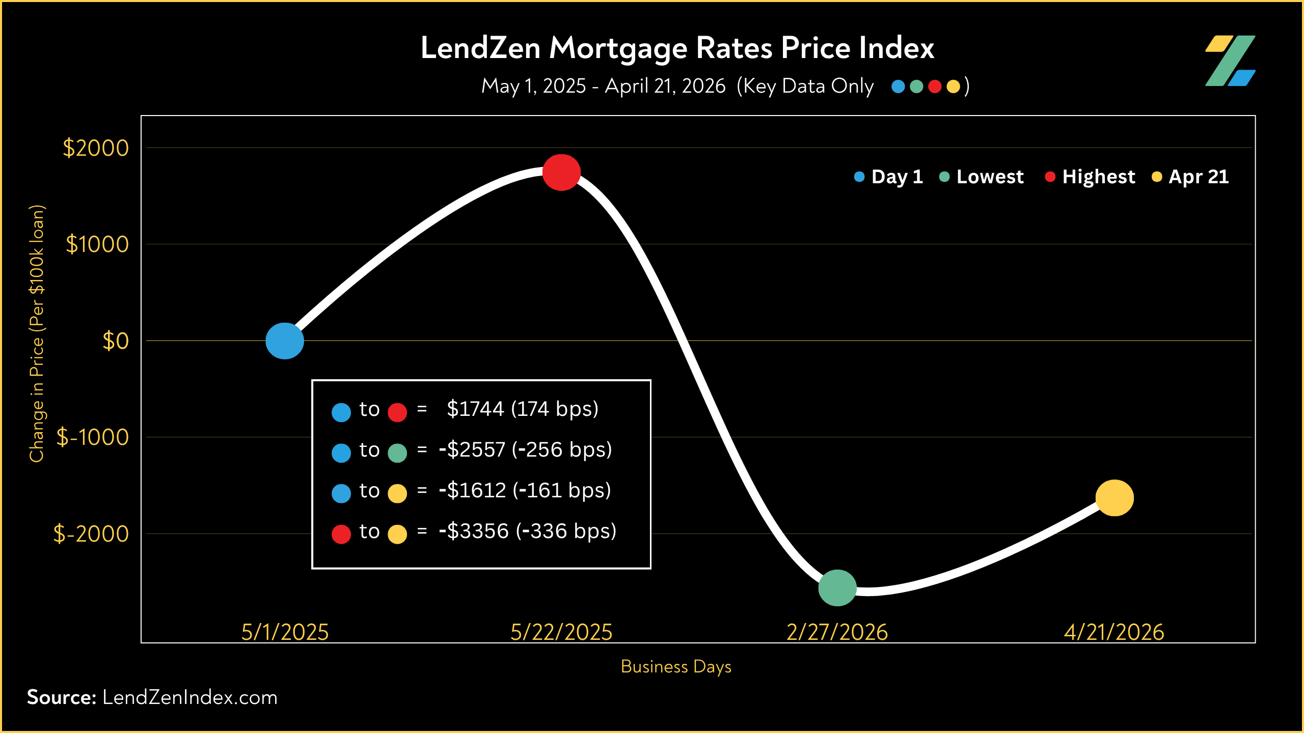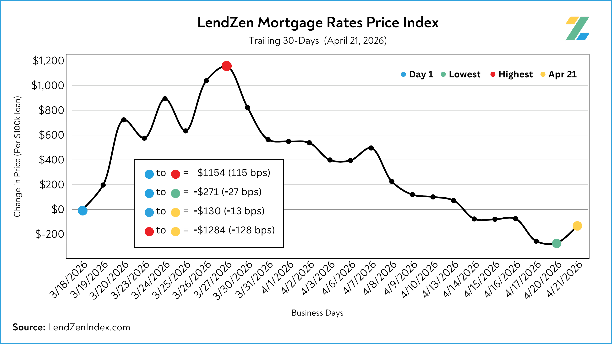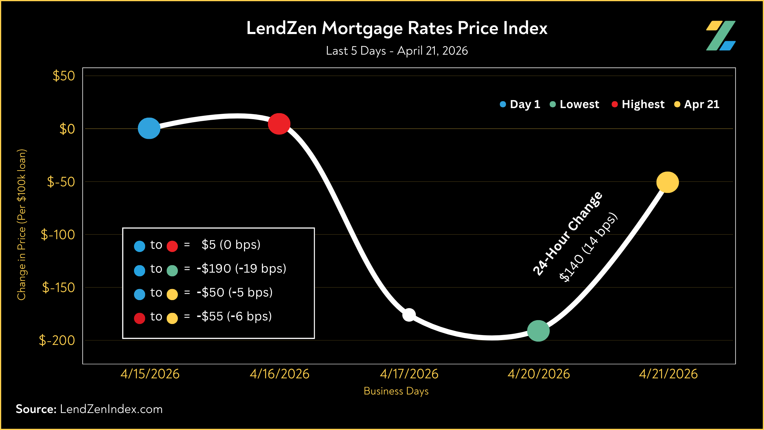 The LendZen Index tracks the price of mortgage rates across a spectrum of mortgage-backed securities.