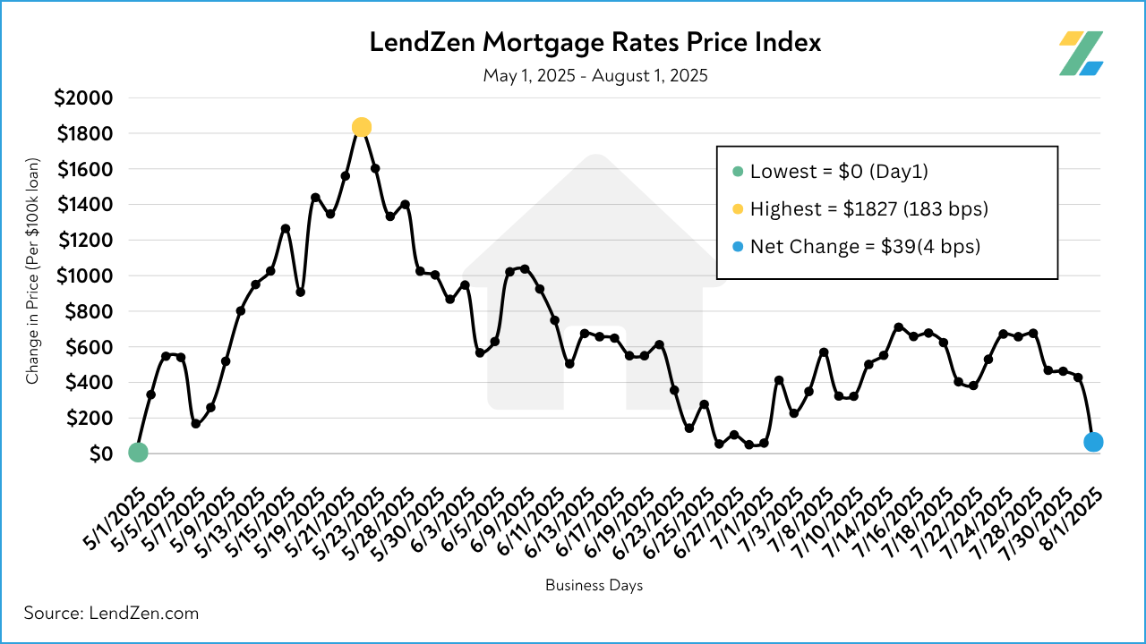 The LendZen Index tracks the price of mortgage rates across a spectrum of mortgage-backed securities.