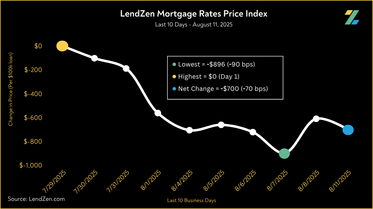 Since July 29, the price of mortgage rates decreased 70 basis points, as seen in the 10-Day chart below.