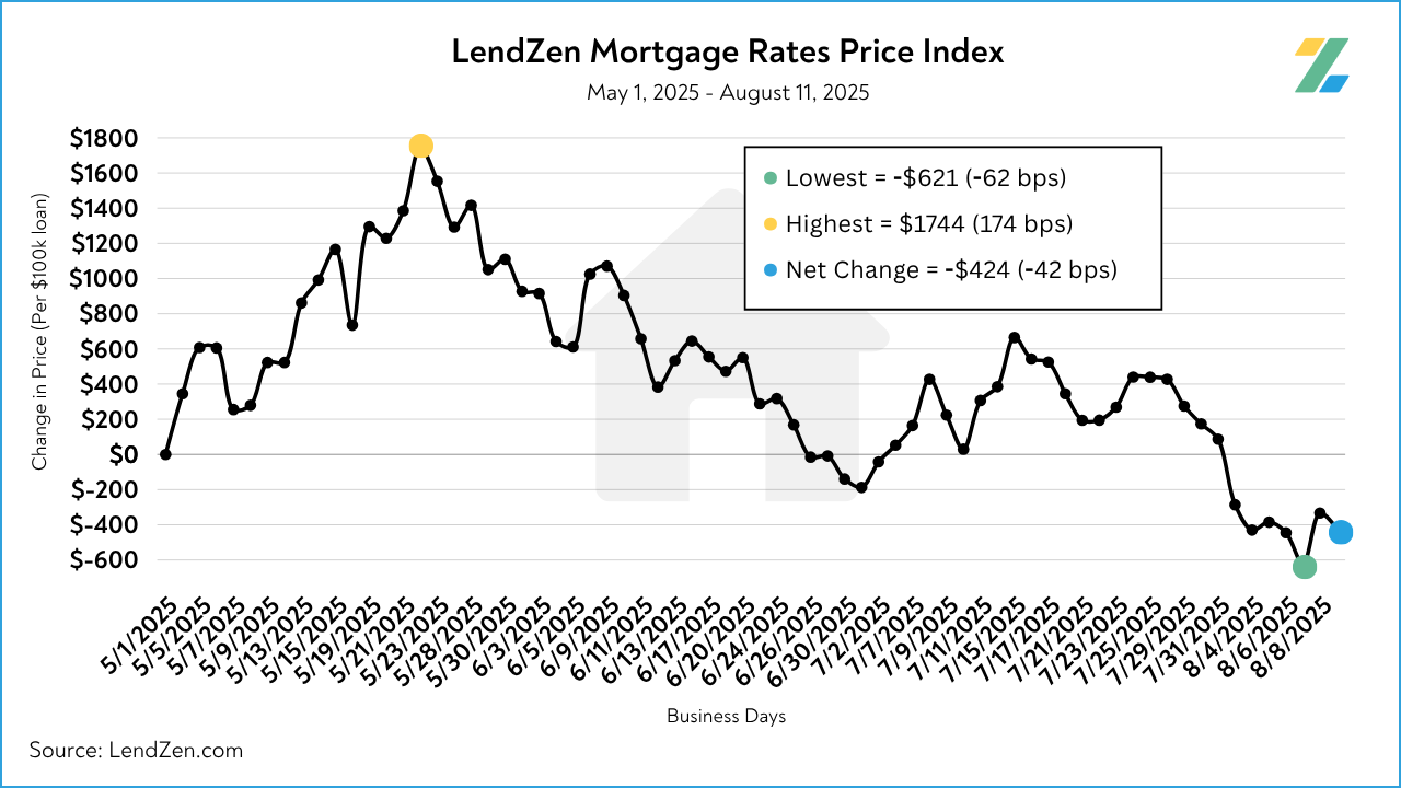 The LendZen Index tracks the price of mortgage rates across a spectrum of mortgage-backed securities.