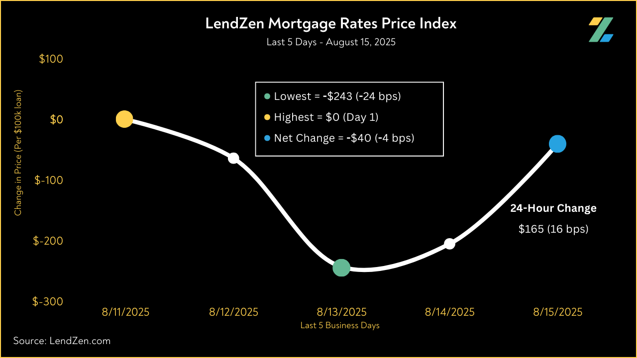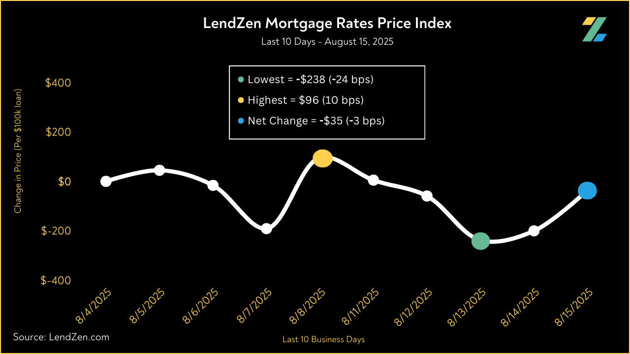 Since August 4, the price of mortgage rates decreased 3 basis points, as seen in the 10-Day chart below.