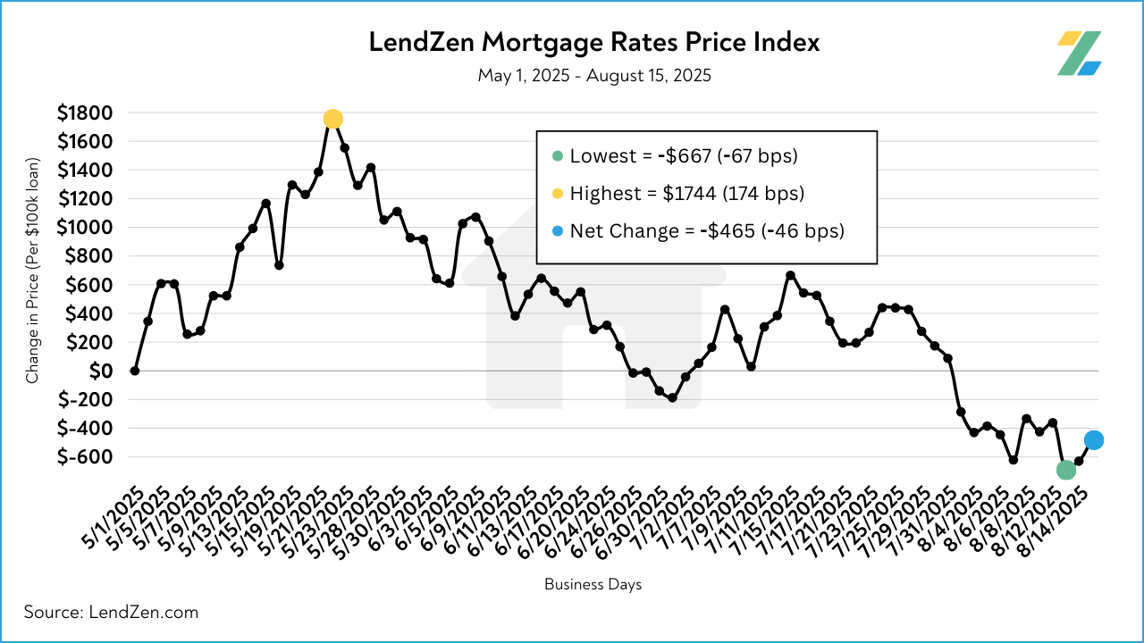 The LendZen Index tracks the price of mortgage rates across a spectrum of mortgage-backed securities.