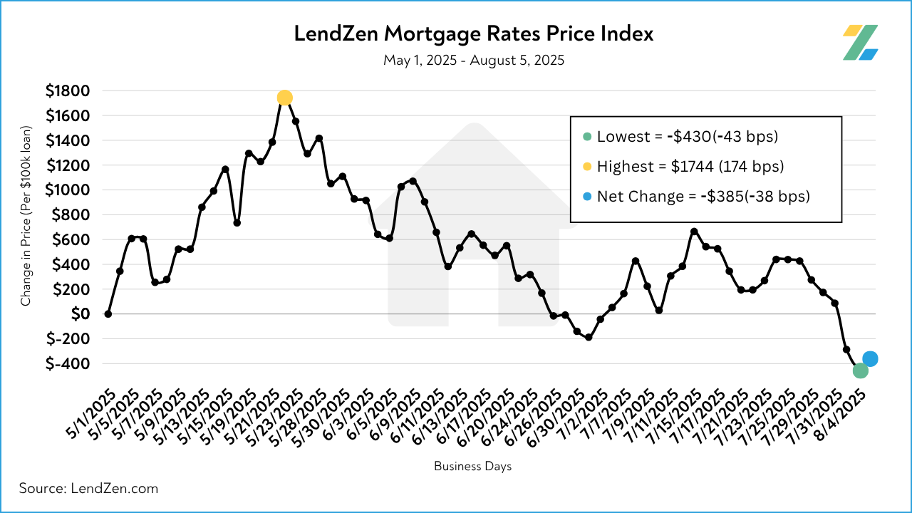 The LendZen Index tracks the price of mortgage rates across a spectrum of mortgage-backed securities.
