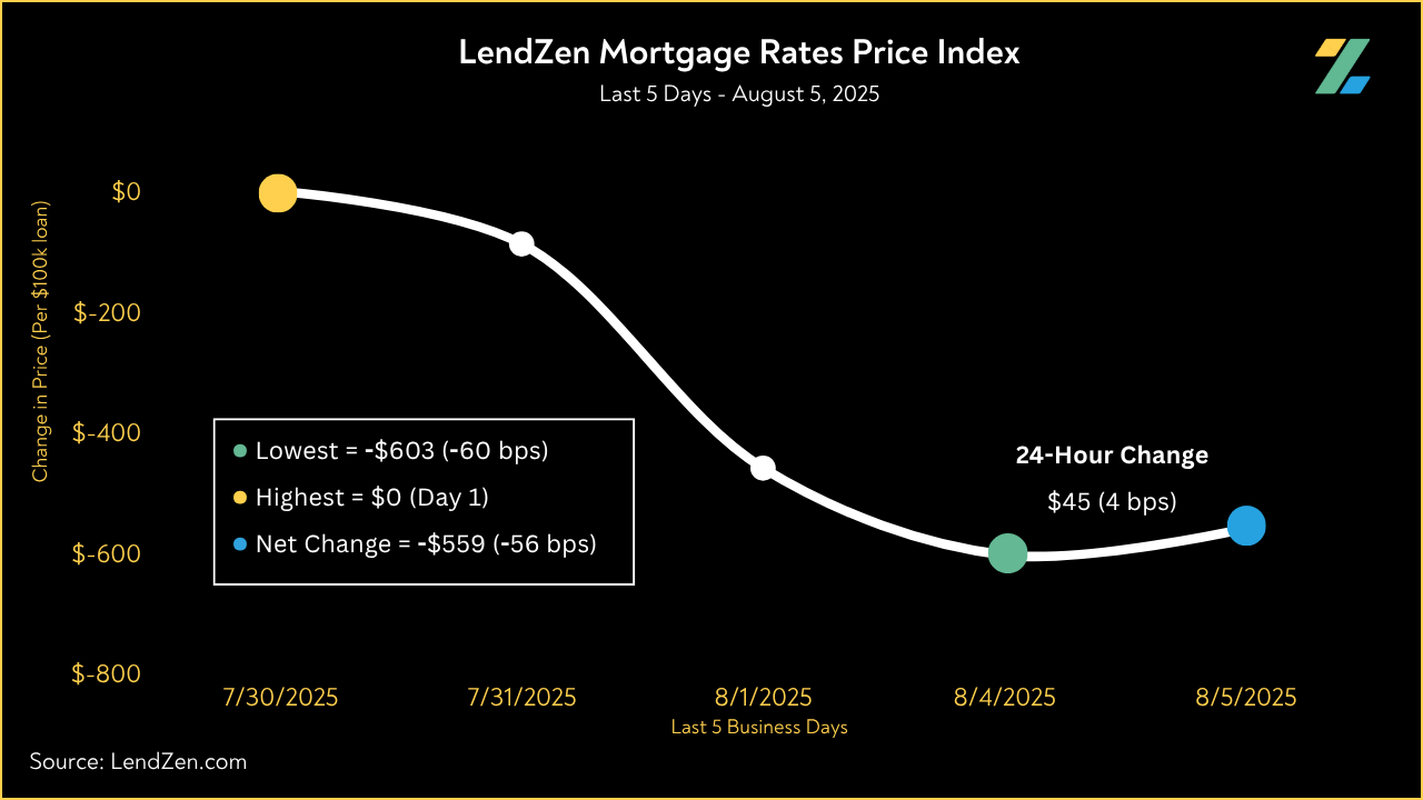 Since July, the price of mortgage rates decreased 65 basis points, as seen in the 10-Day chart below.