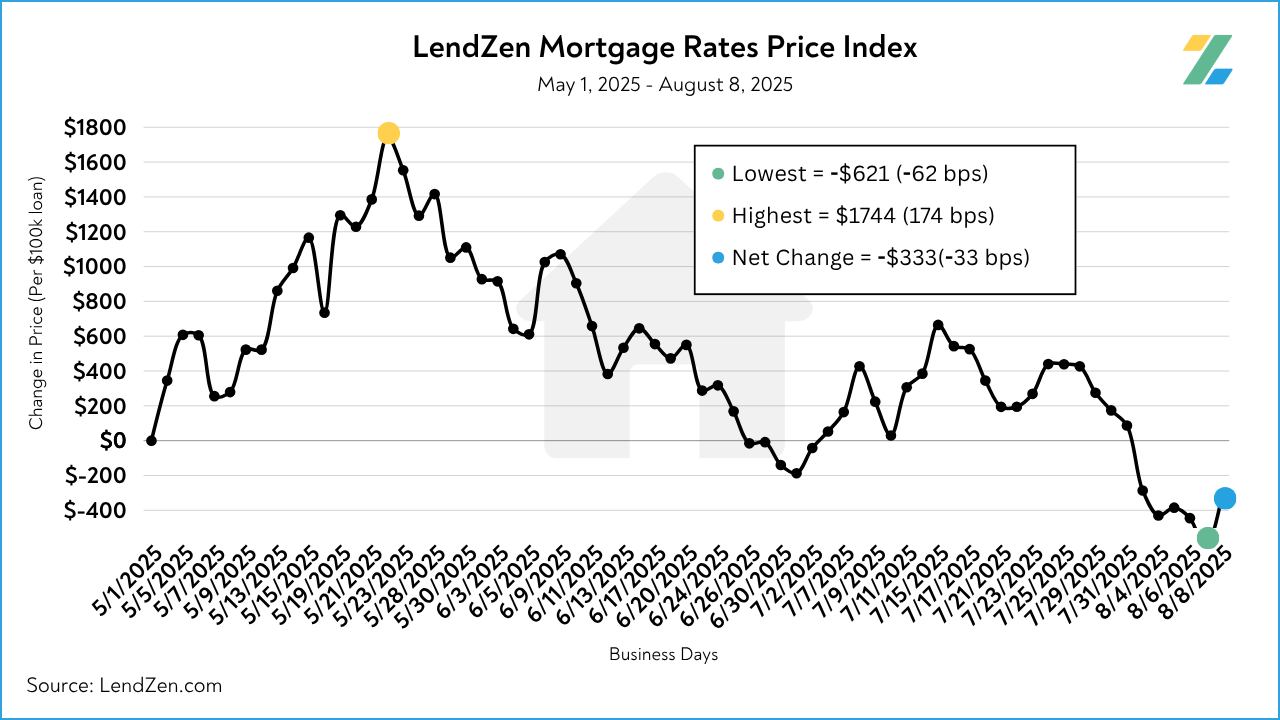 The LendZen Index tracks the price of mortgage rates across a spectrum of mortgage-backed securities.