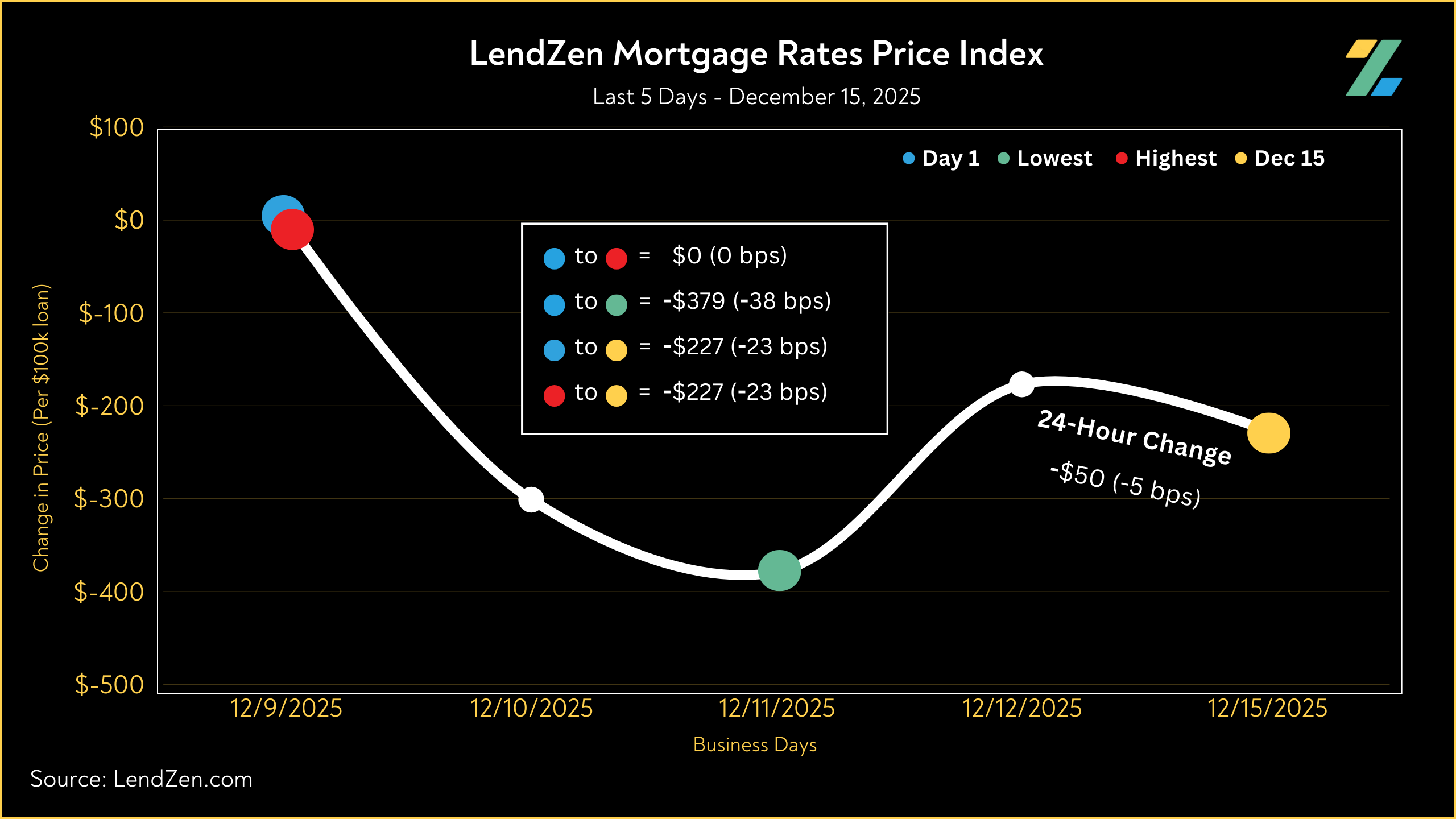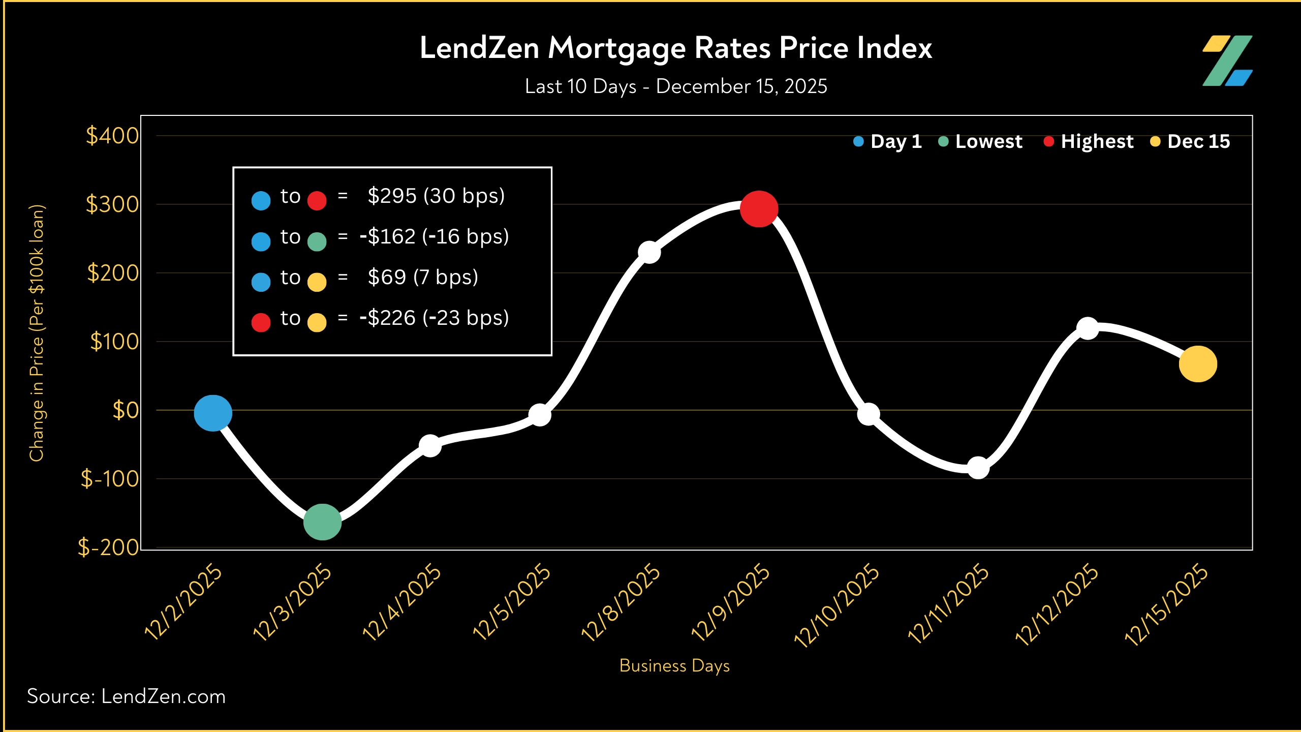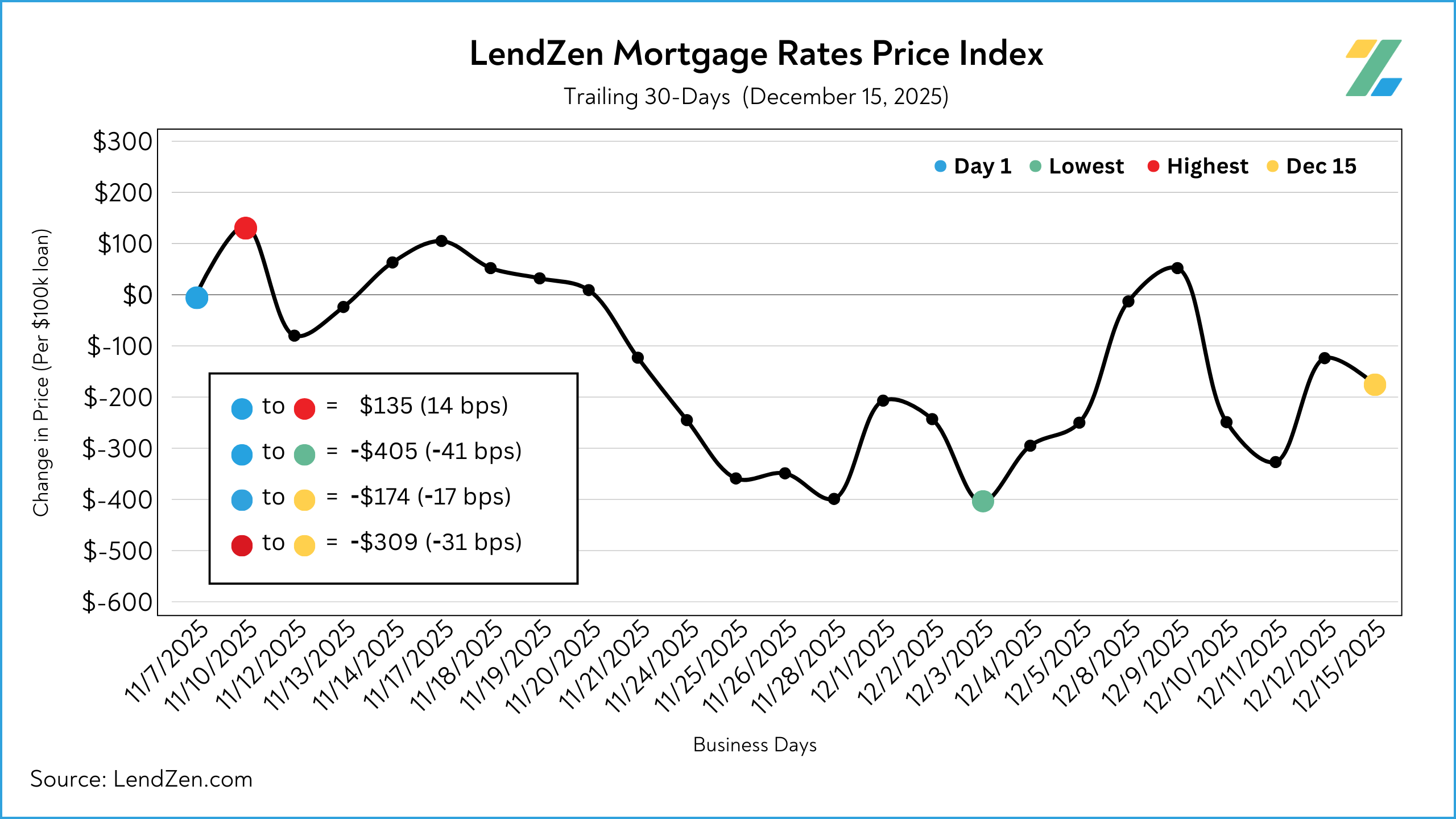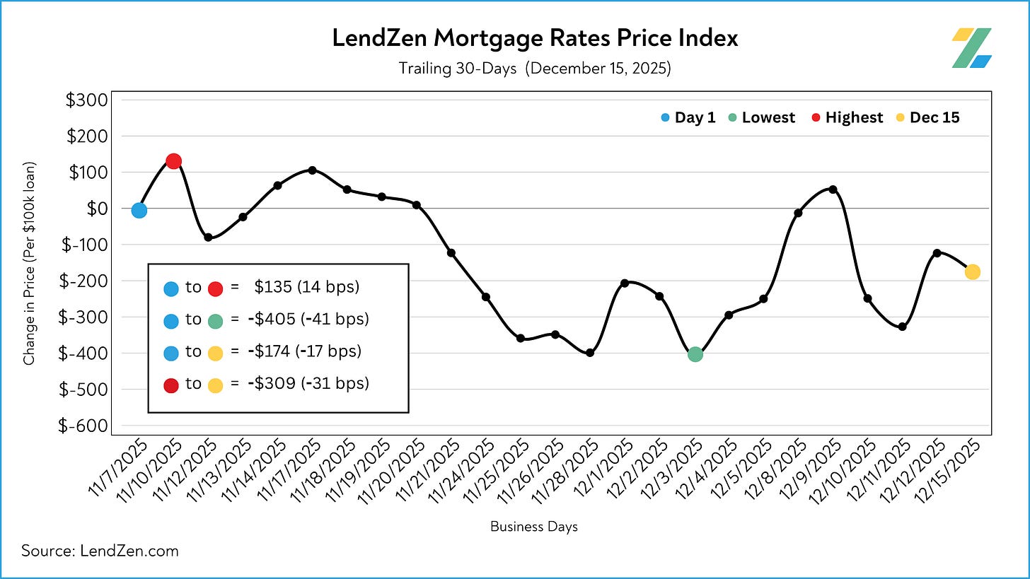 The LendZen Index tracks the price of mortgage rates across a spectrum of mortgage-backed securities.