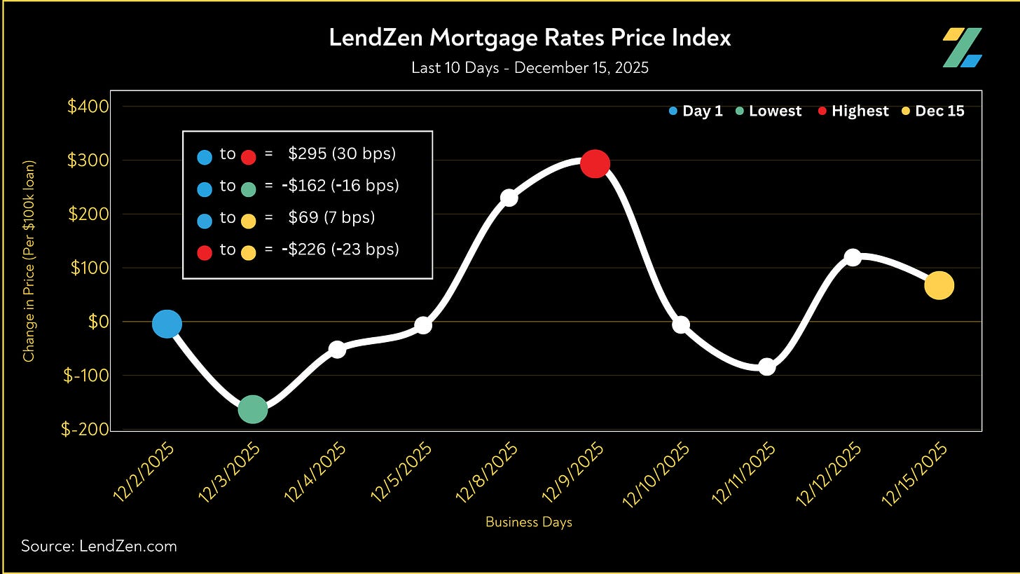 Since December 2, the price of mortgage rates increased 7 basis points, as seen in the 10-Day chart below.