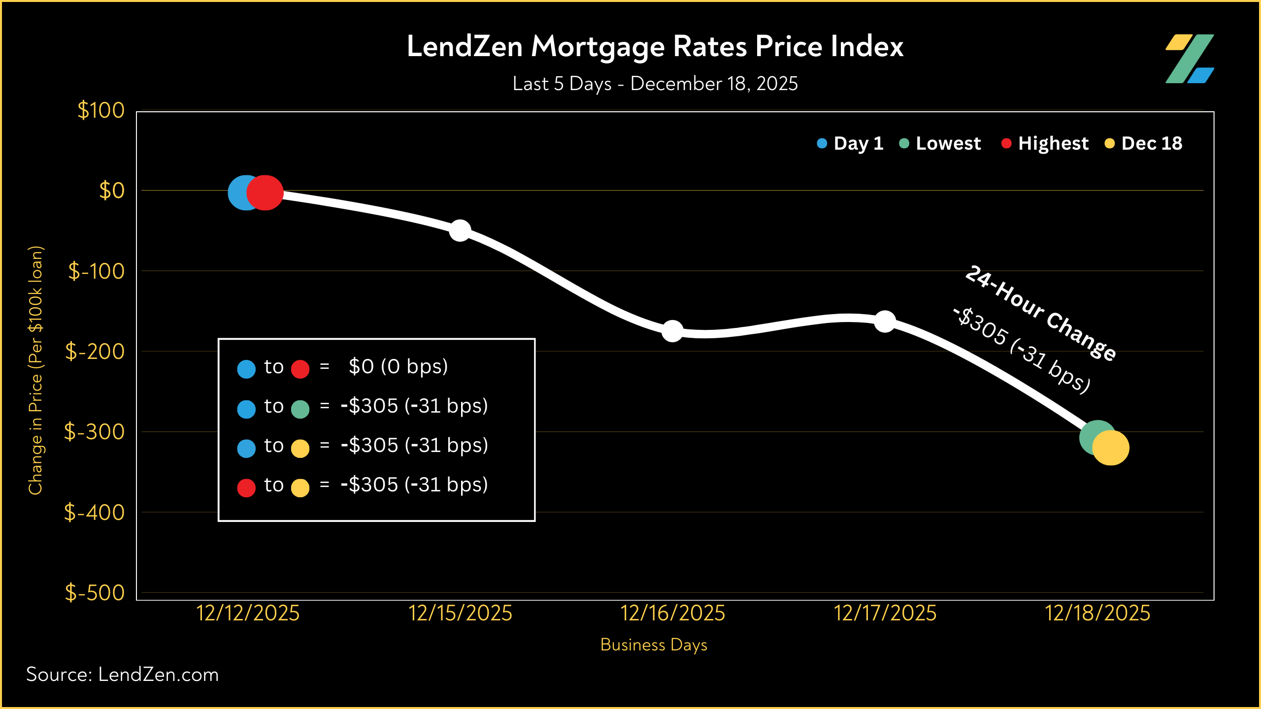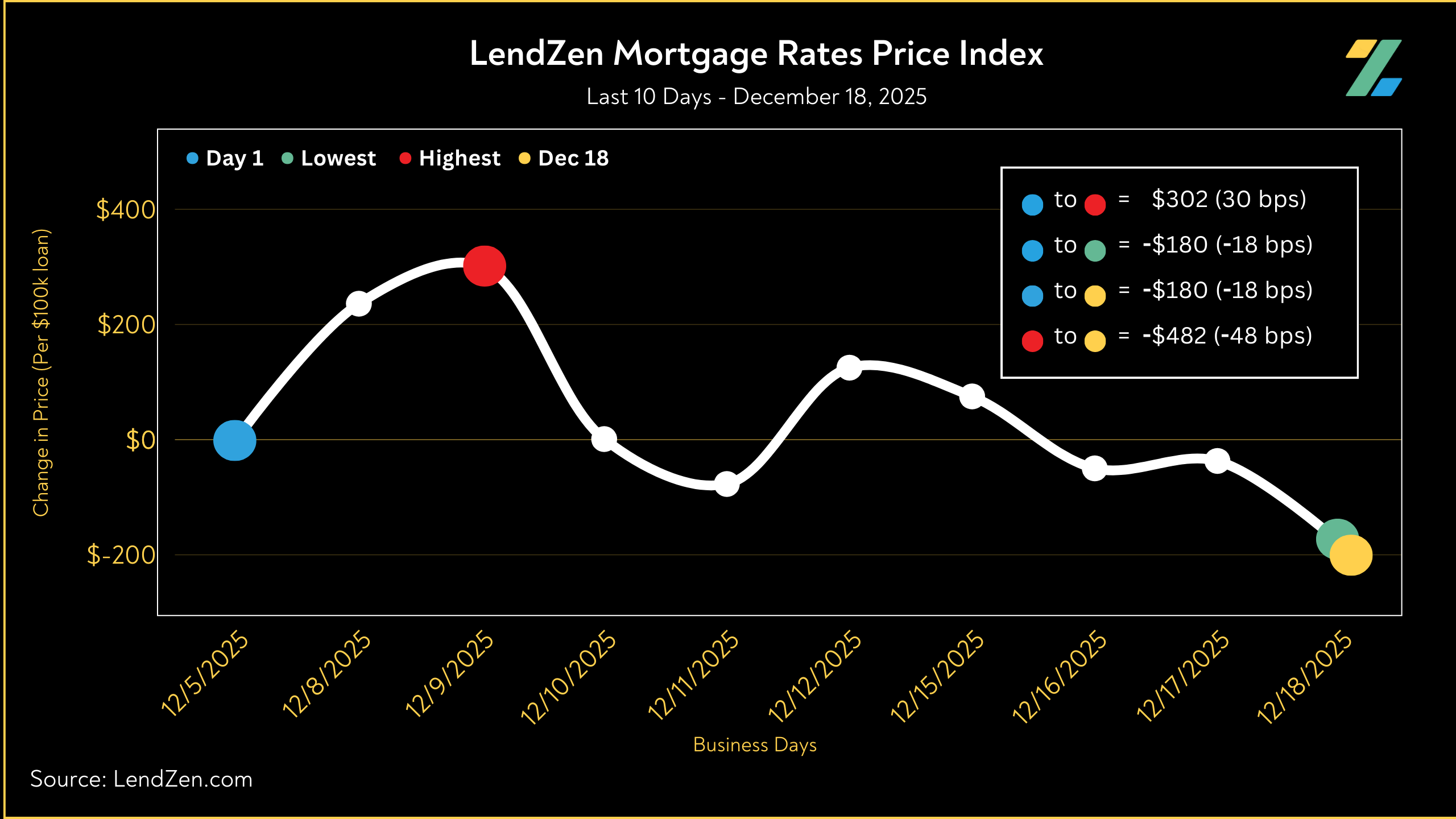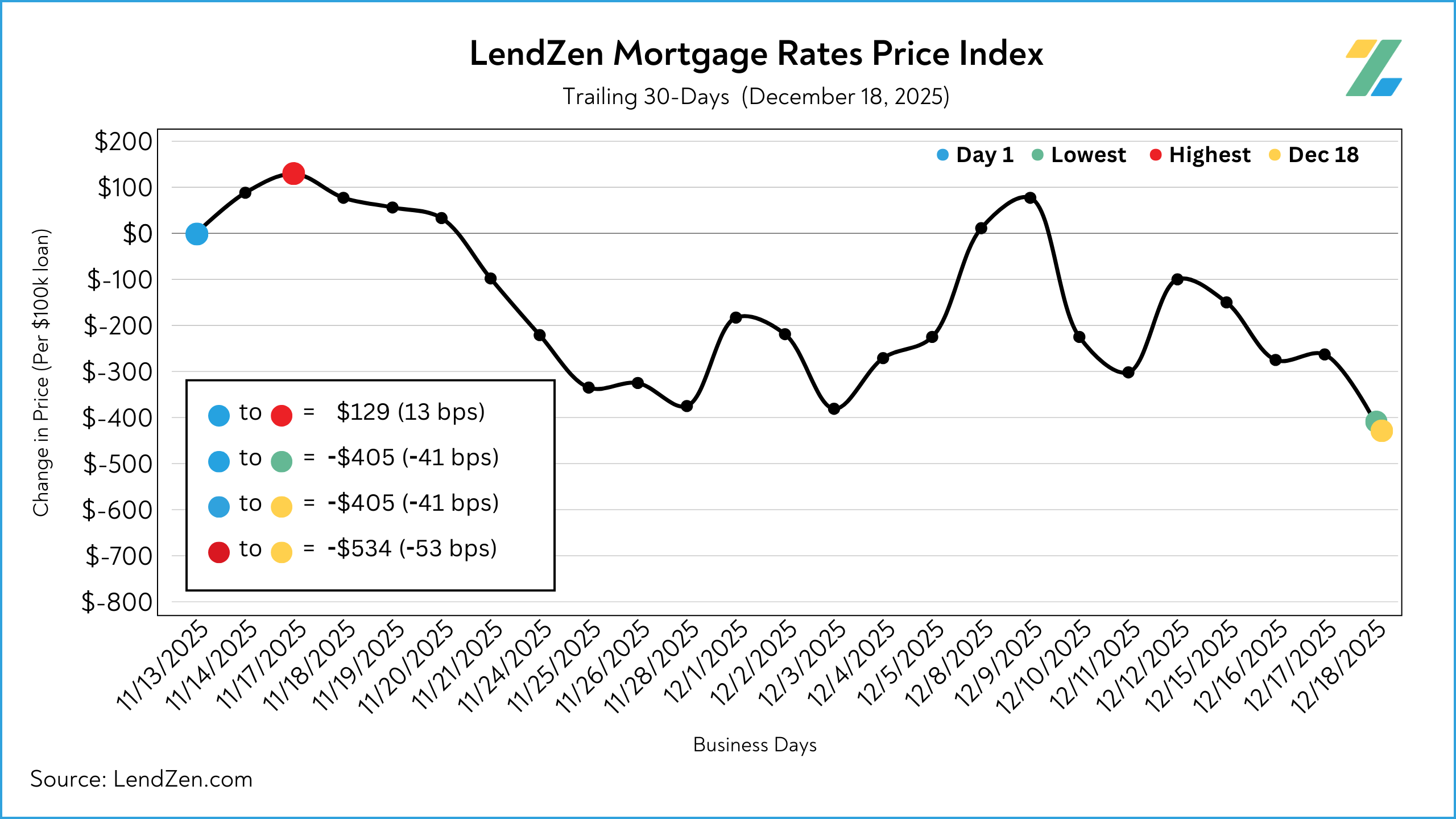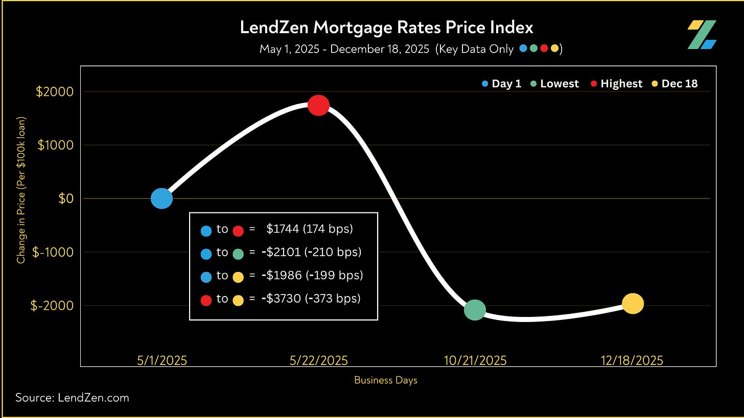 The LendZen Index tracks the price of mortgage rates across a spectrum of mortgage-backed securities.