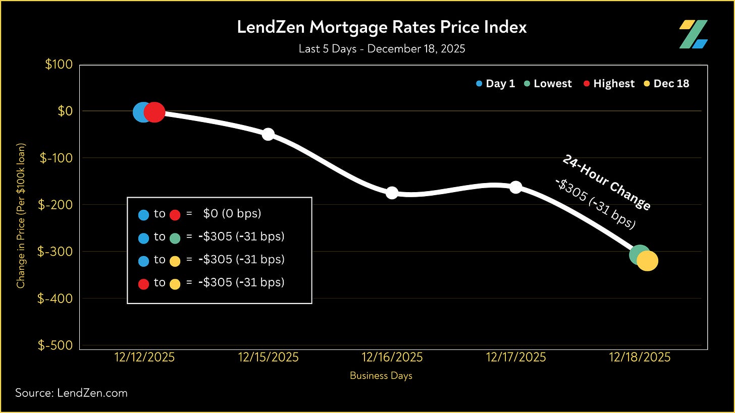 Since December 5, the price of mortgage rates decreased 18 basis points, as seen in the 10-Day chart below.