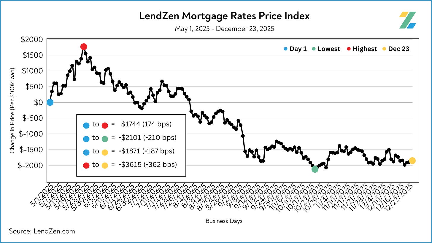 The LendZen Index tracks the price of mortgage rates across a spectrum of mortgage-backed securities.
