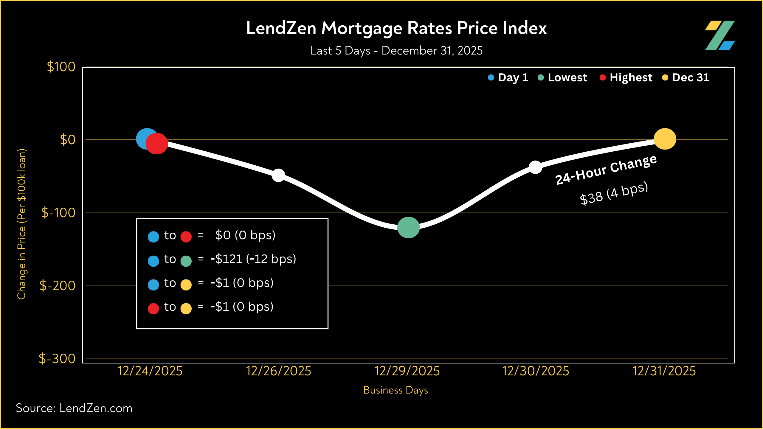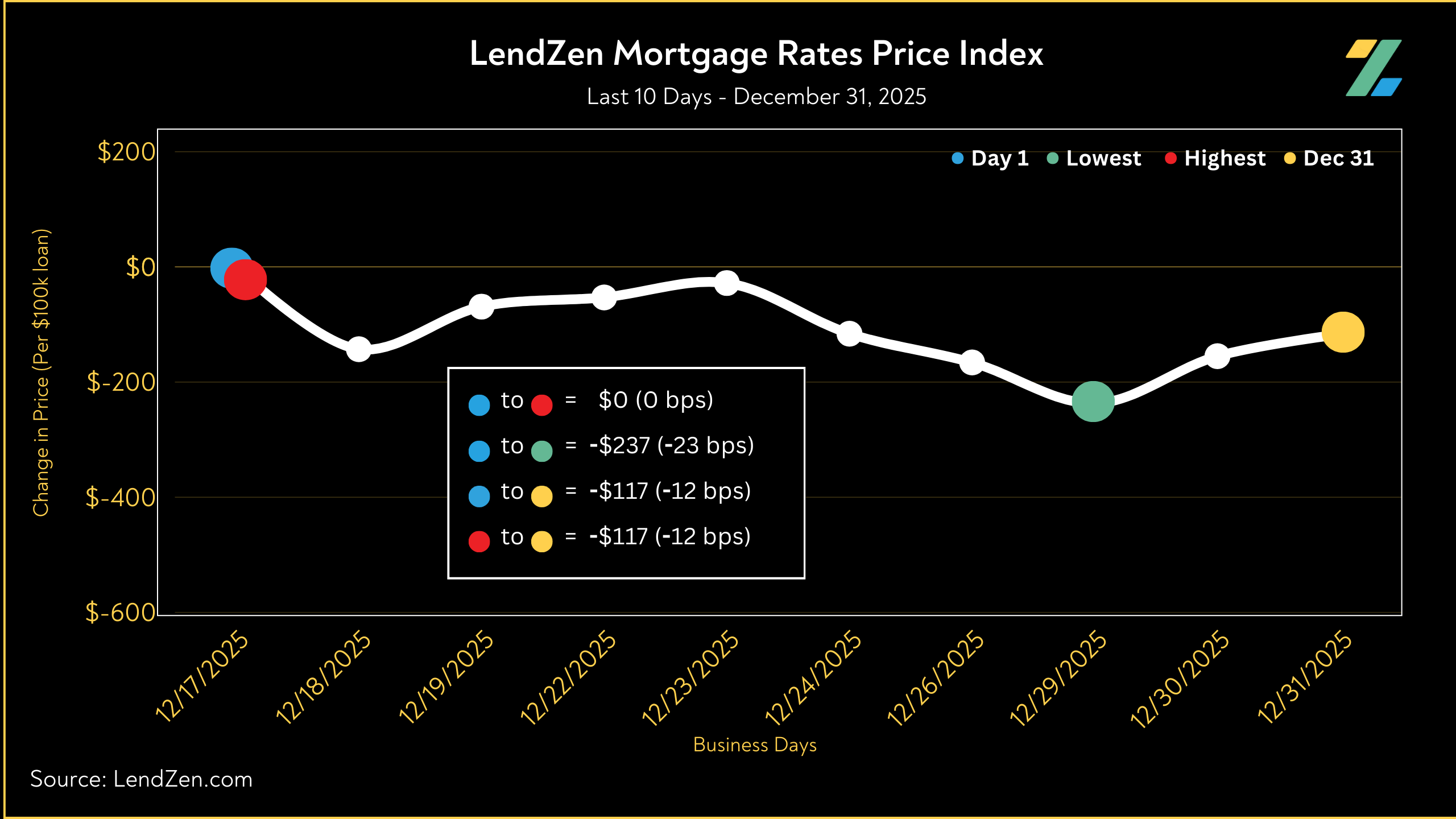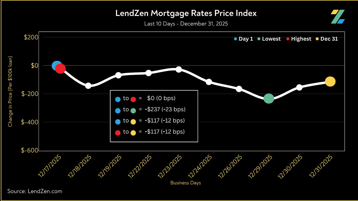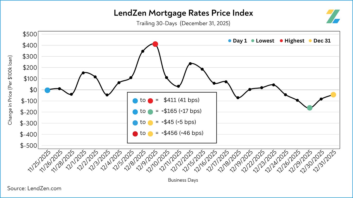 The LendZen Index tracks the price of mortgage rates across a spectrum of mortgage-backed securities.