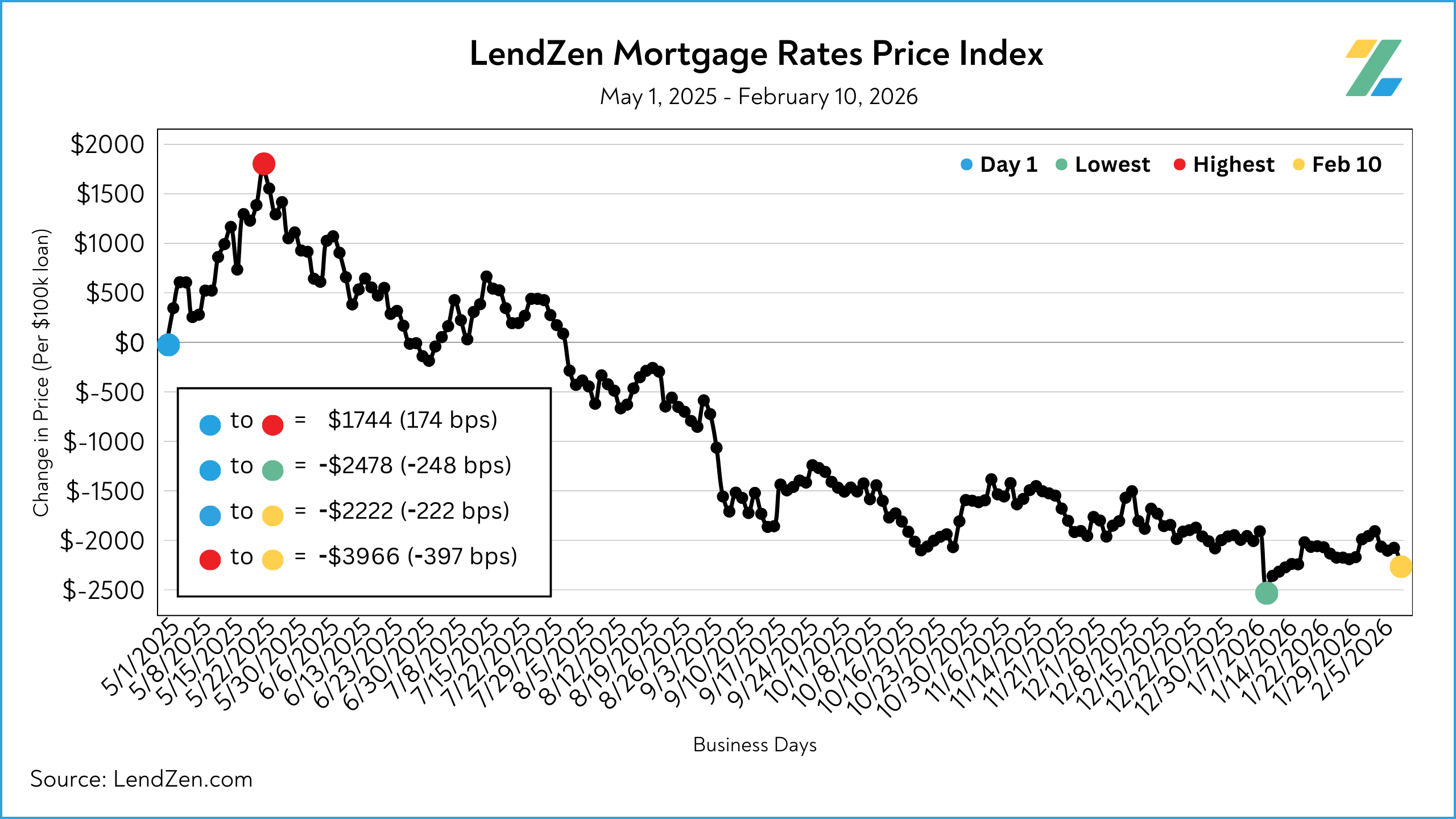 The LendZen Index tracks the price of mortgage rates across a spectrum of mortgage-backed securities.