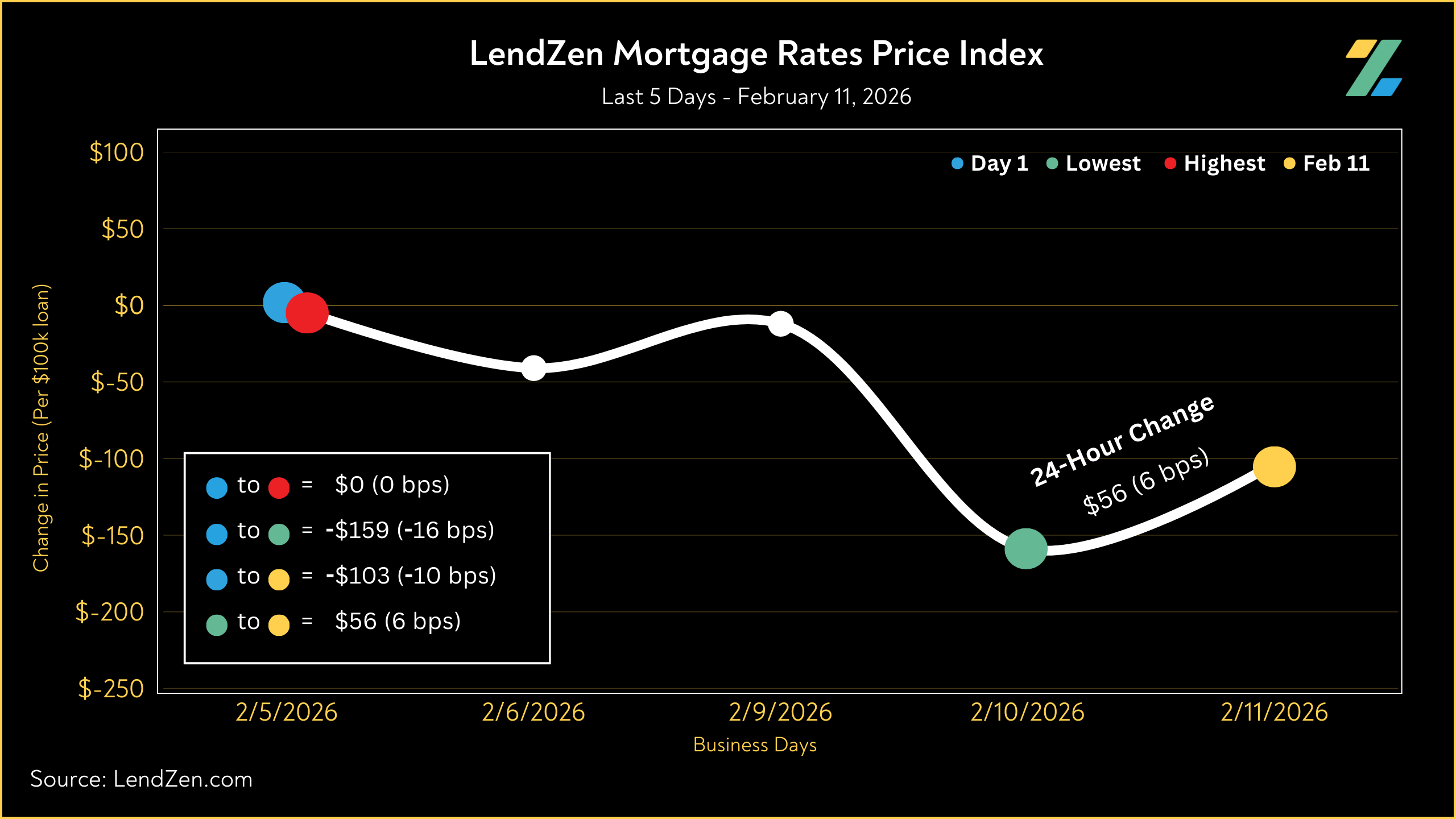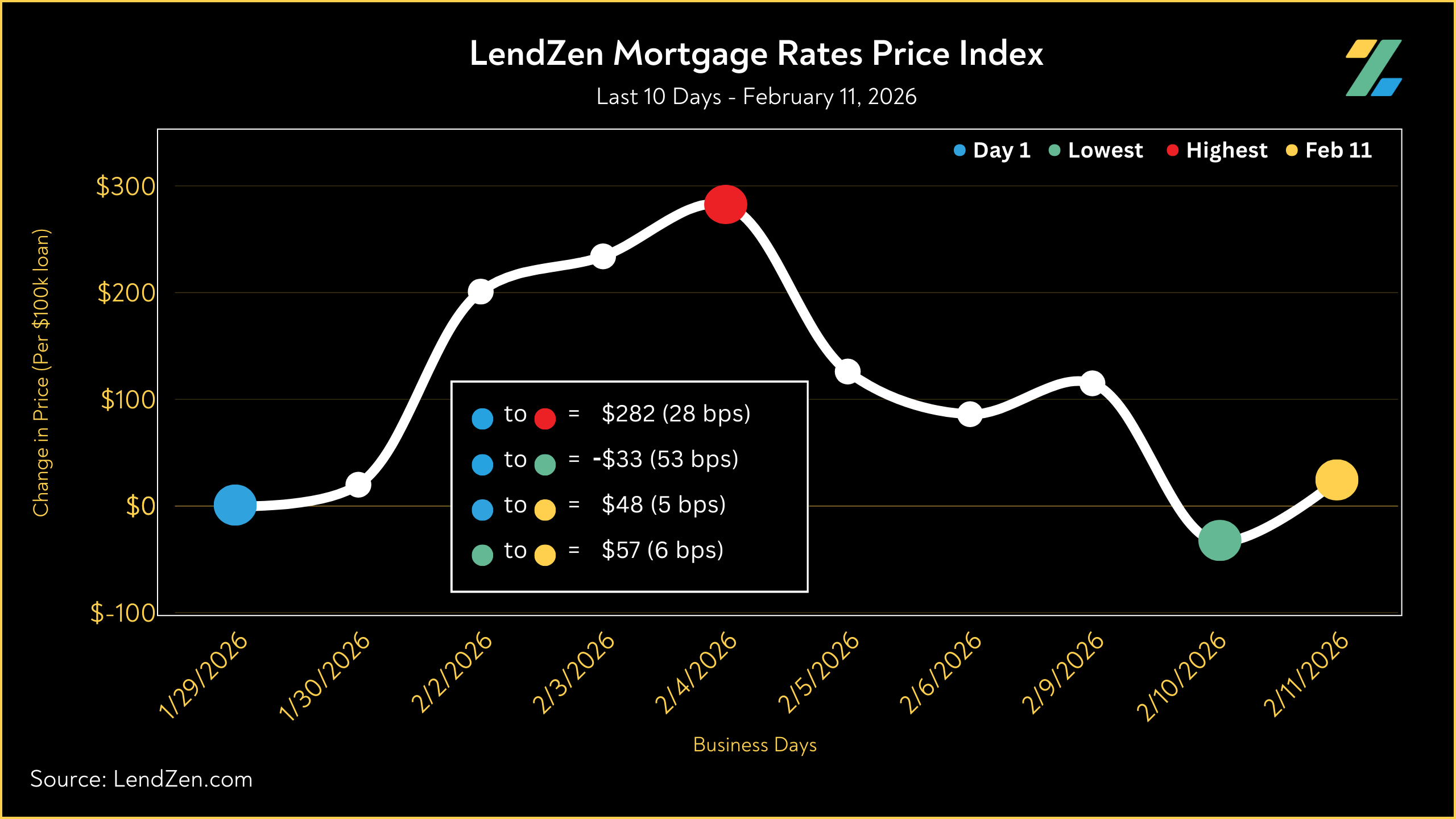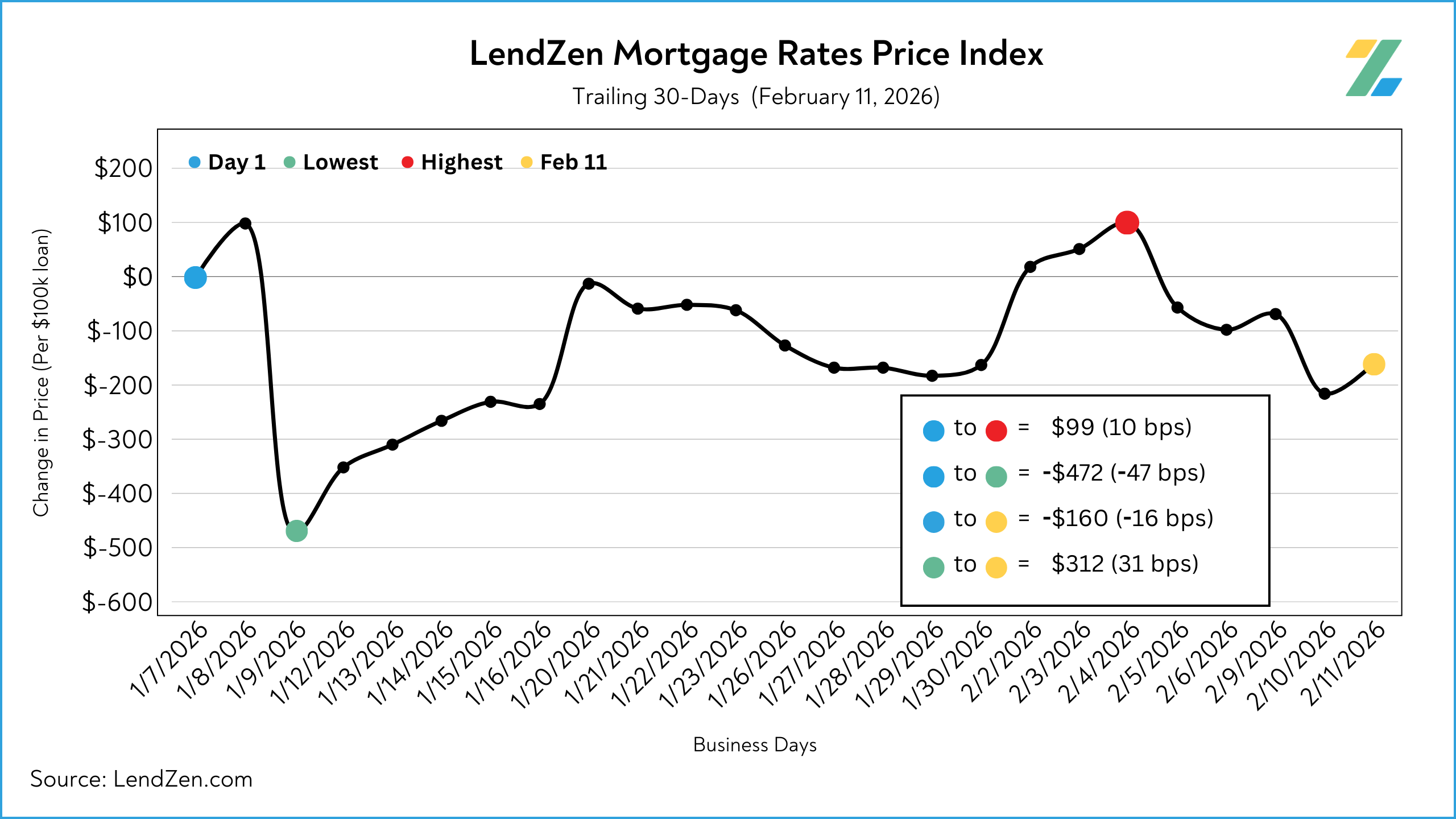 The LendZen Index tracks the price of mortgage rates across a spectrum of mortgage-backed securities.