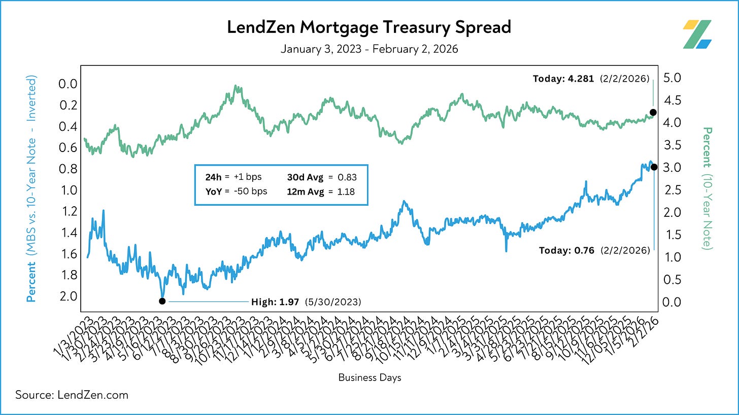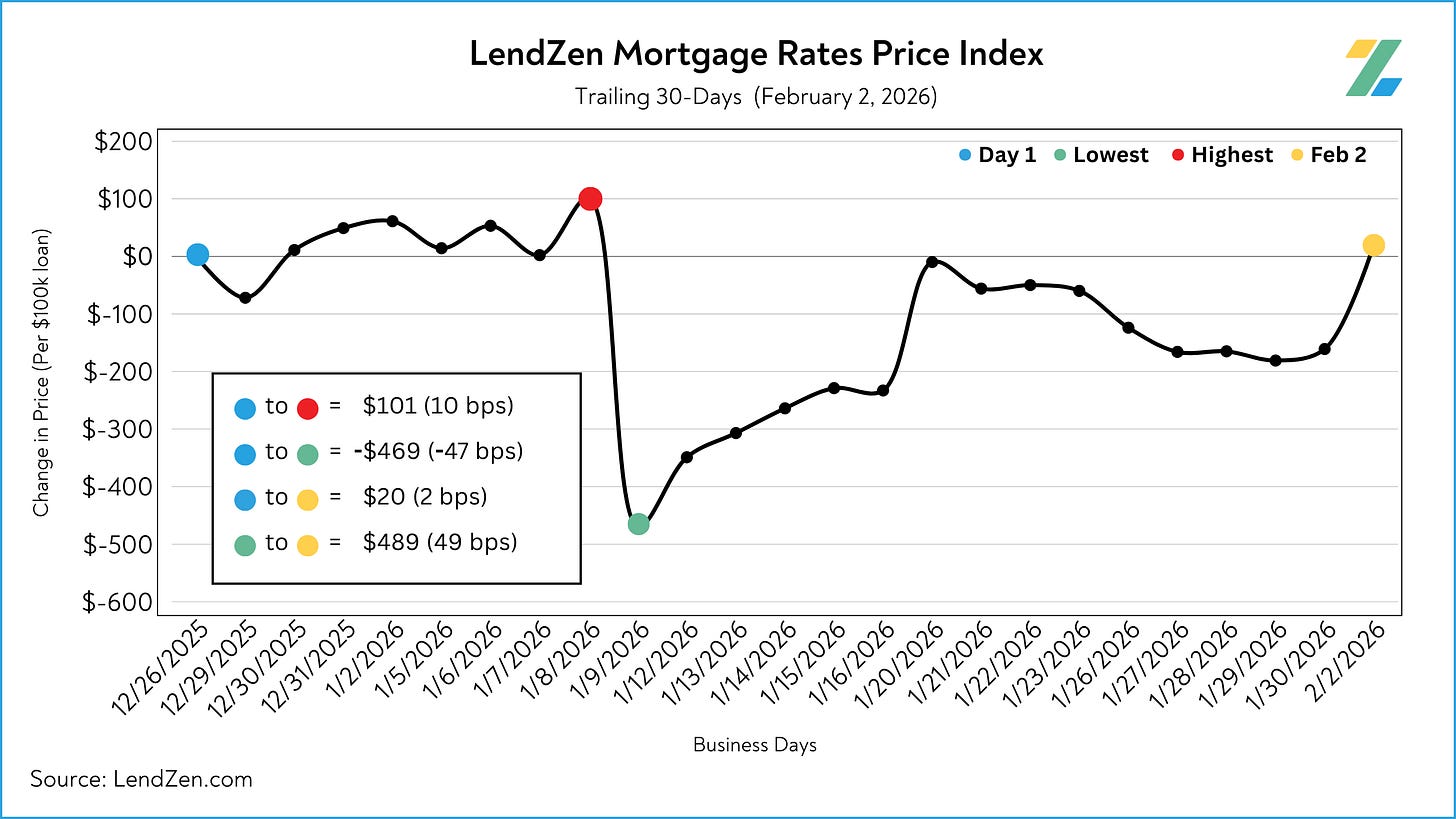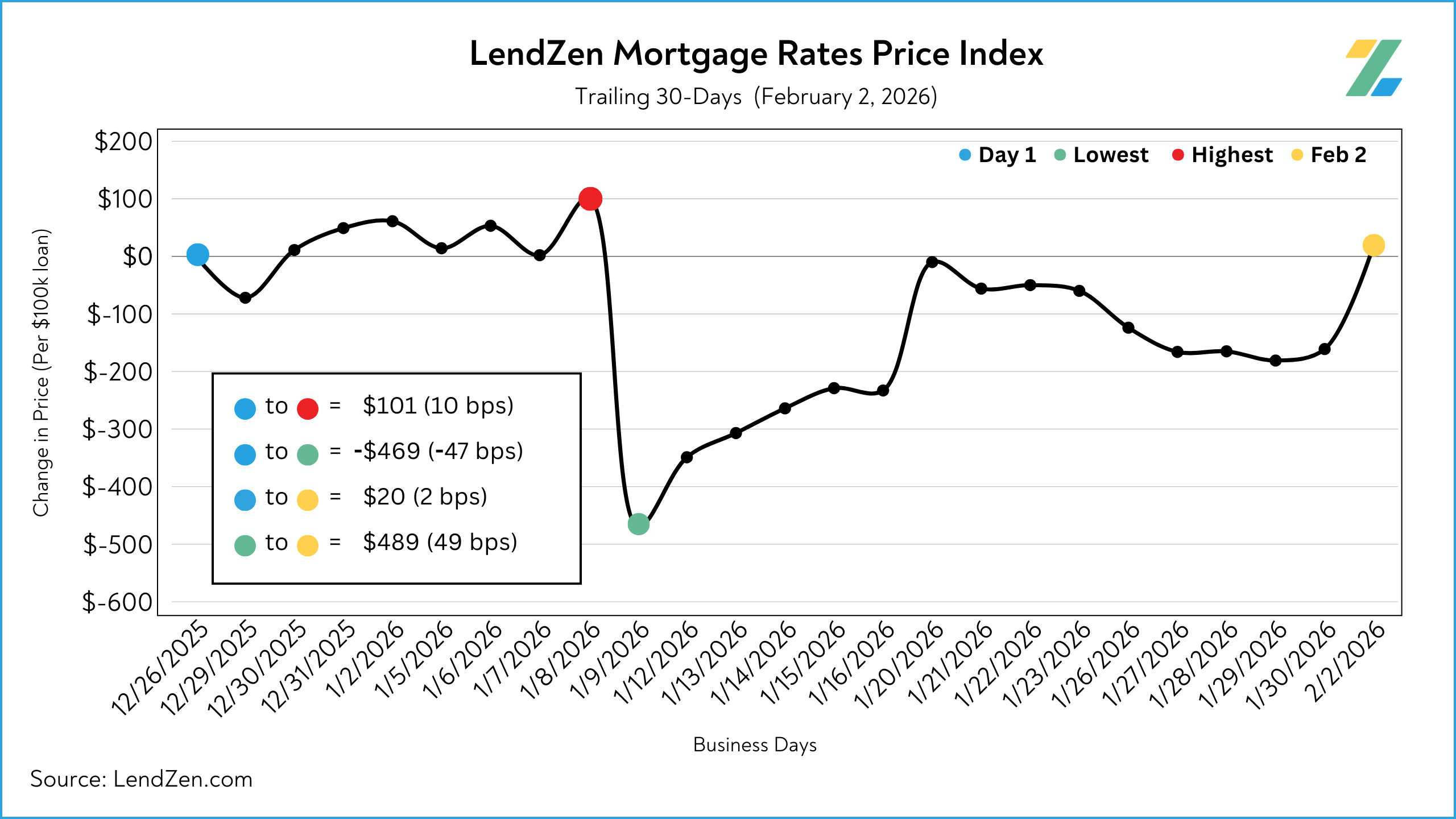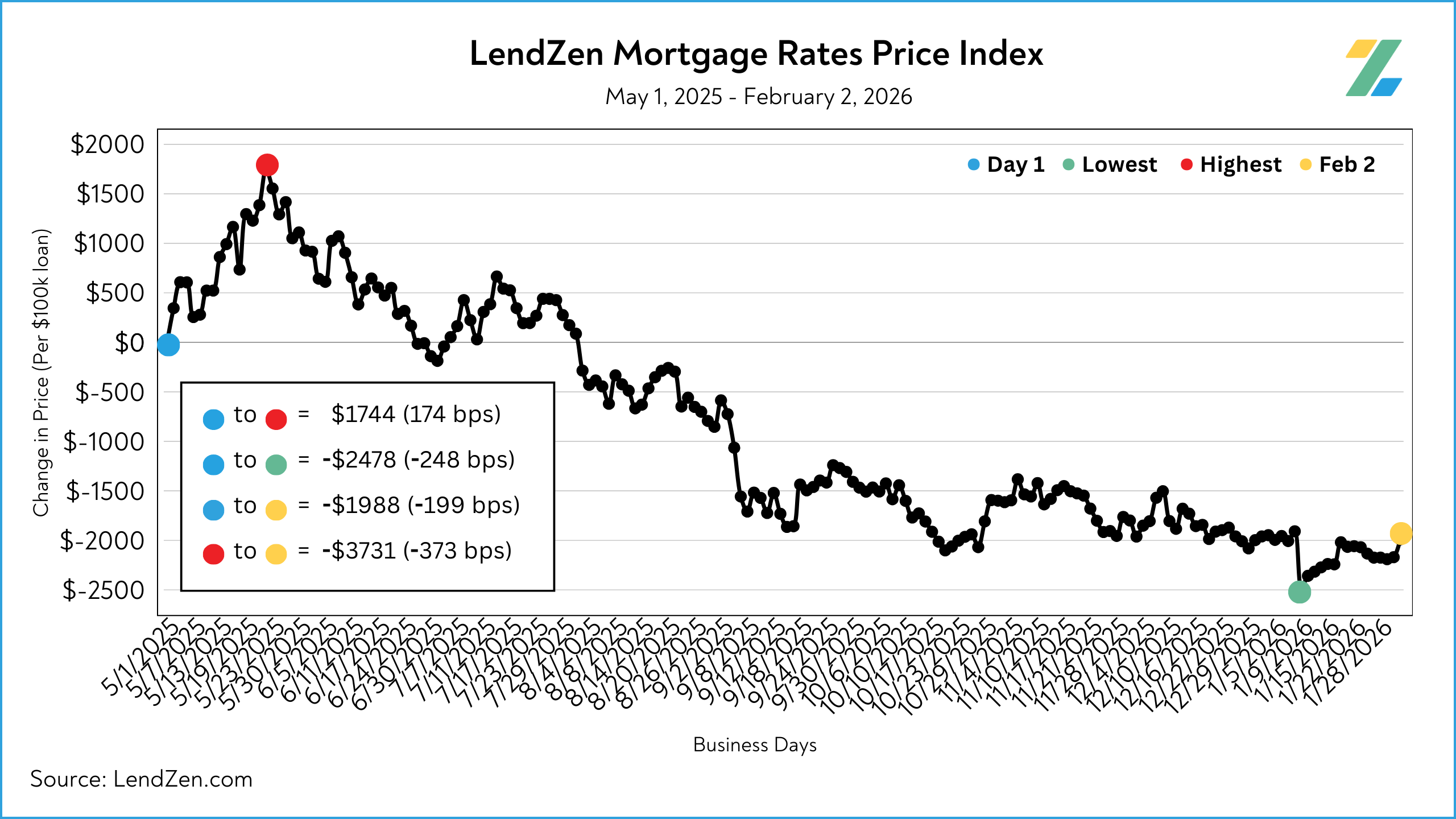 The LendZen Index tracks the price of mortgage rates across a spectrum of mortgage-backed securities.