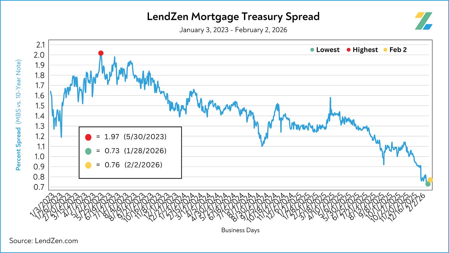 Meanwhile, the LendZen Index tracks the price of each mortgage rate across a spectrum of publicly traded MBS.