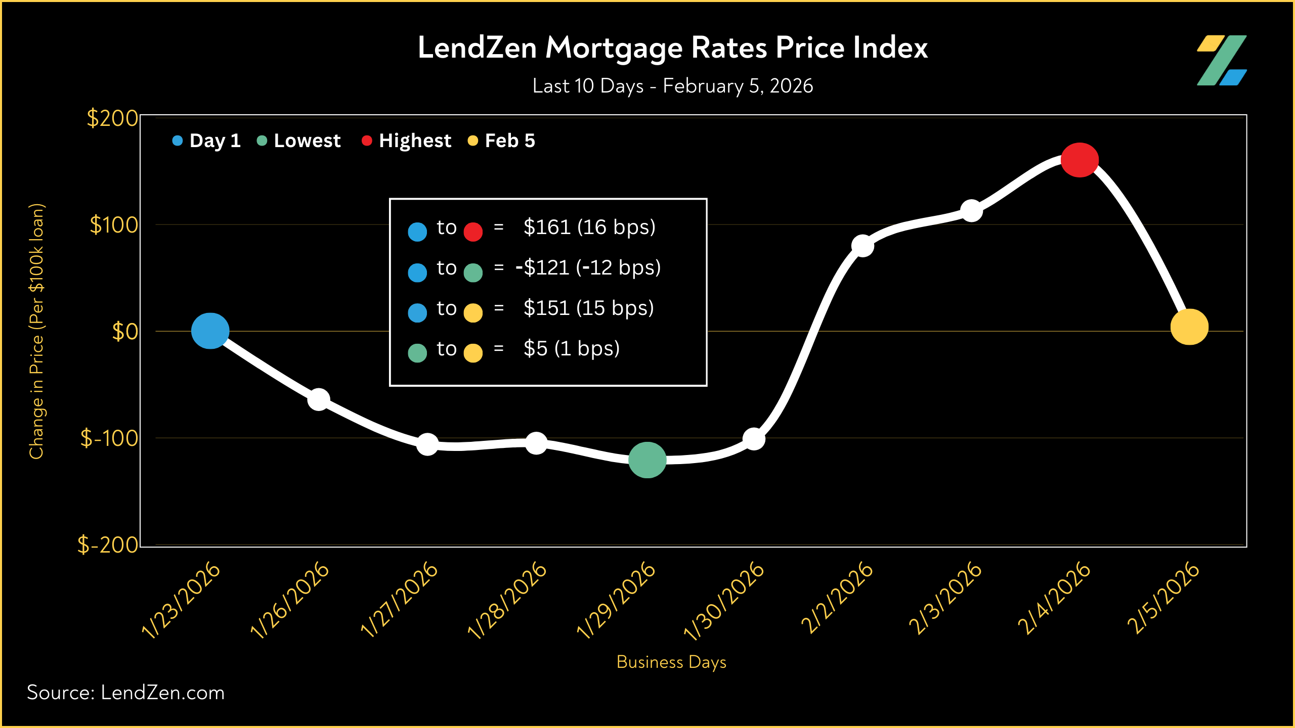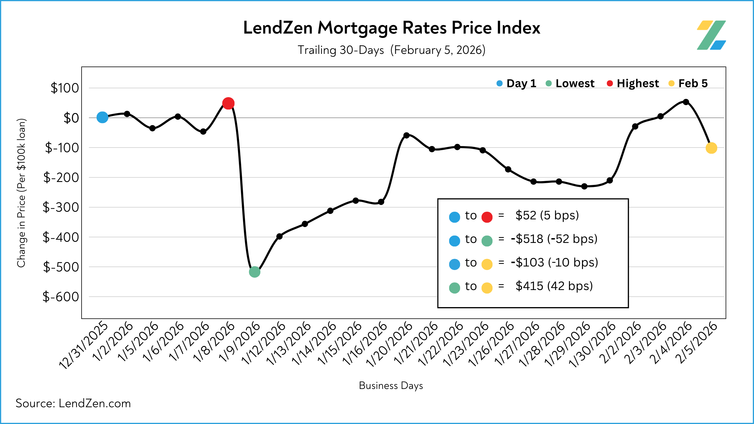 The LendZen Index tracks the price of mortgage rates across a spectrum of mortgage-backed securities.