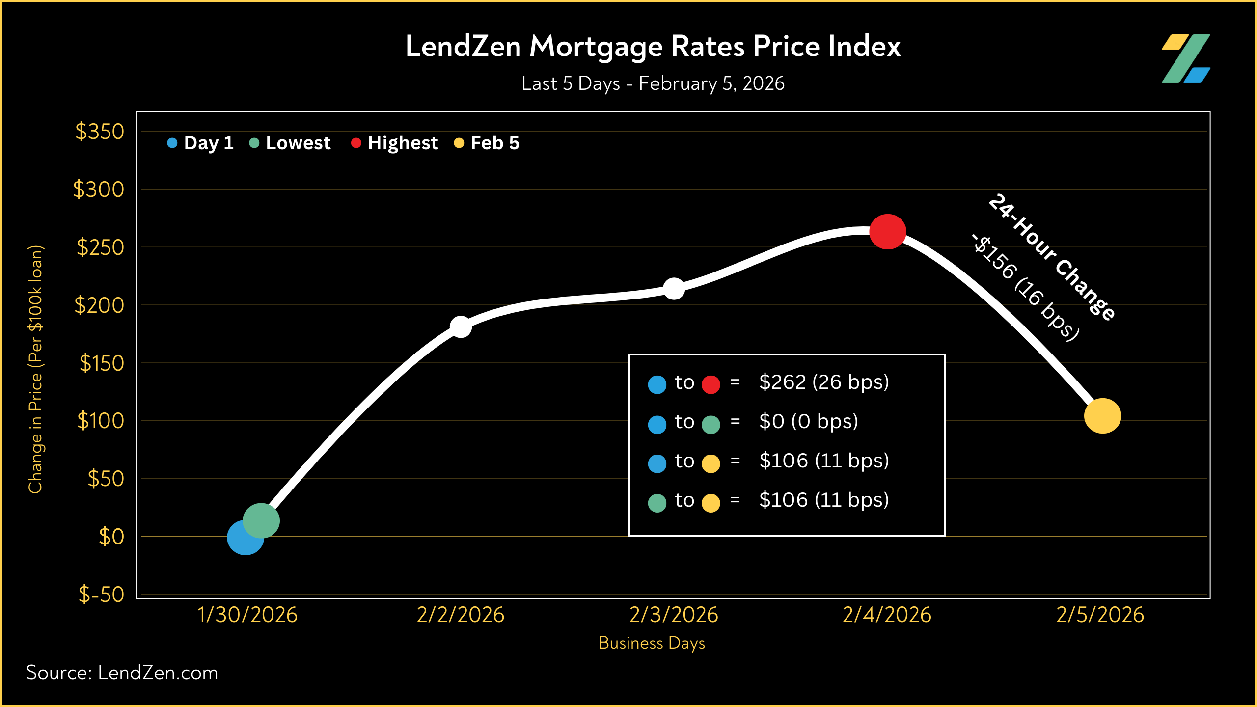 Meanwhile, the LendZen Index tracks the price of each mortgage rate across a spectrum of publicly traded MBS.
