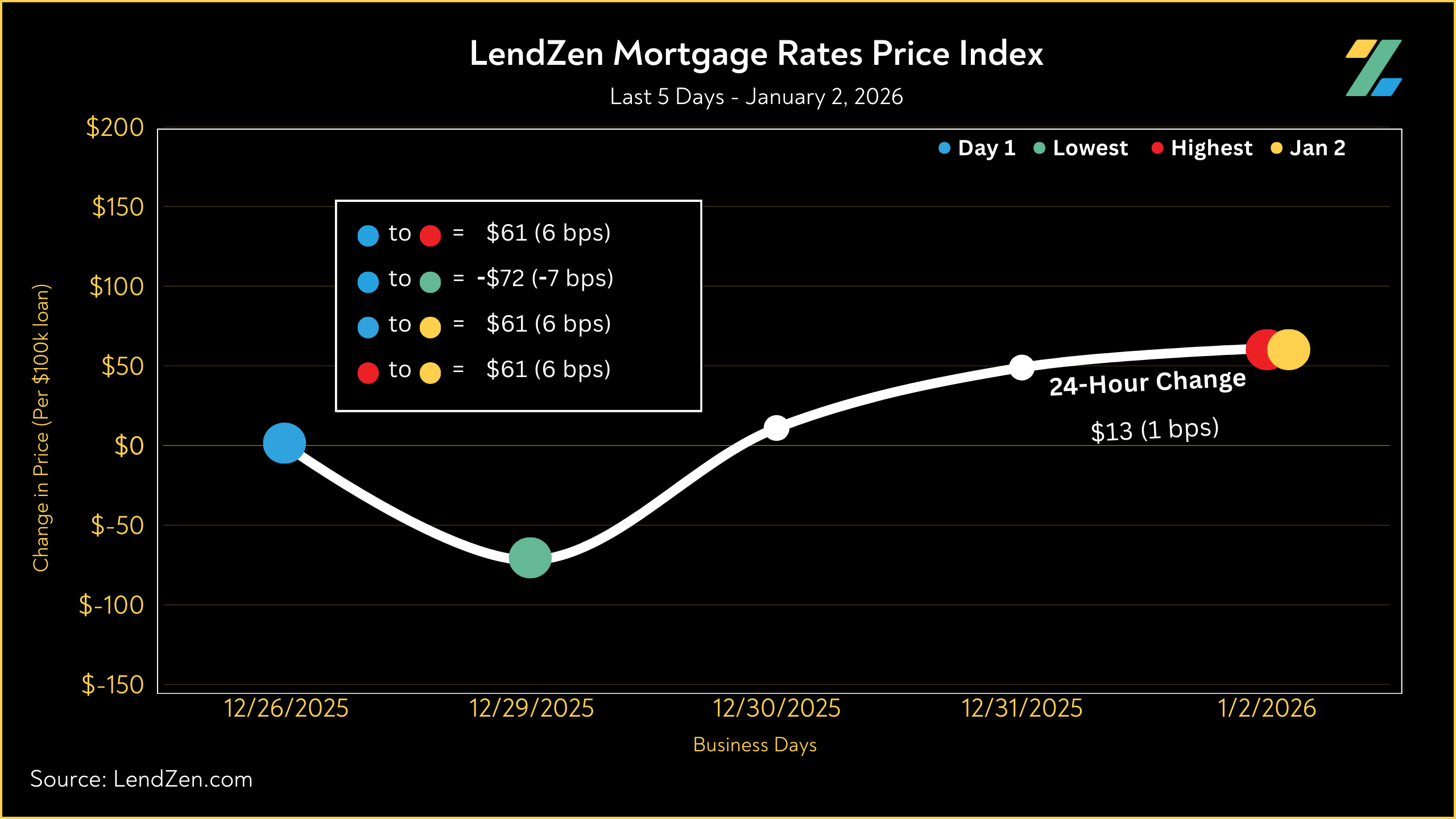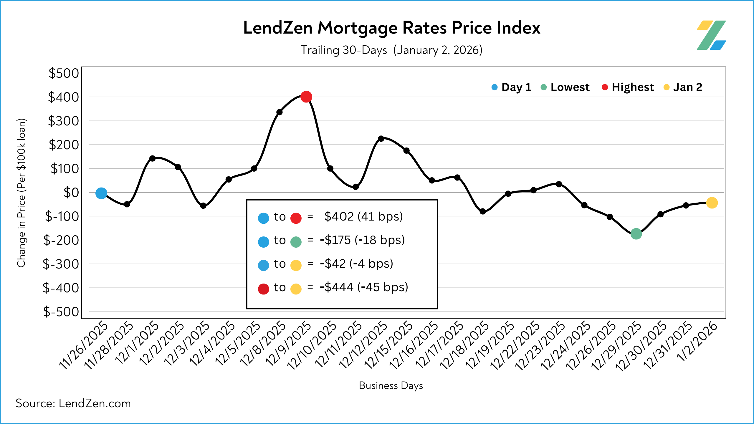 The LendZen Index tracks the price of mortgage rates across a spectrum of mortgage-backed securities.