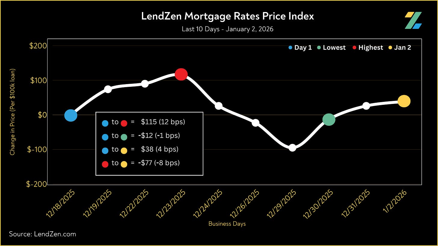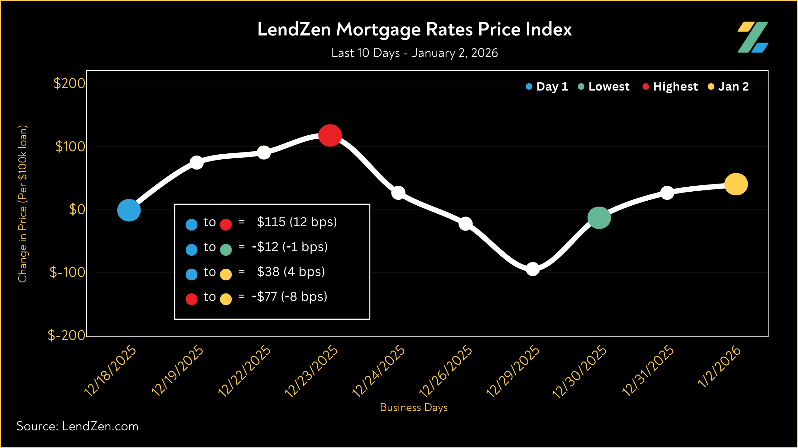 Since December 18, the price of mortgage rates increased 4 basis points, as seen in the 10-Day chart below.