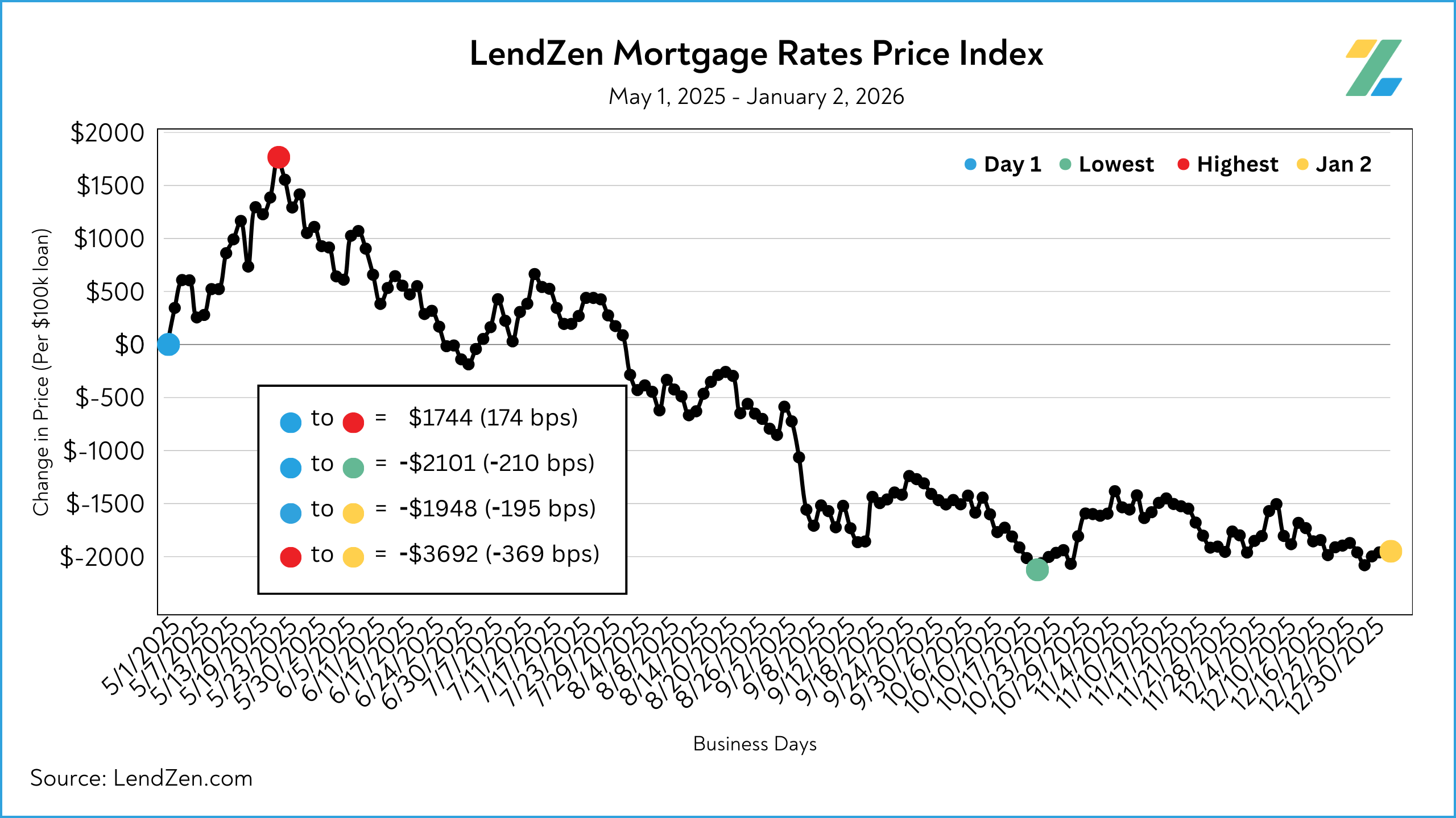 Since starting the index on May 1, 2025, mortgage rates are now 195 bps less expensive.