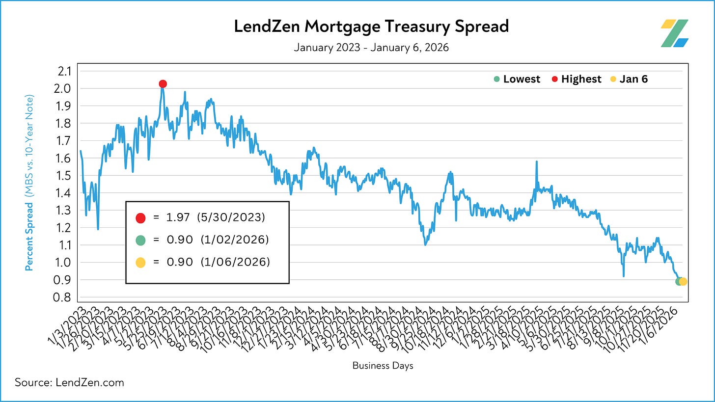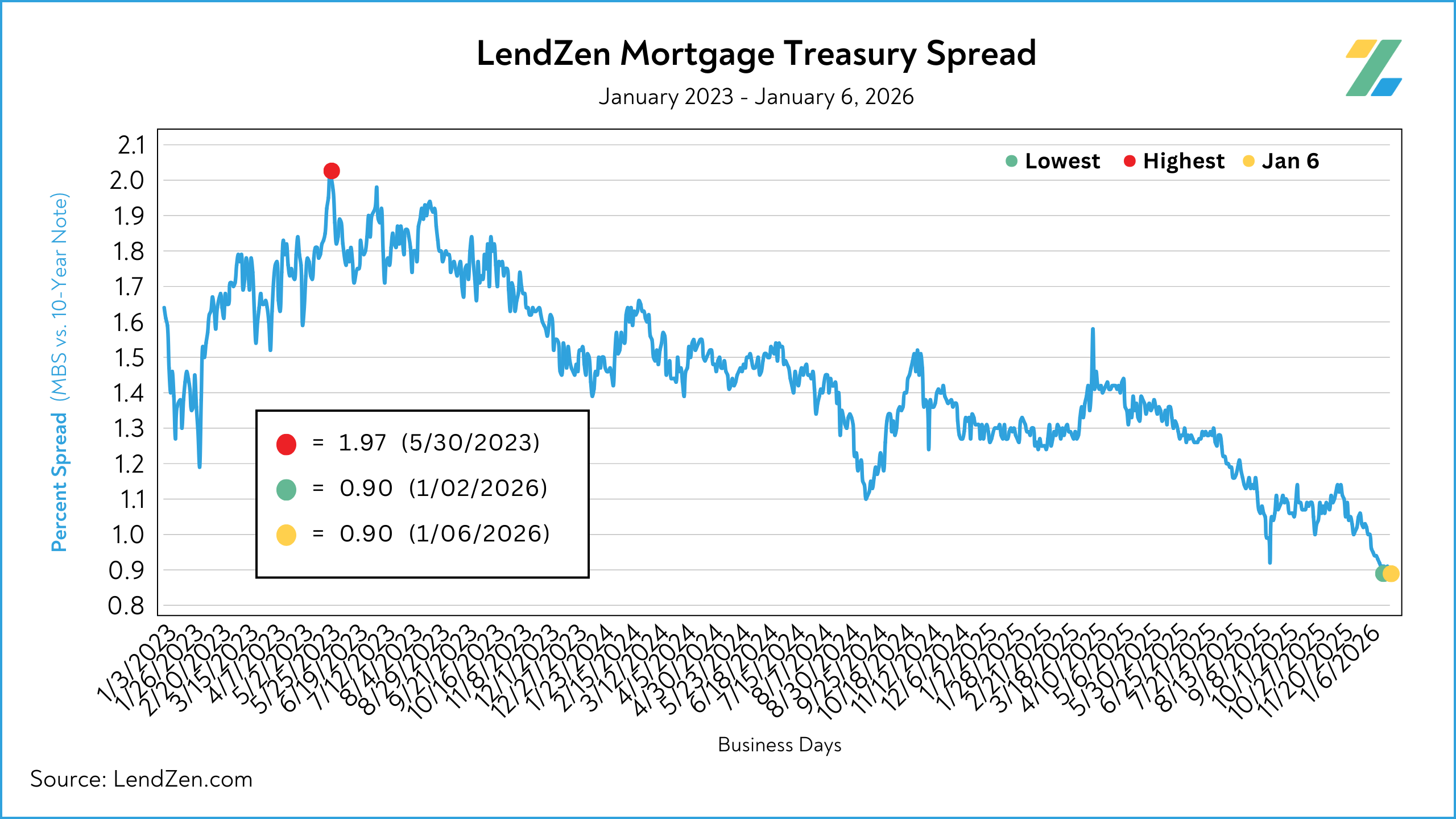 The LendZen Mortgage Treasury Spread (LMTS) uses actual bond yields to create a historically consistent, and reliable, data set.