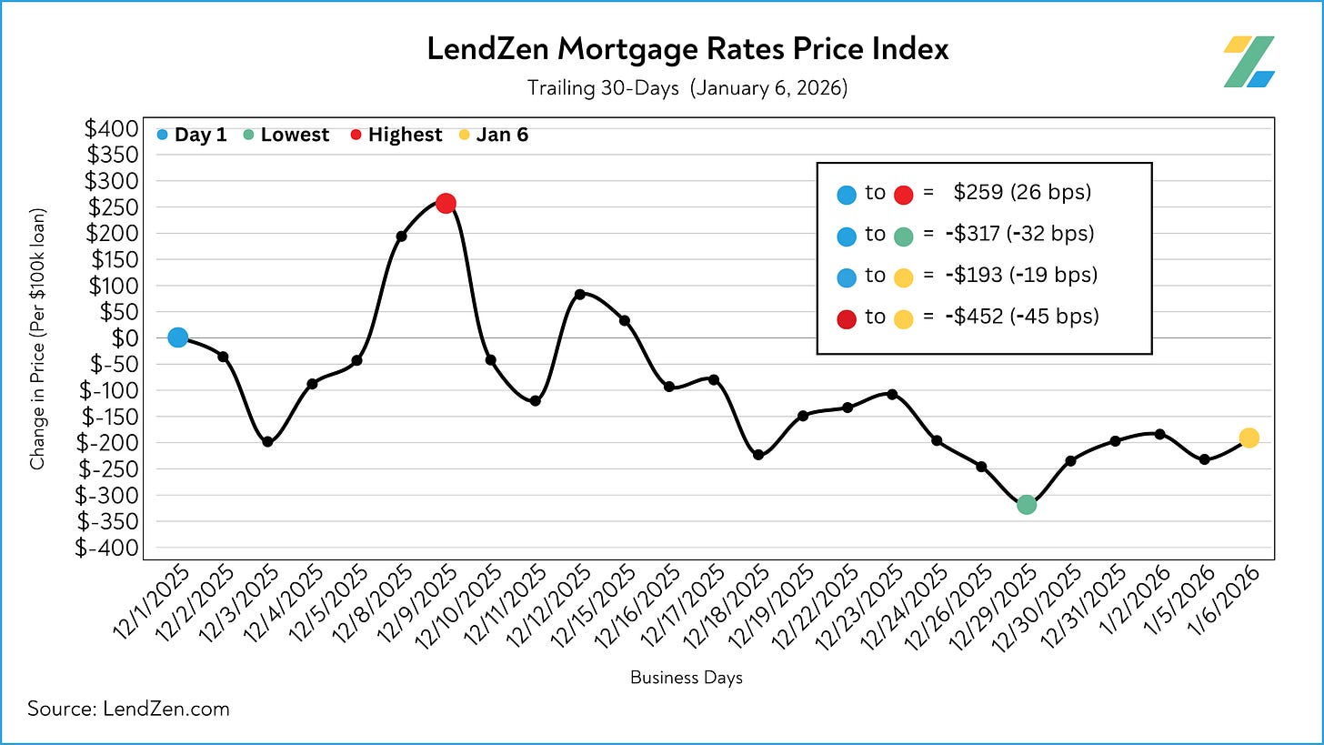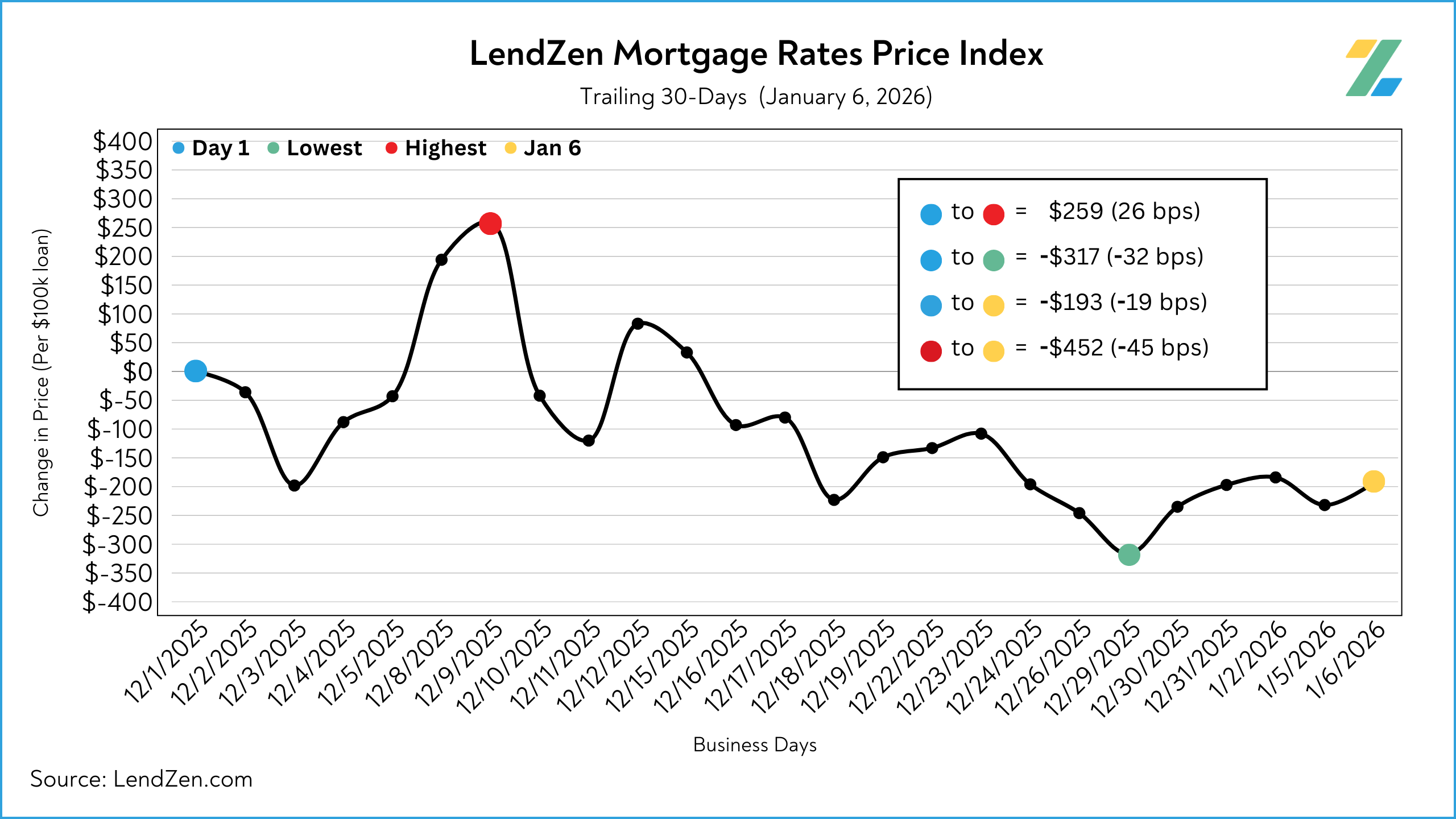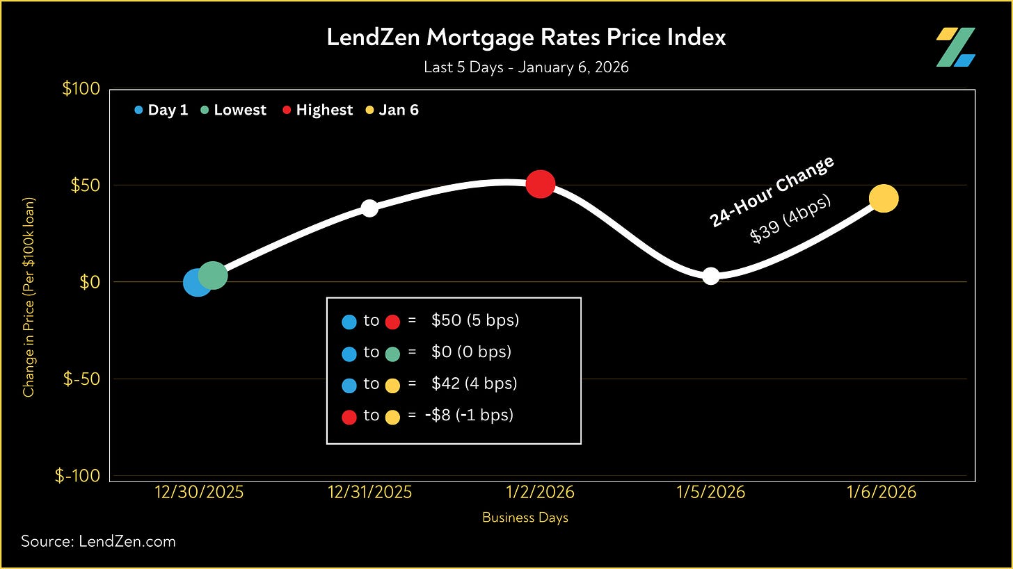 Since December 22, the price of mortgage rates decreased 6 basis points, as seen in the 10-Day chart below.