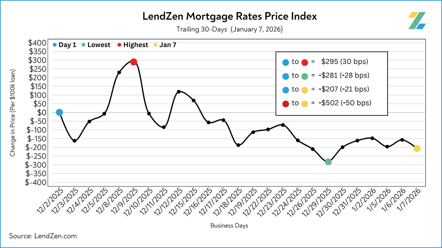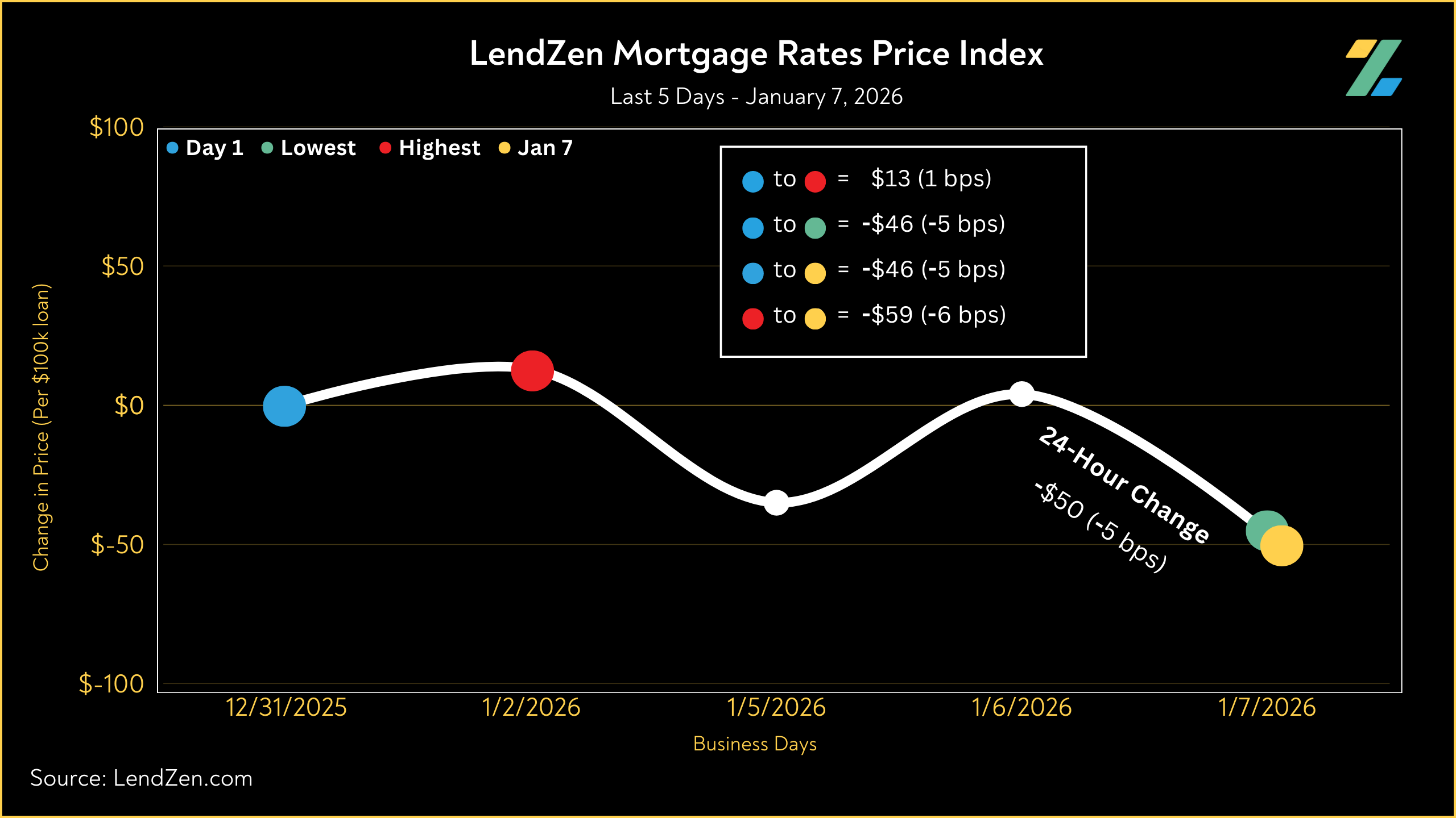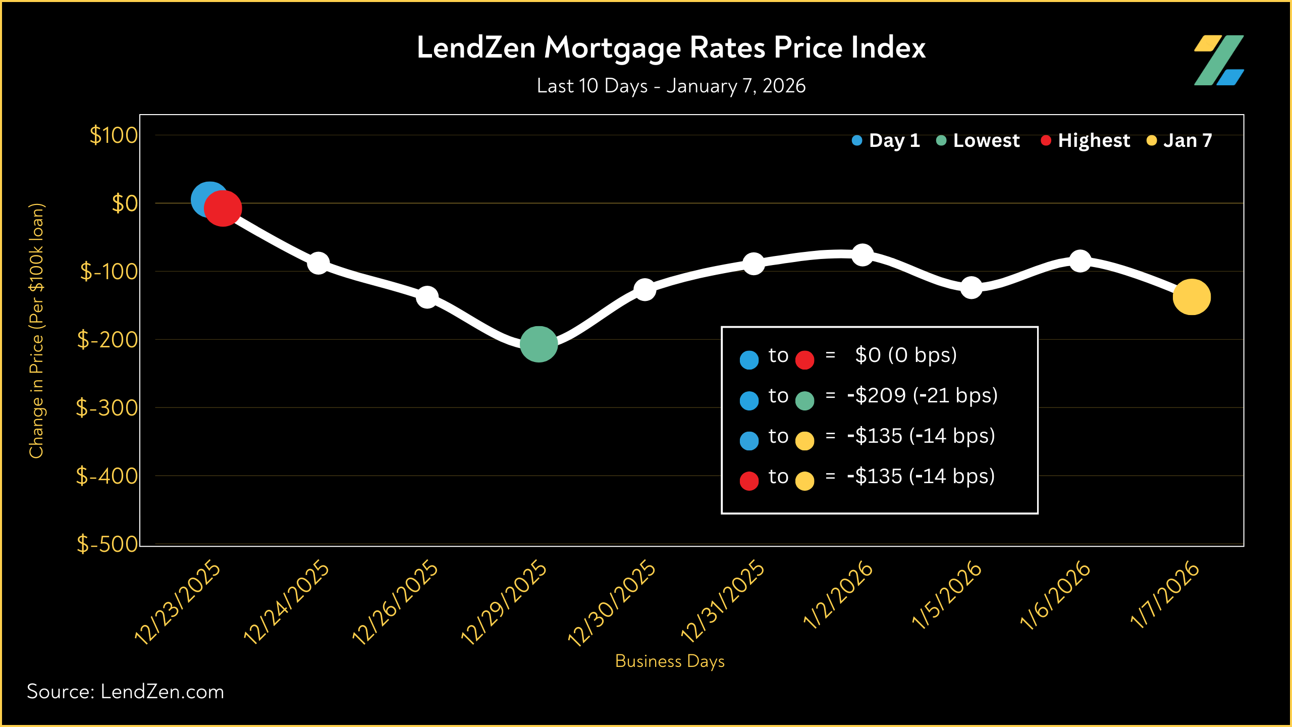 Since December 23, the price of mortgage rates decreased 14 basis points, as seen in the 10-Day chart below.