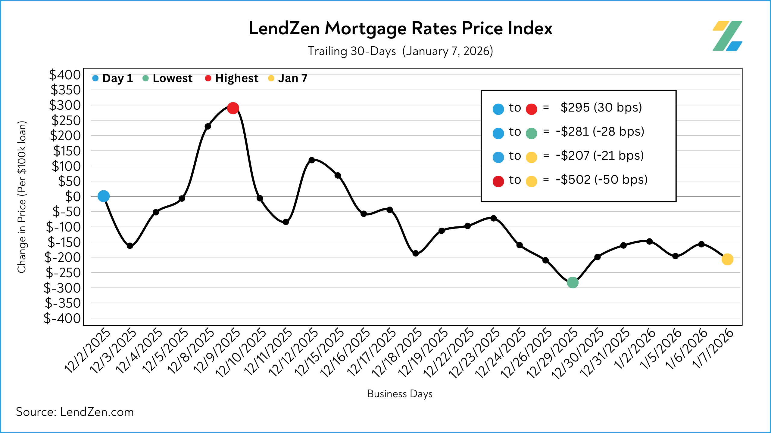 The LendZen Index tracks the price of mortgage rates across a spectrum of mortgage-backed securities.