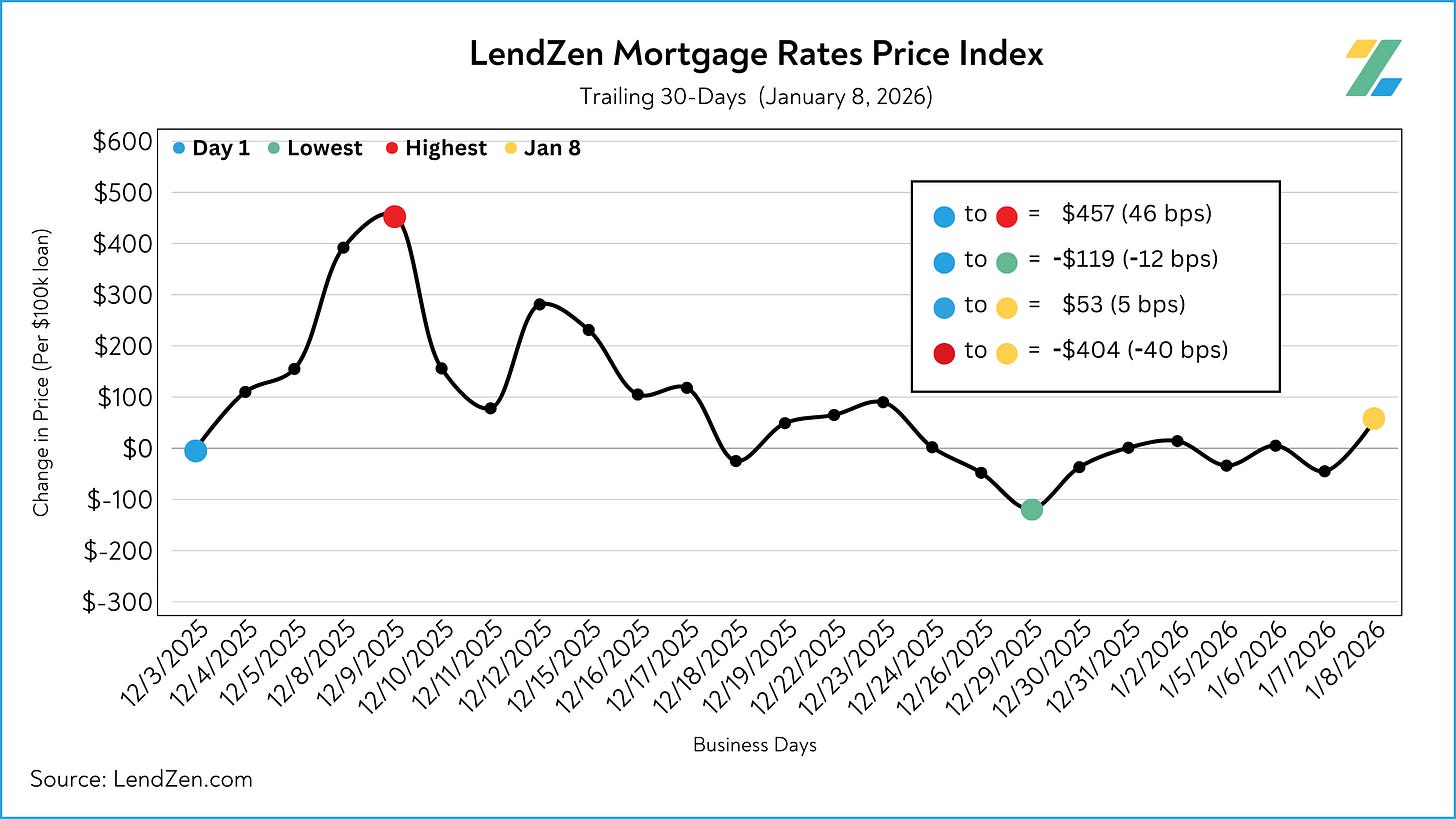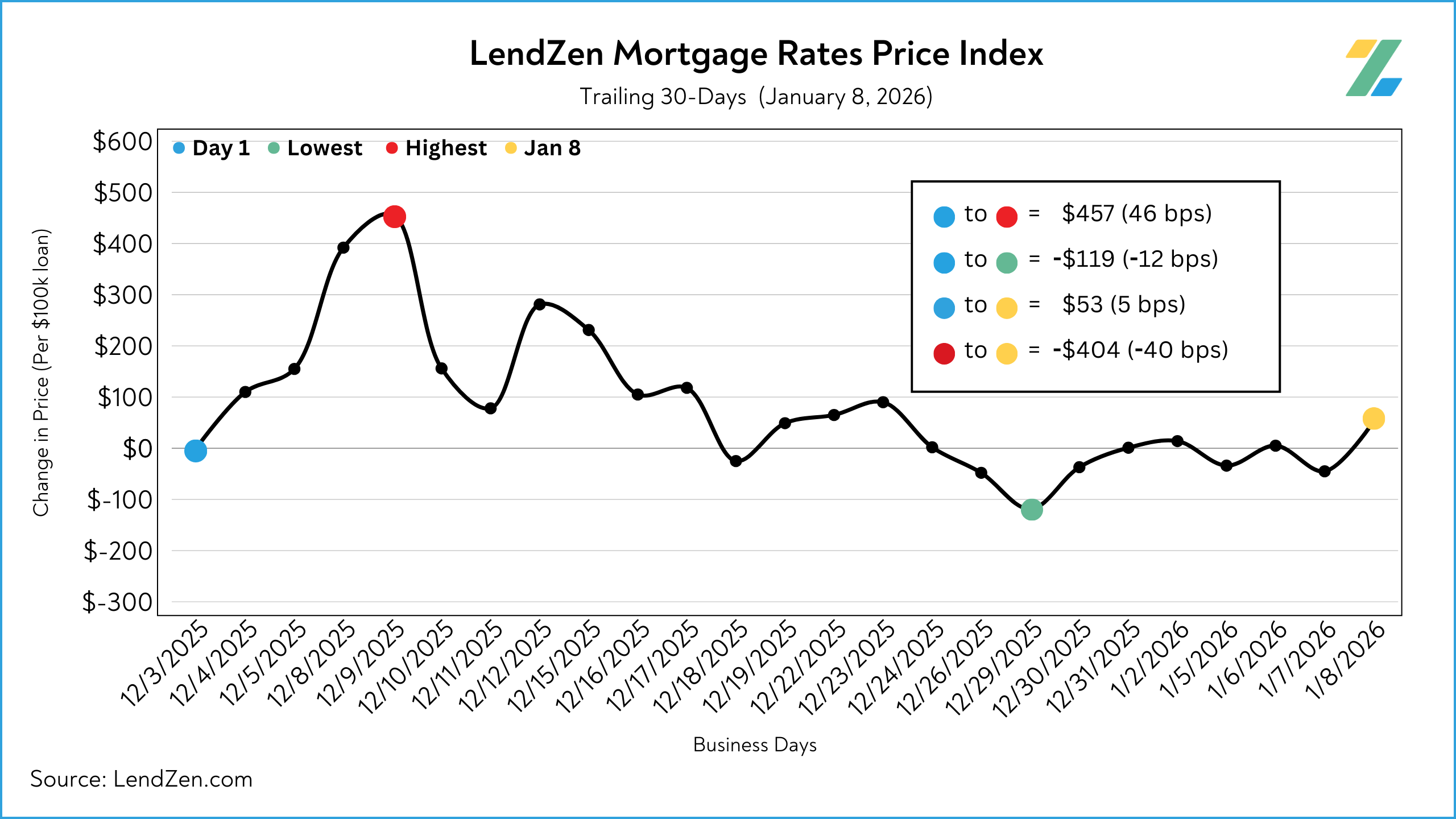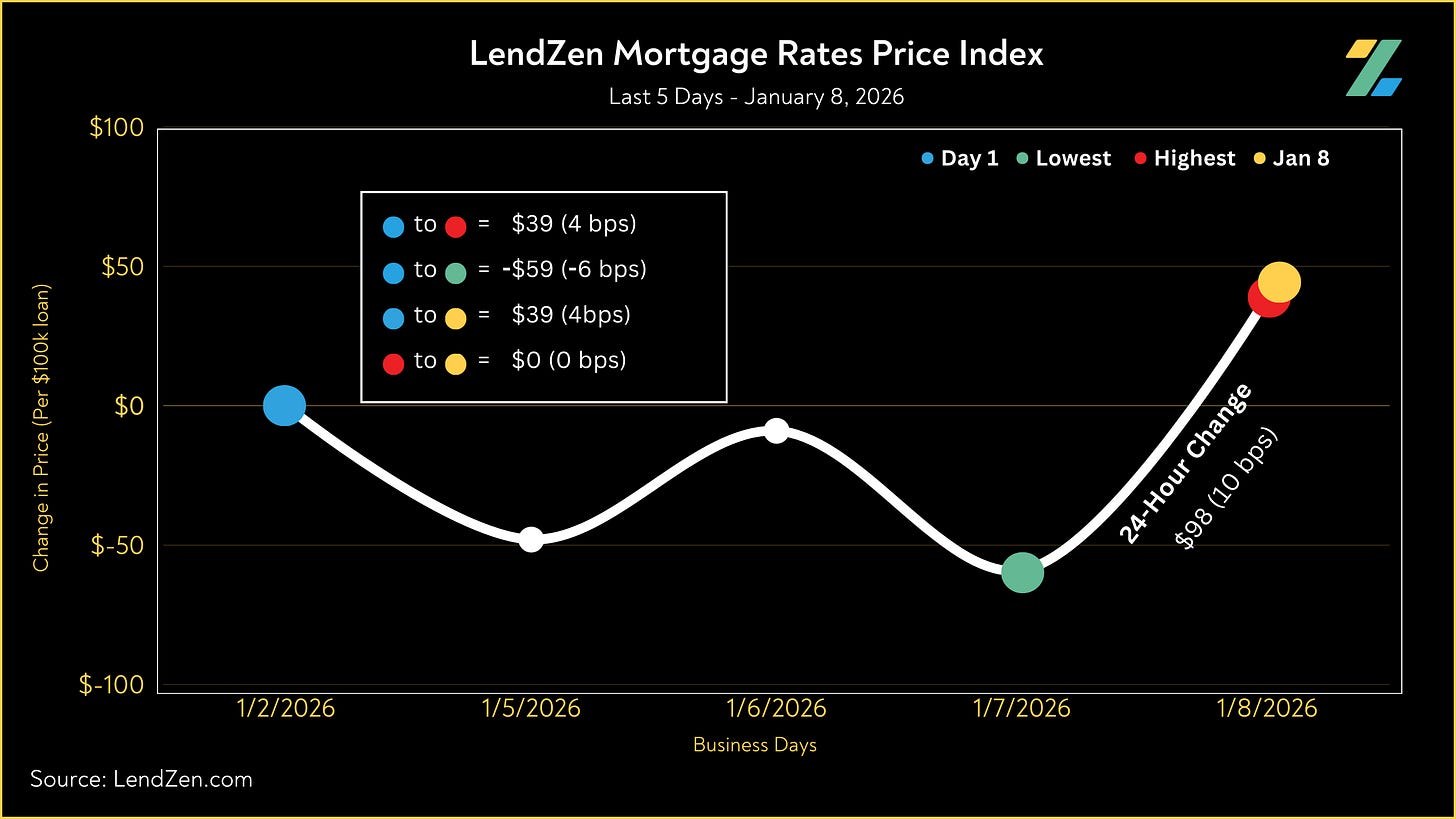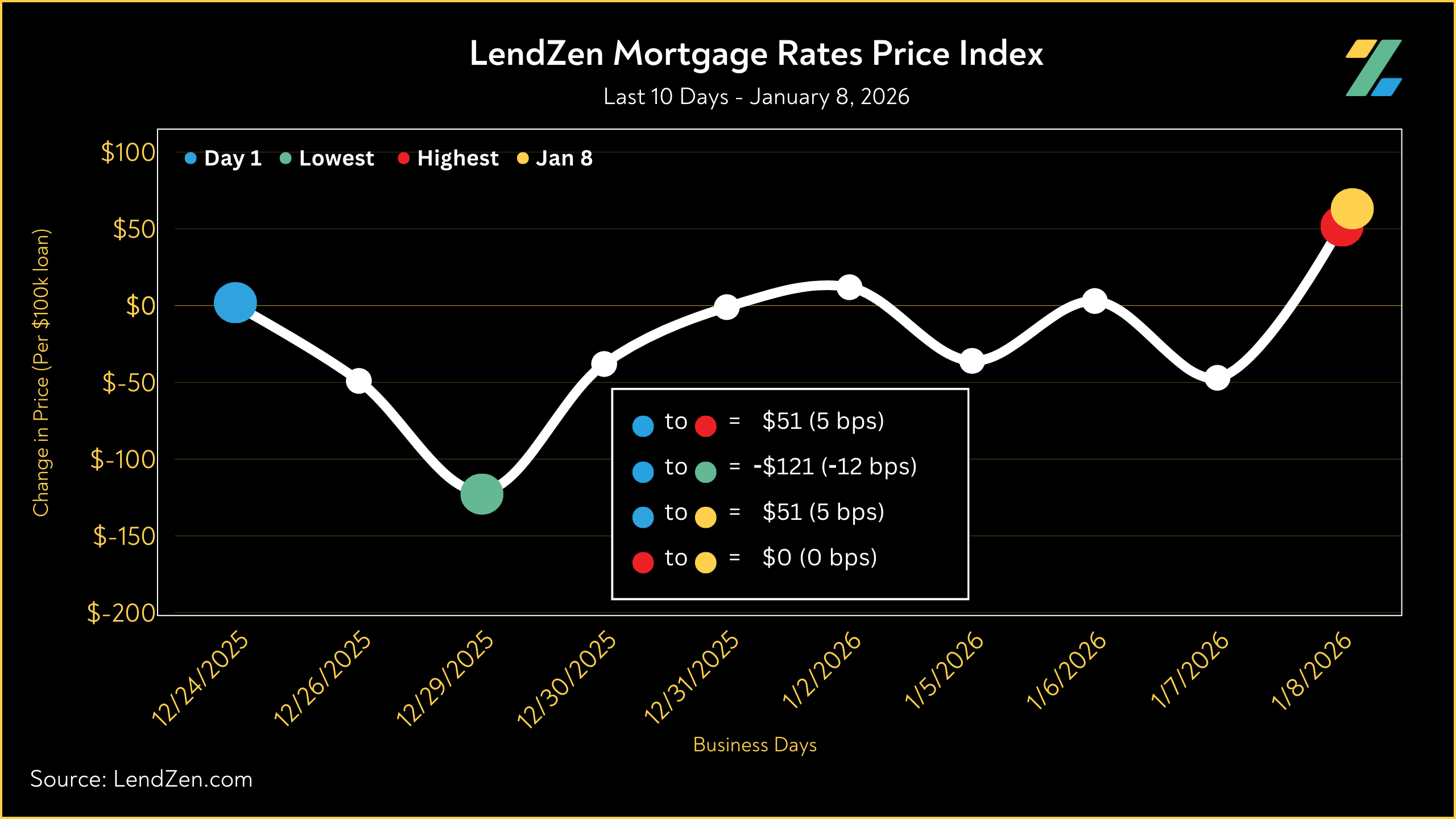 Since December 24, the price of mortgage rates increased 5 basis points, as seen in the 10-Day chart below.