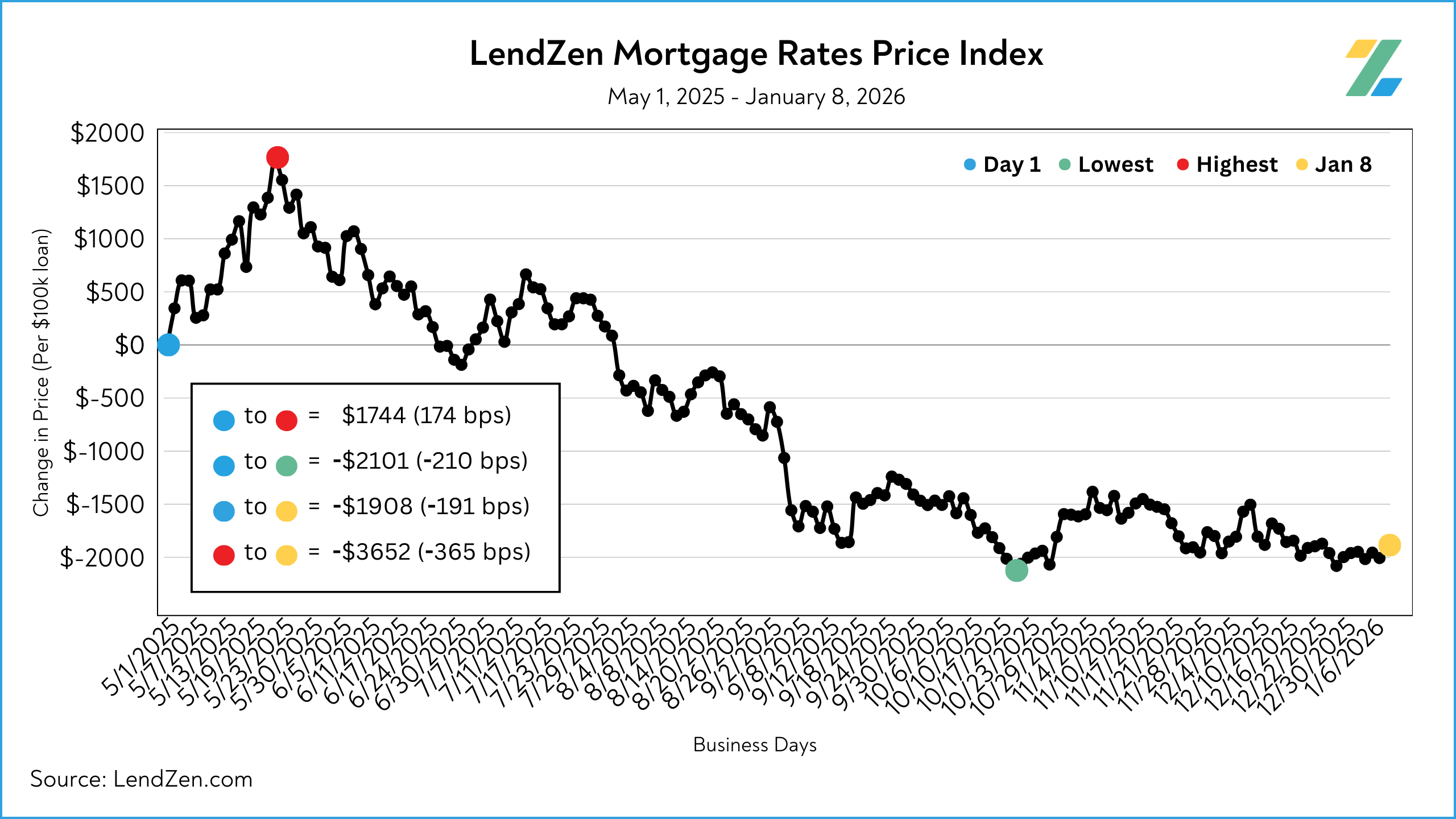 The LendZen Index tracks the price of mortgage rates across a spectrum of mortgage-backed securities.