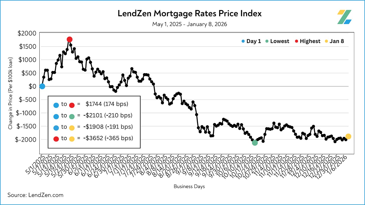 Since starting the index on May 1, 2025, mortgage rates are now 191 bps less expensive.