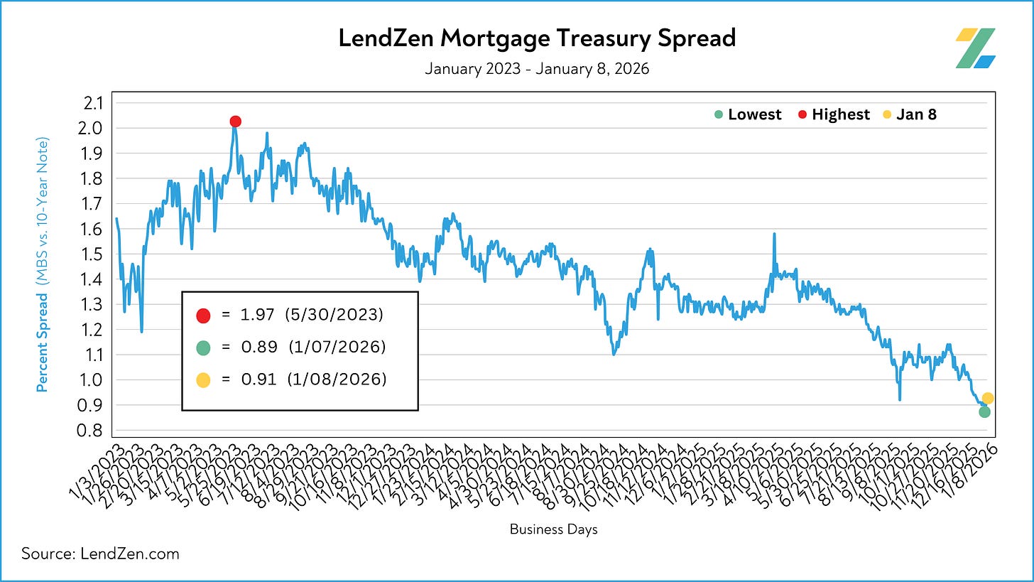The LendZen Mortgage Treasury Spread (LMTS) uses actual bond yields to create a historically consistent, and reliable, data set.