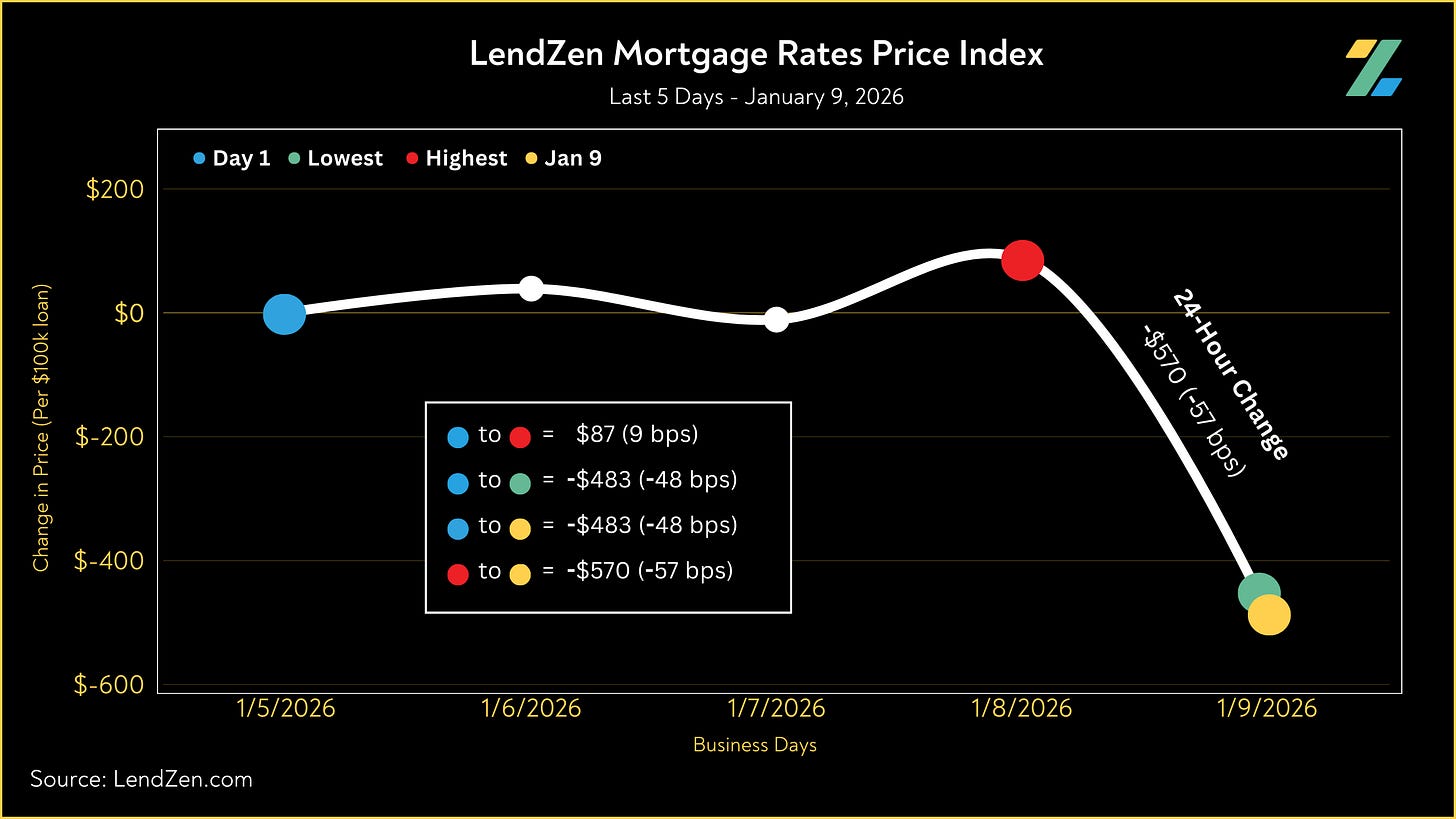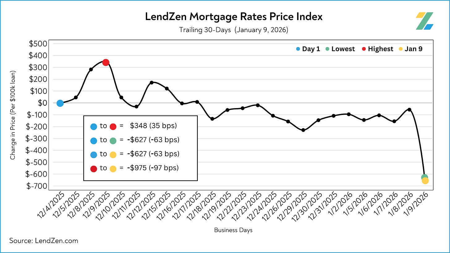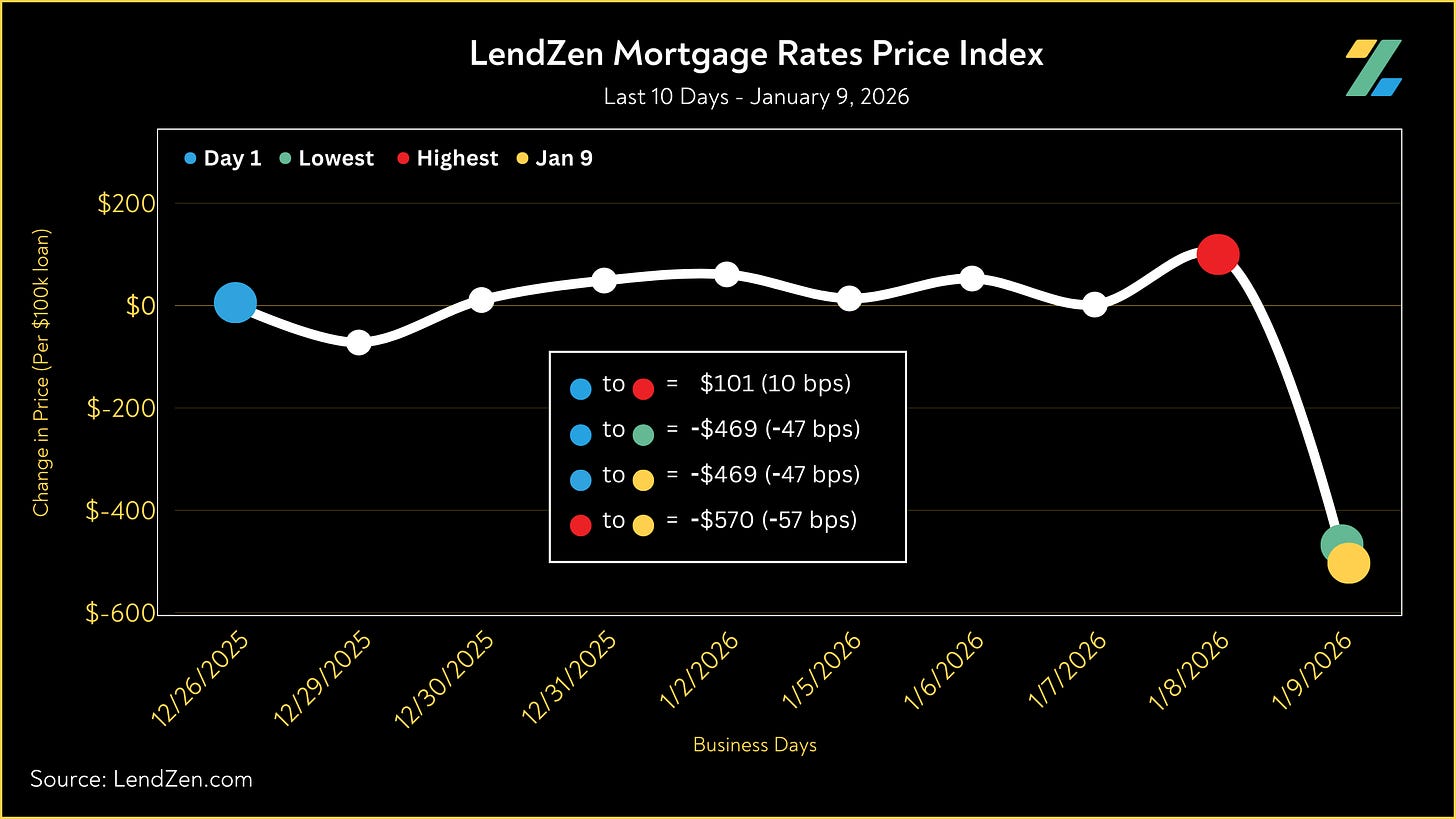 Since December 26, the price of mortgage rates decreased 47 basis points, as seen in the 10-Day chart below.