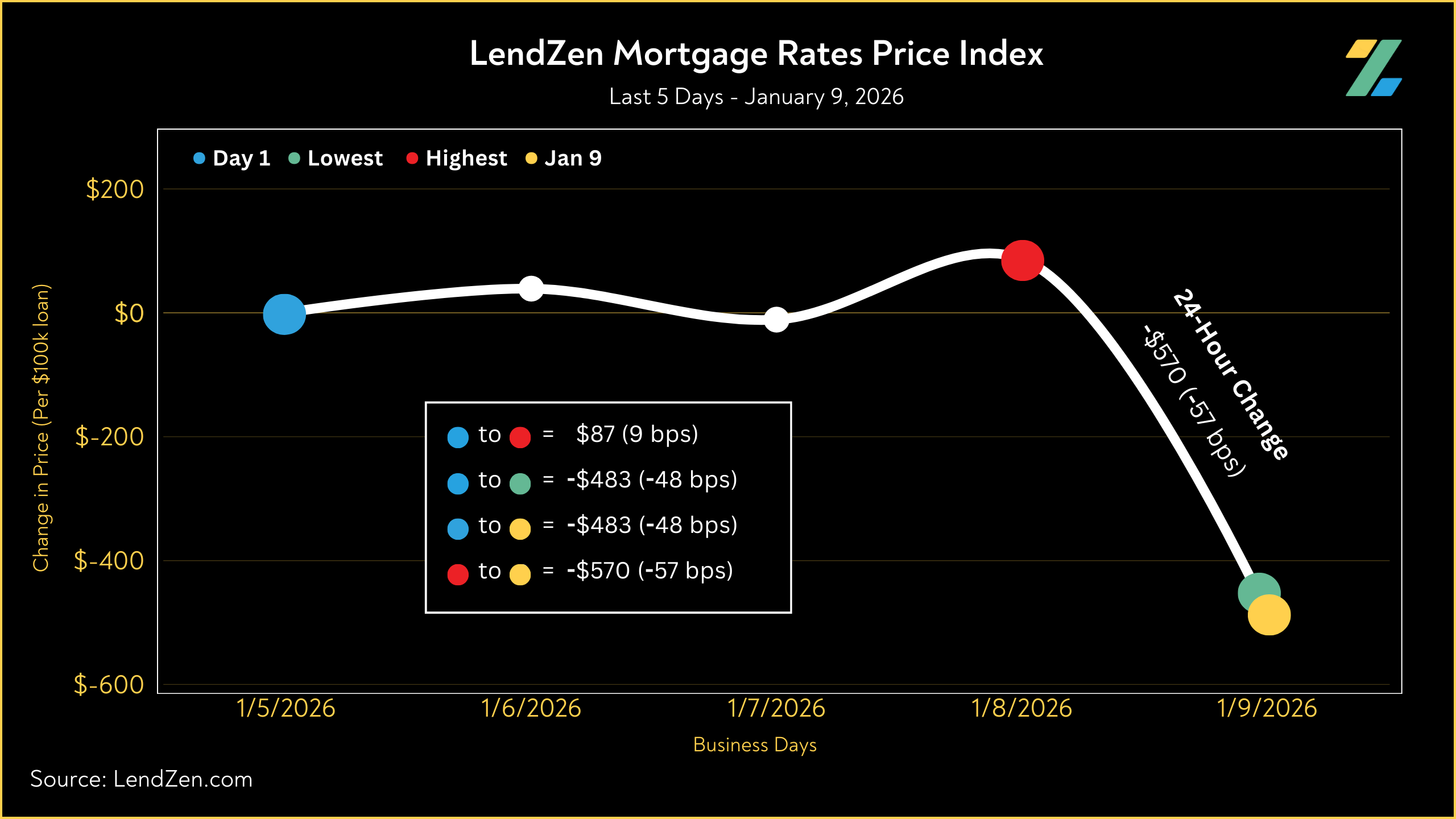 Meanwhile, the LendZen Index tracks the price of each mortgage rate across a spectrum of publicly traded MBS.