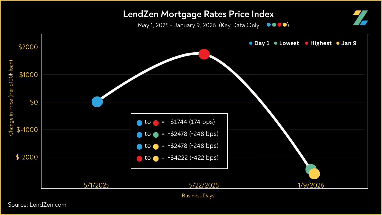 The LendZen Index tracks the price of mortgage rates across a spectrum of mortgage-backed securities.