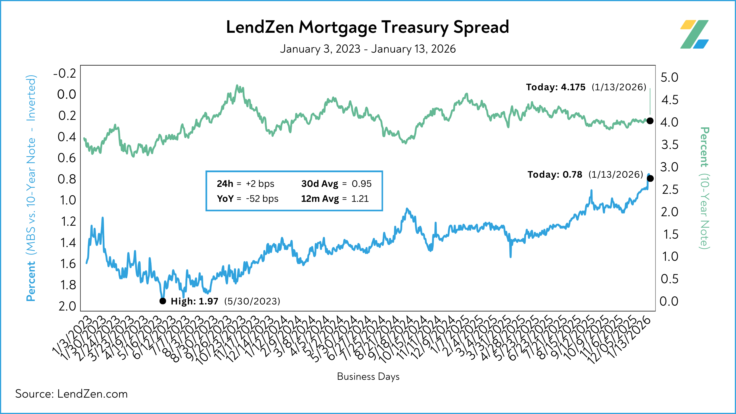 The LendZen Mortgage Treasury Spread (LMTS) uses actual bond yields to create a historically consistent, and reliable, data set.