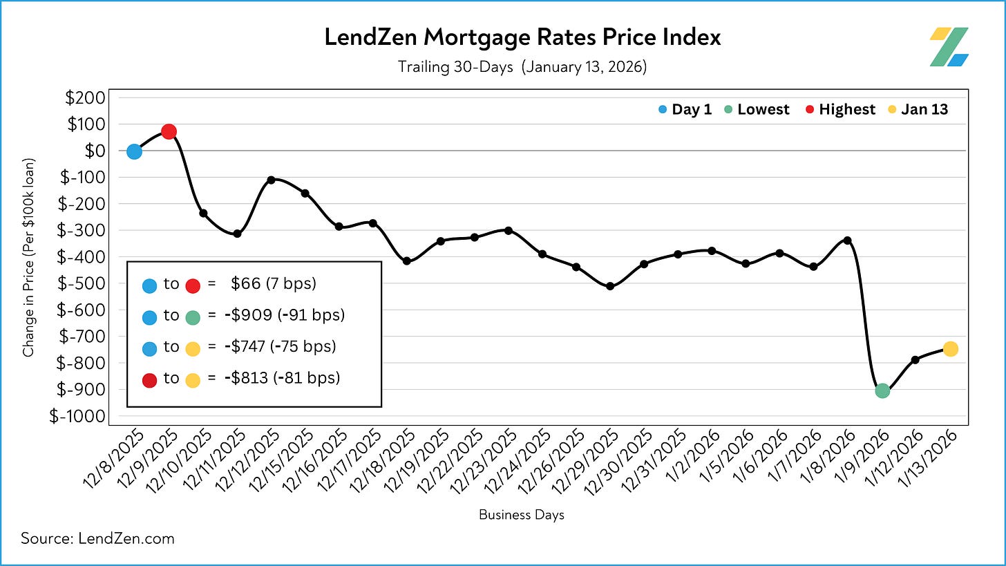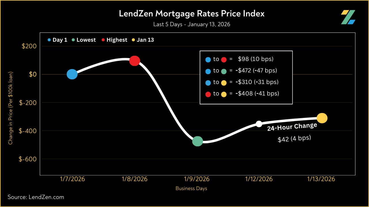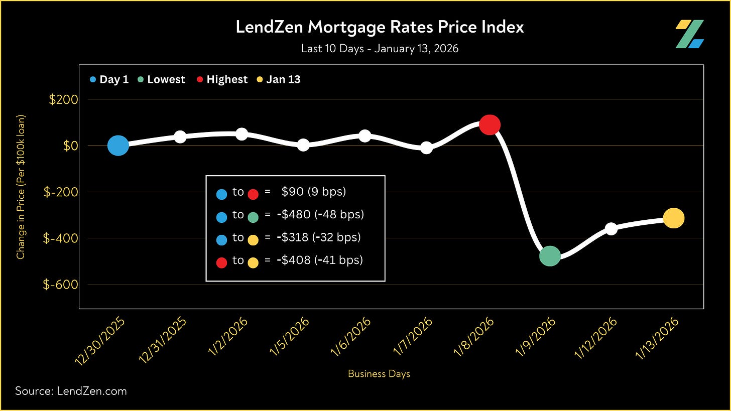 Since December 30, the price of mortgage rates decreased 32 basis points, as seen in the 10-Day chart below.