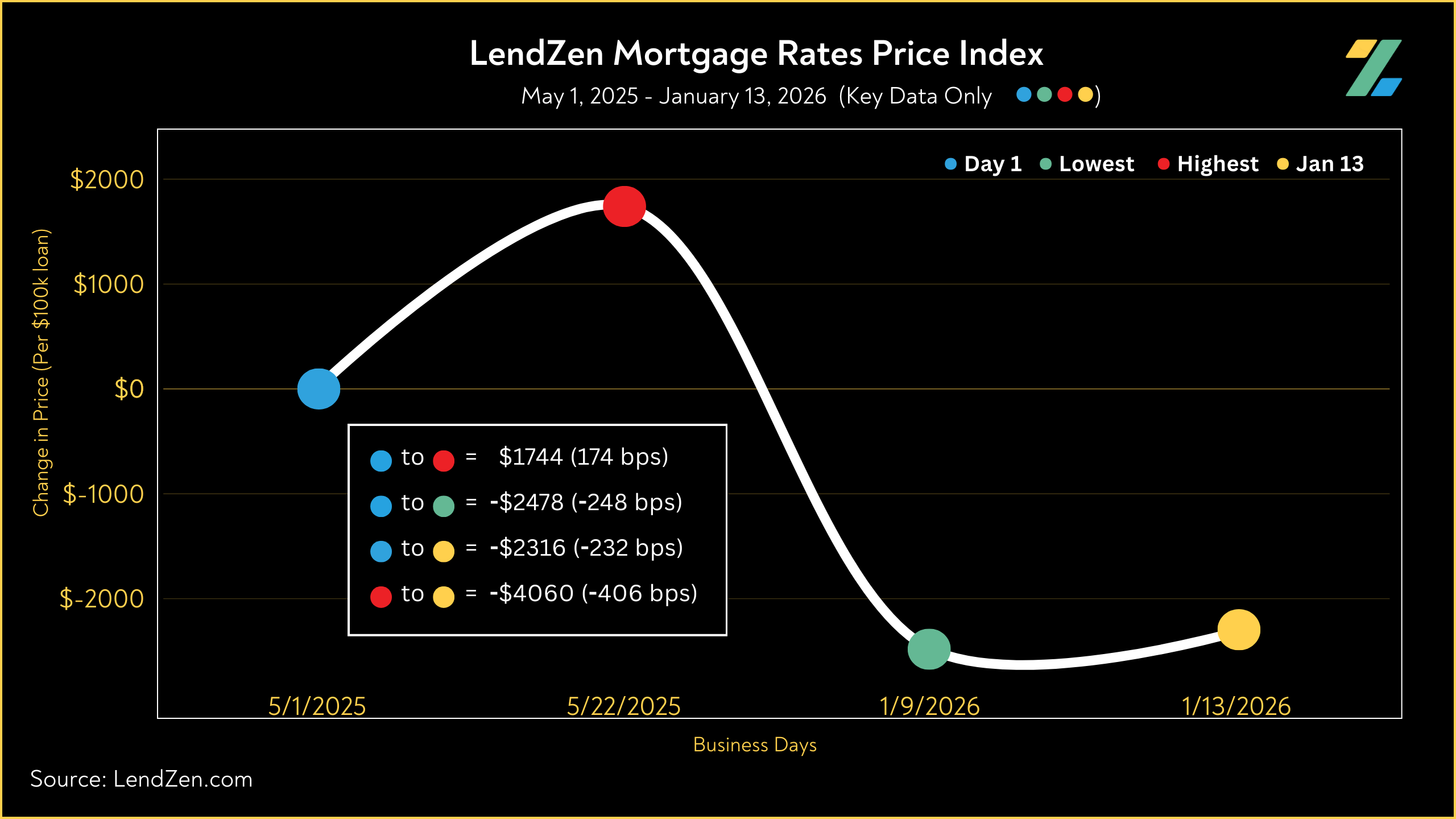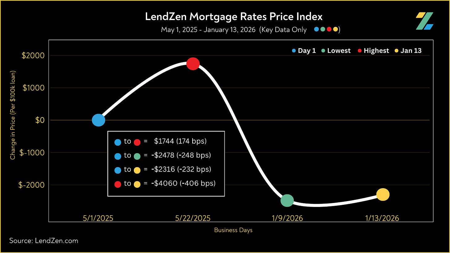 The LendZen Index tracks the price of mortgage rates across a spectrum of mortgage-backed securities.