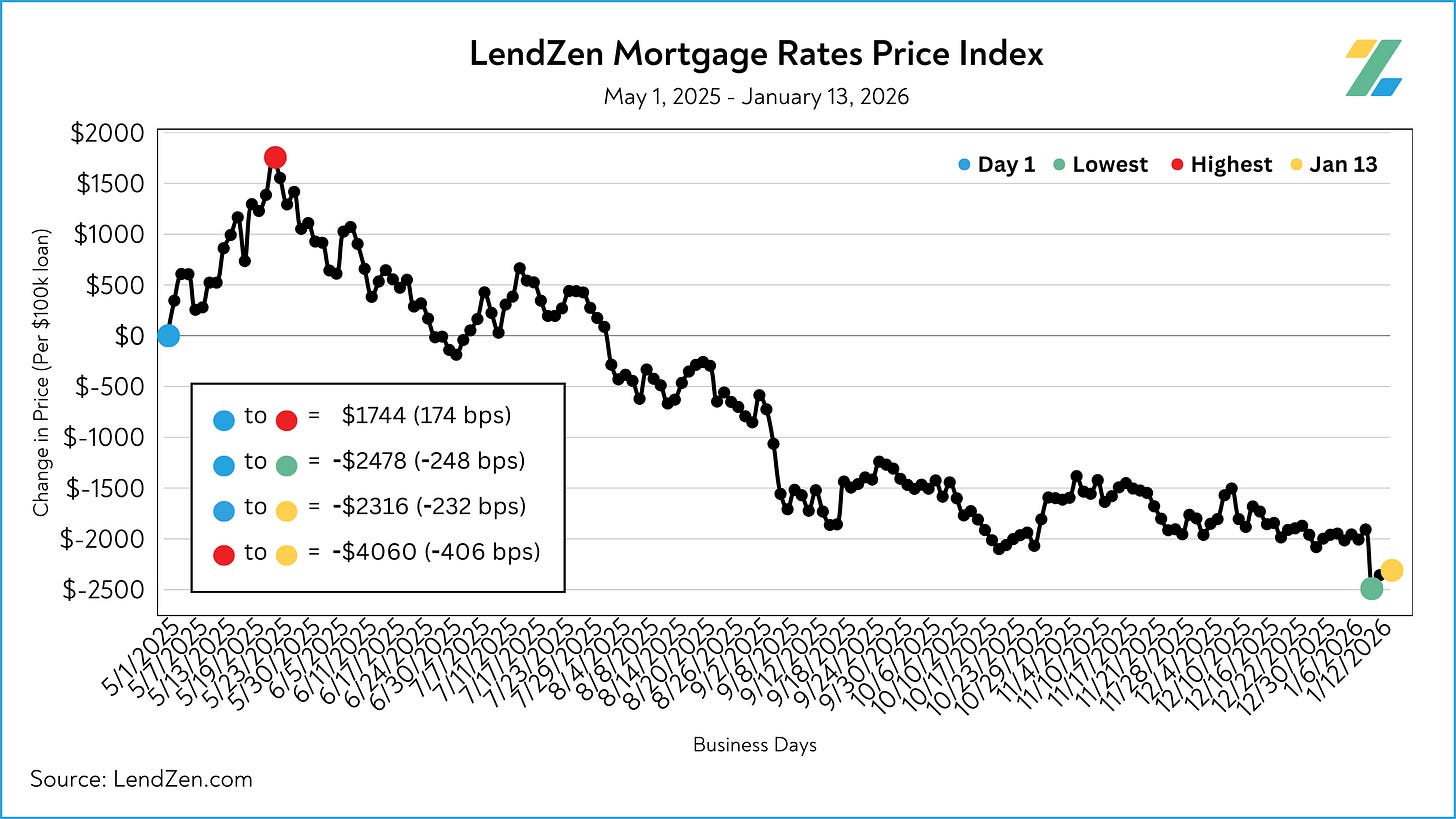 Since starting the index on May 1, 2025, mortgage rates are now 232 bps less expensive.