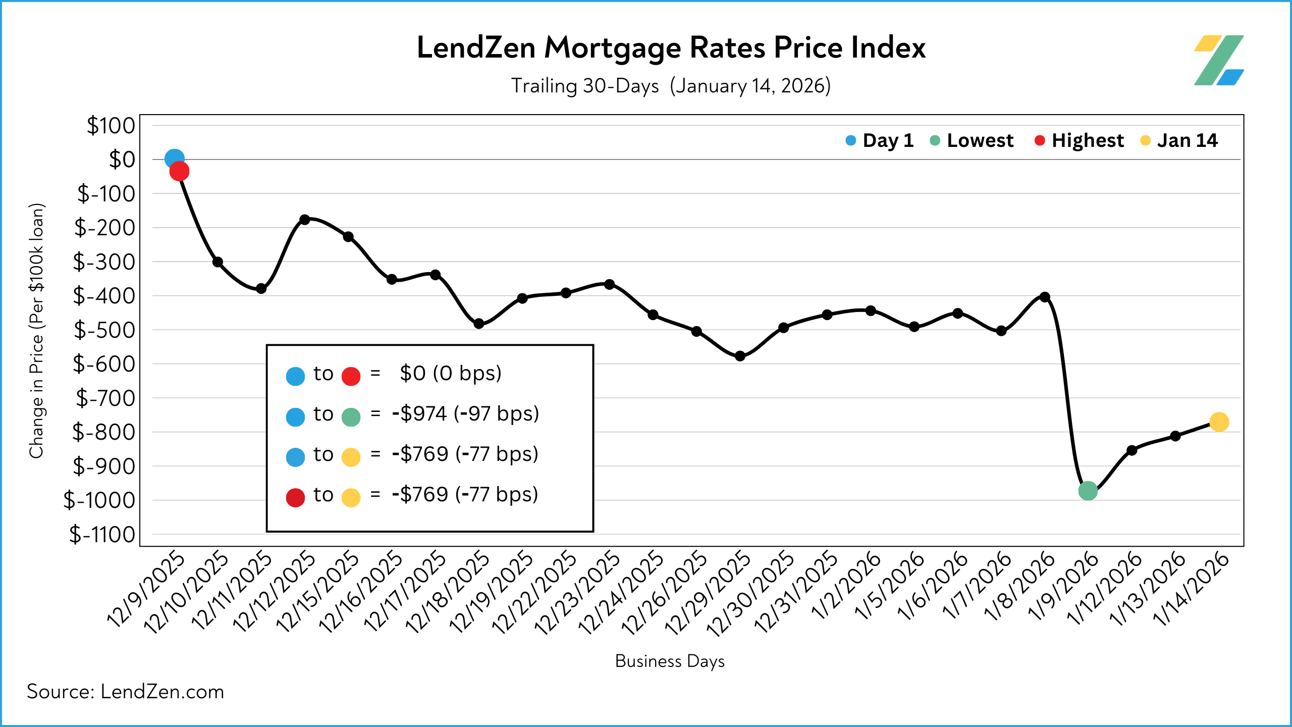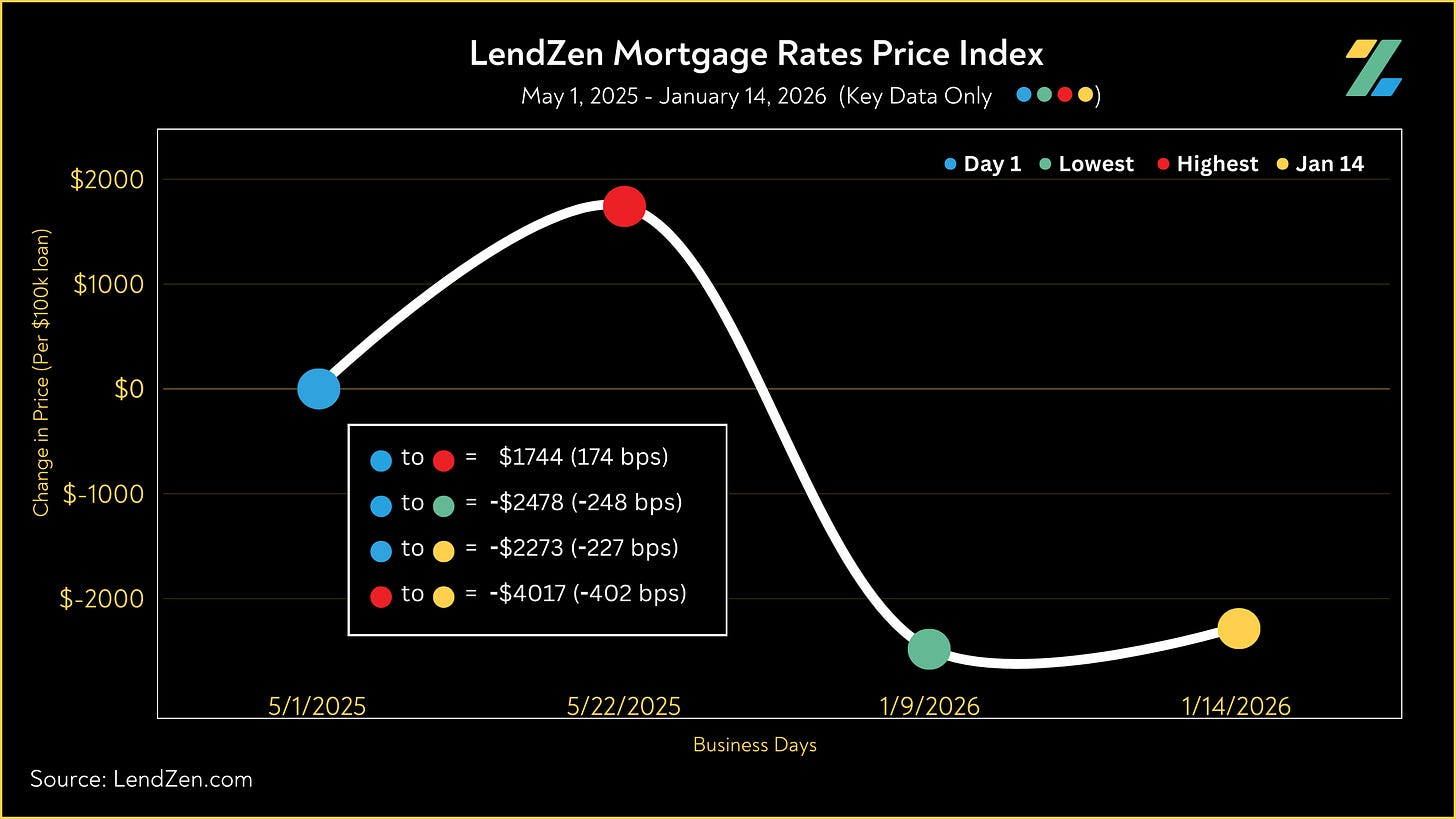 The LendZen Index tracks the price of mortgage rates across a spectrum of mortgage-backed securities.