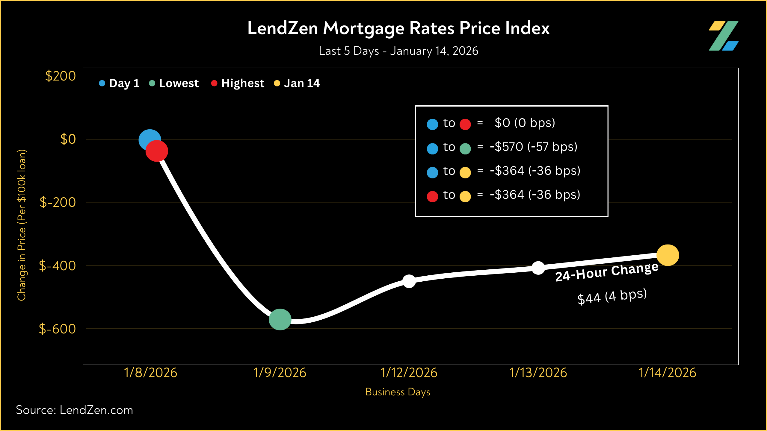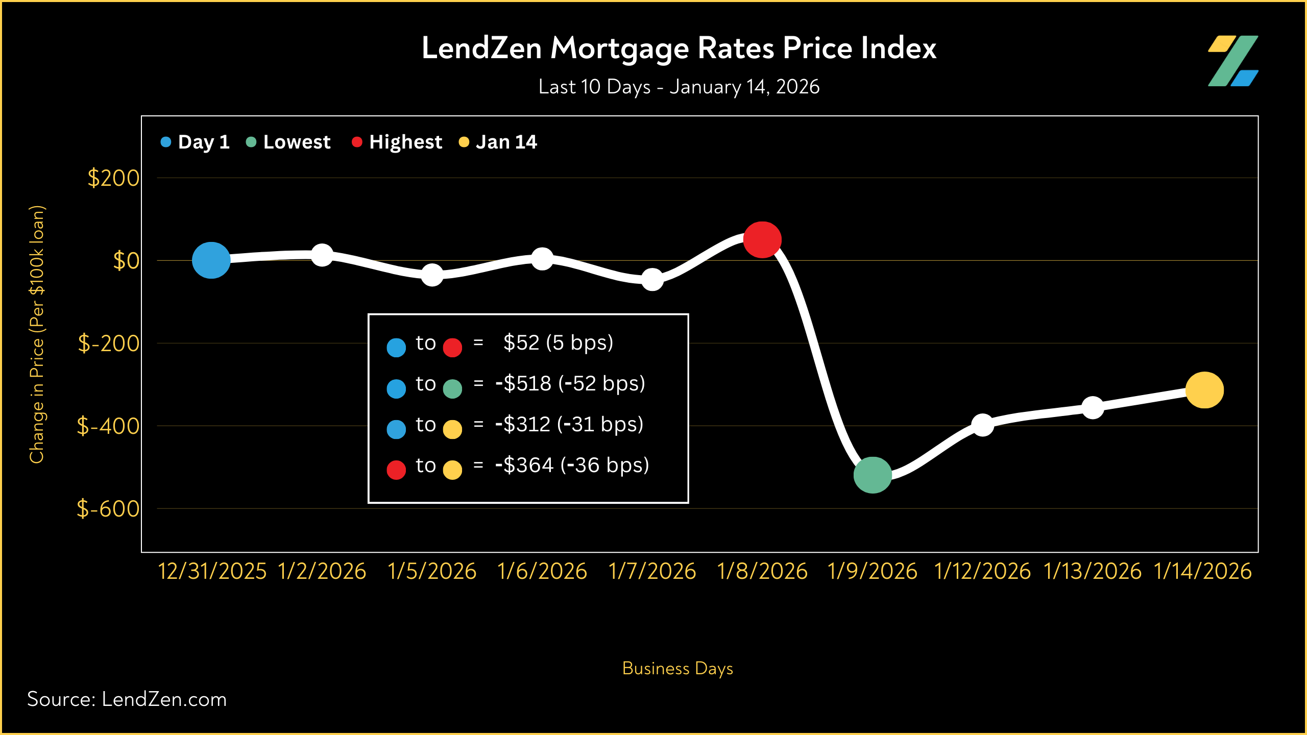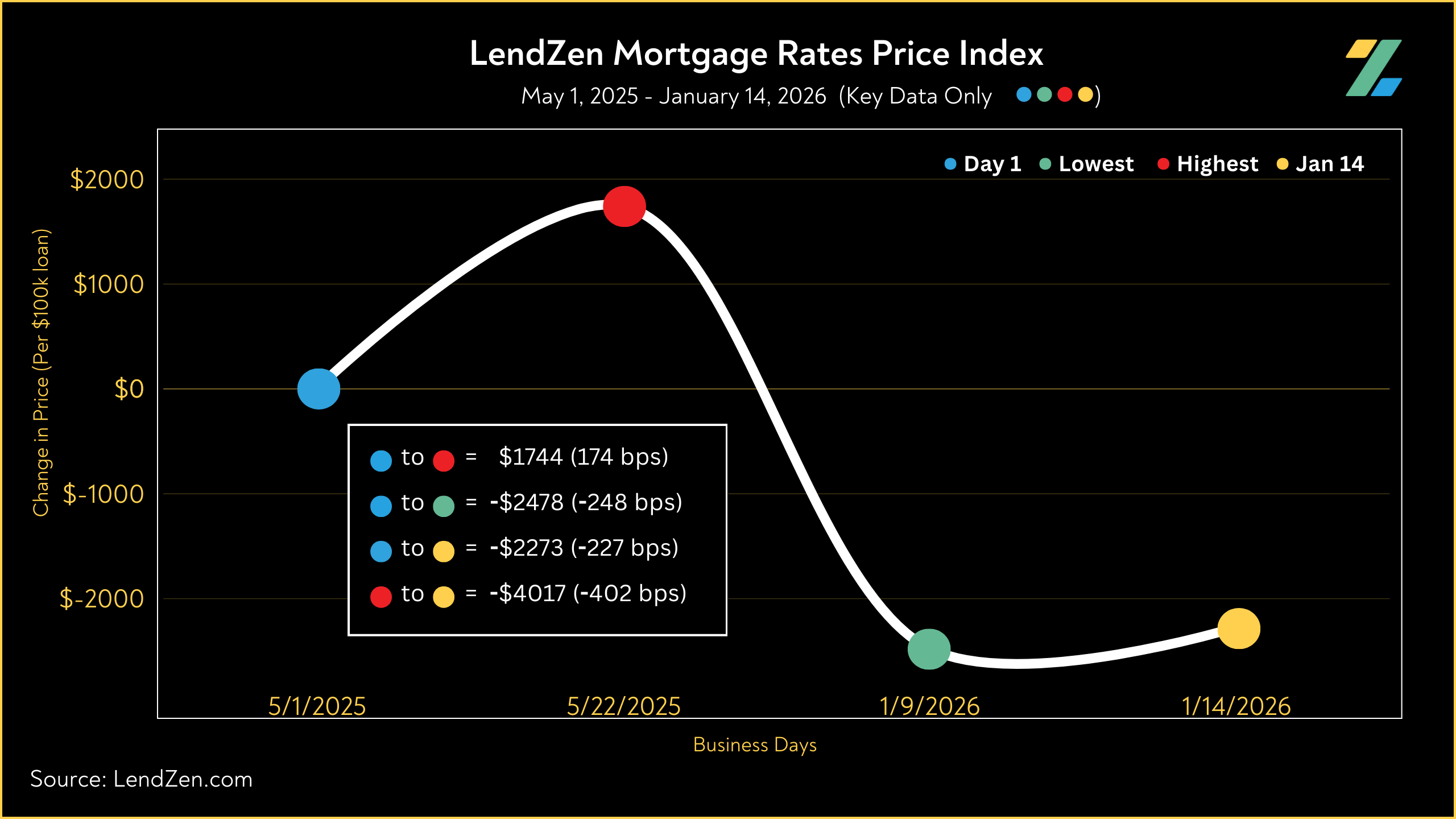 Meanwhile, the LendZen Index tracks the price of each mortgage rate across a spectrum of publicly traded MBS.