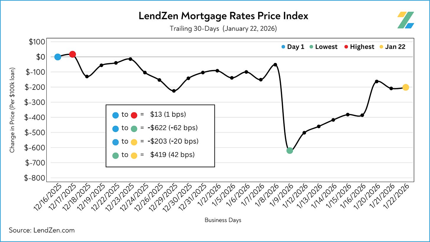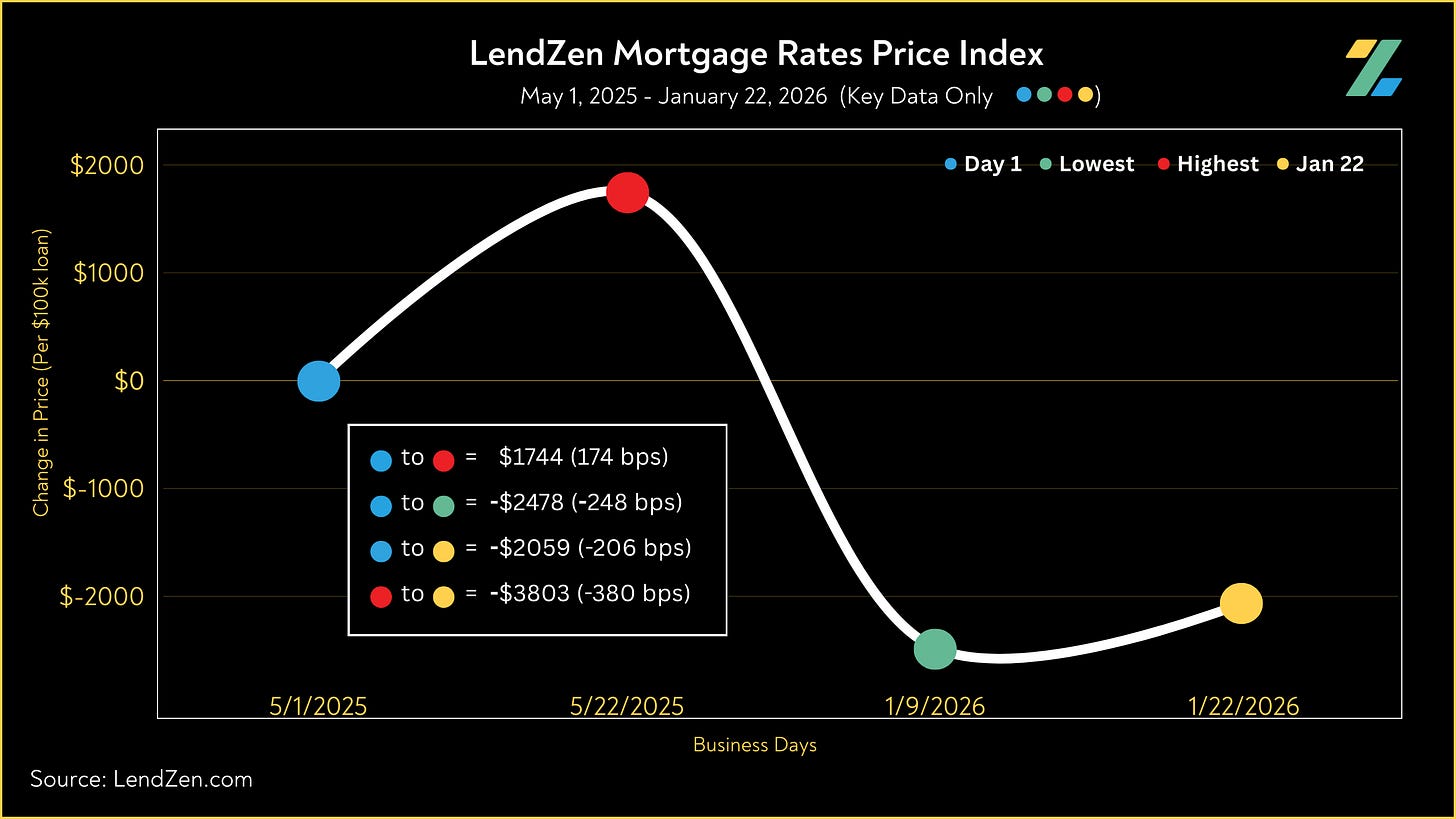 The LendZen Index tracks the price of mortgage rates across a spectrum of mortgage-backed securities.