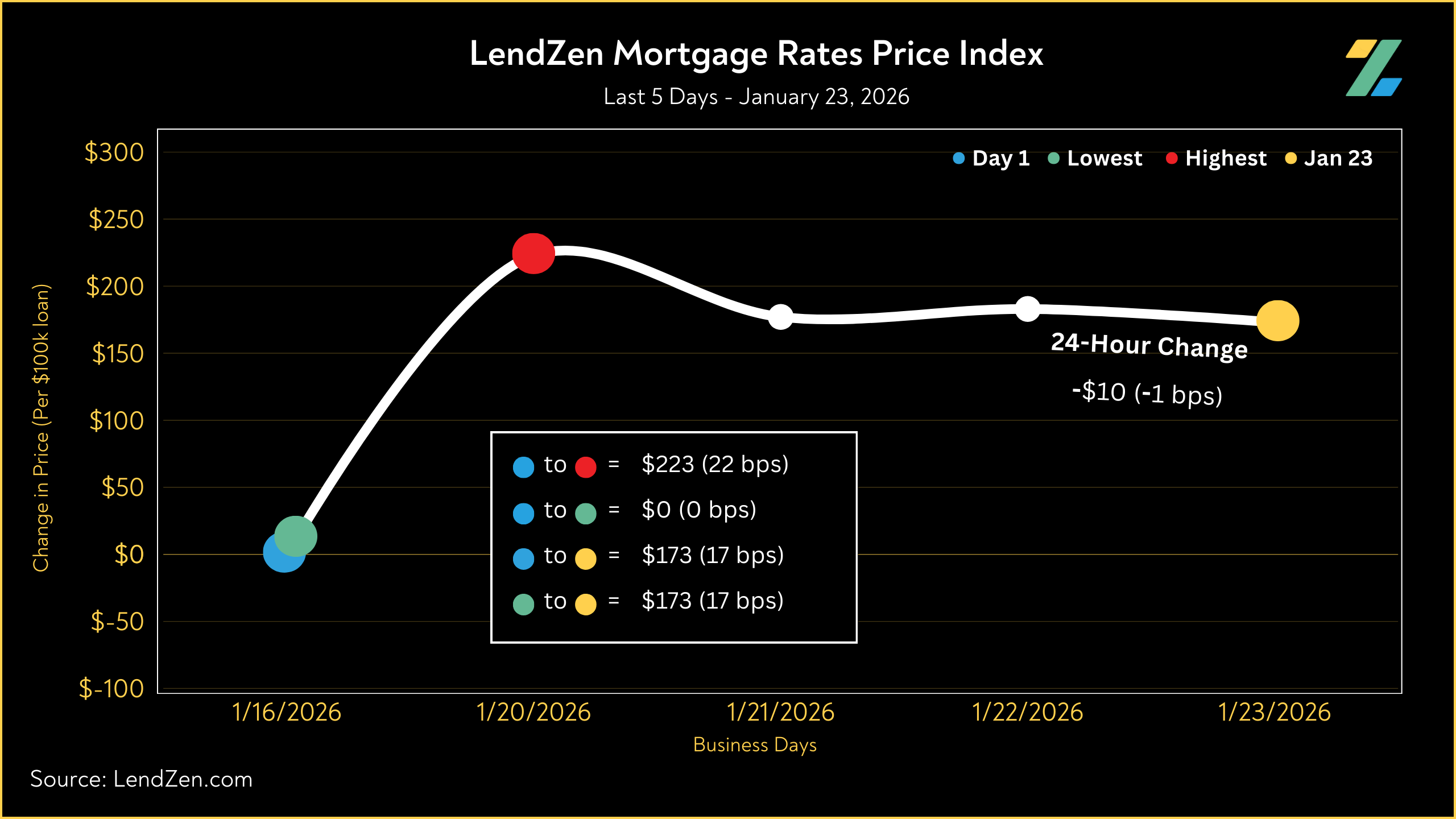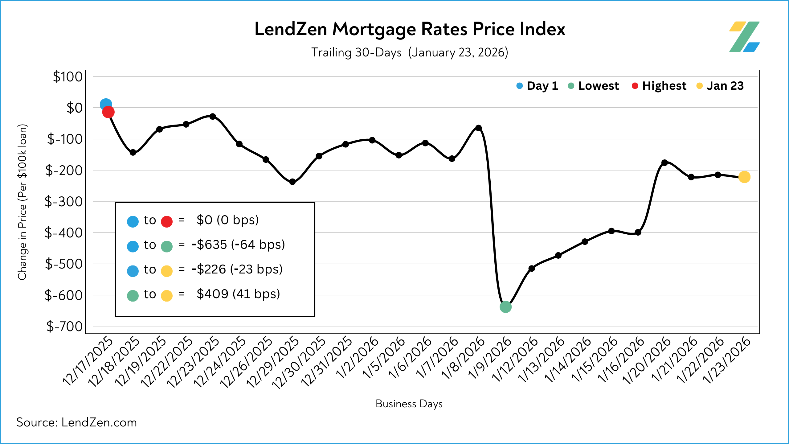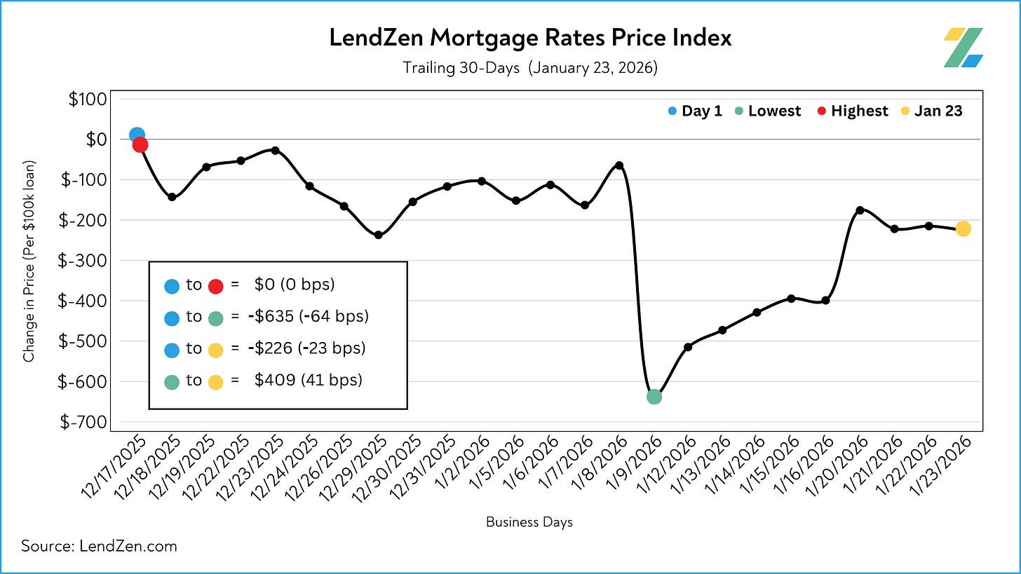 The LendZen Index tracks the price of mortgage rates across a spectrum of mortgage-backed securities.