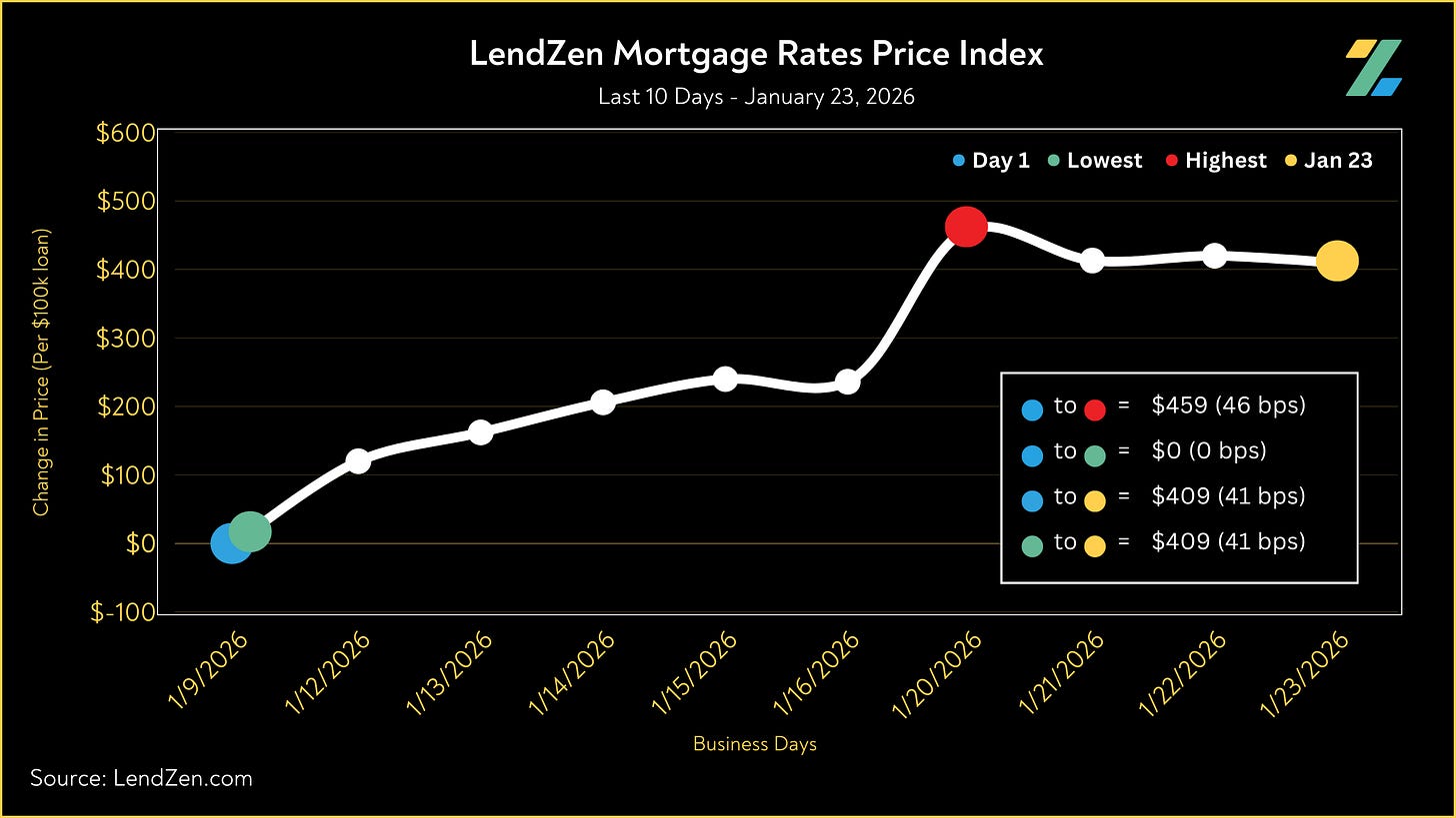 Since first January 9, the price of mortgage rates increased 41 basis points, as seen in the 10-Day chart below.