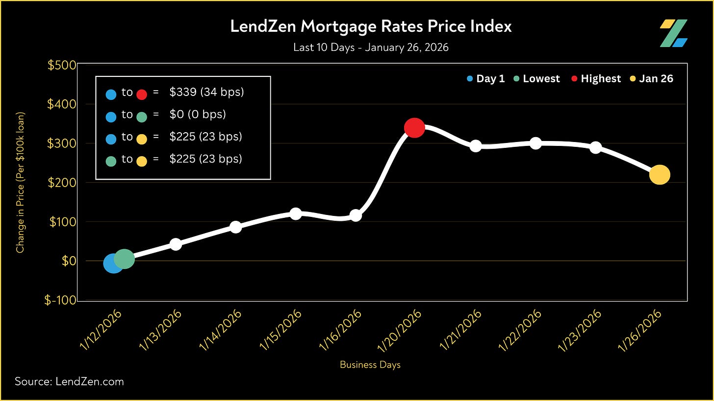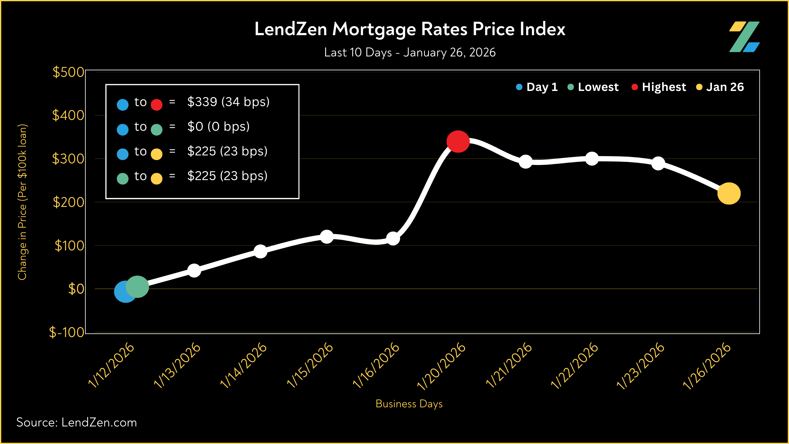 Since January 12, the price of mortgage rates increased 22 basis points, as seen in the 10-Day chart below.